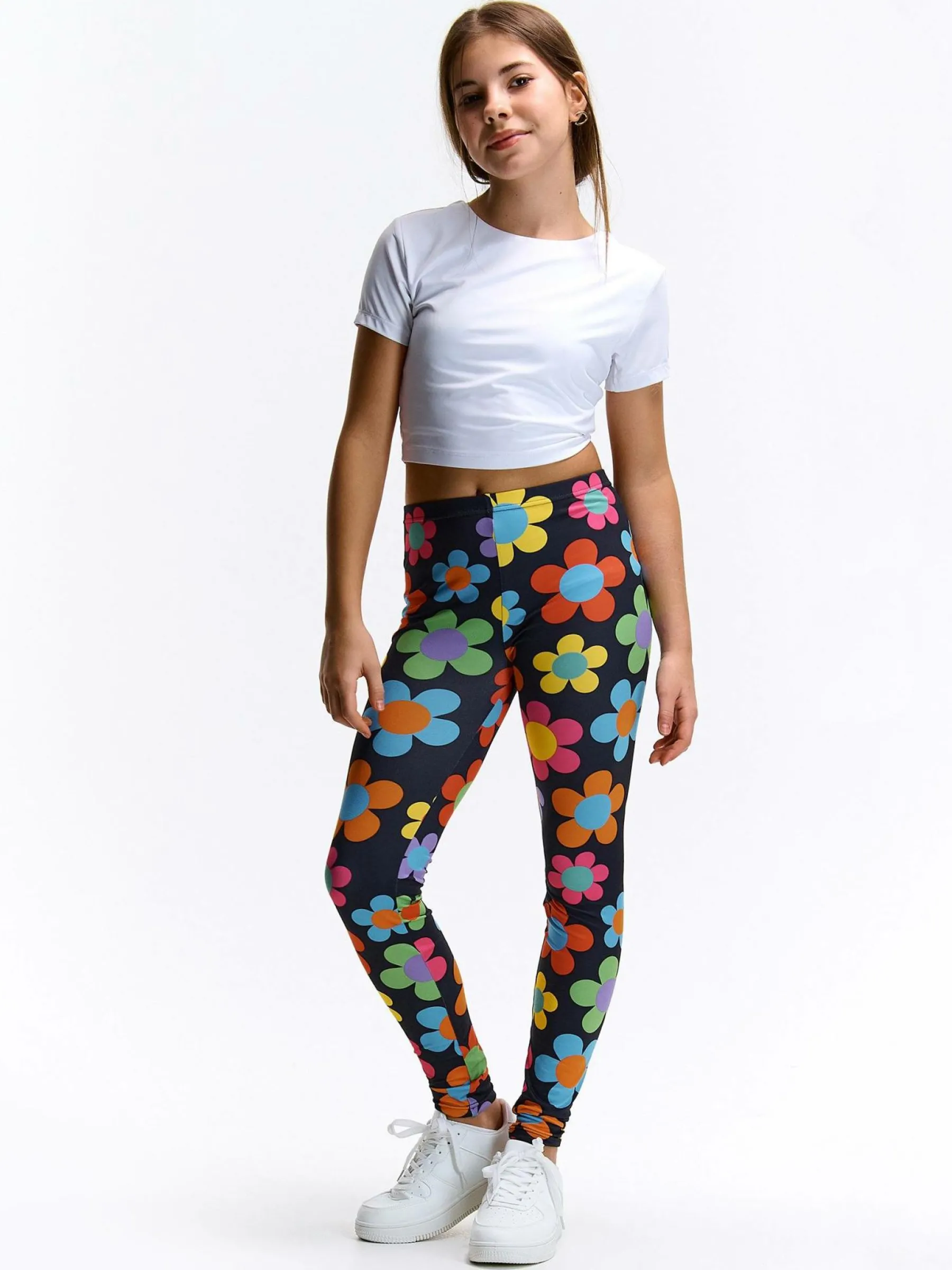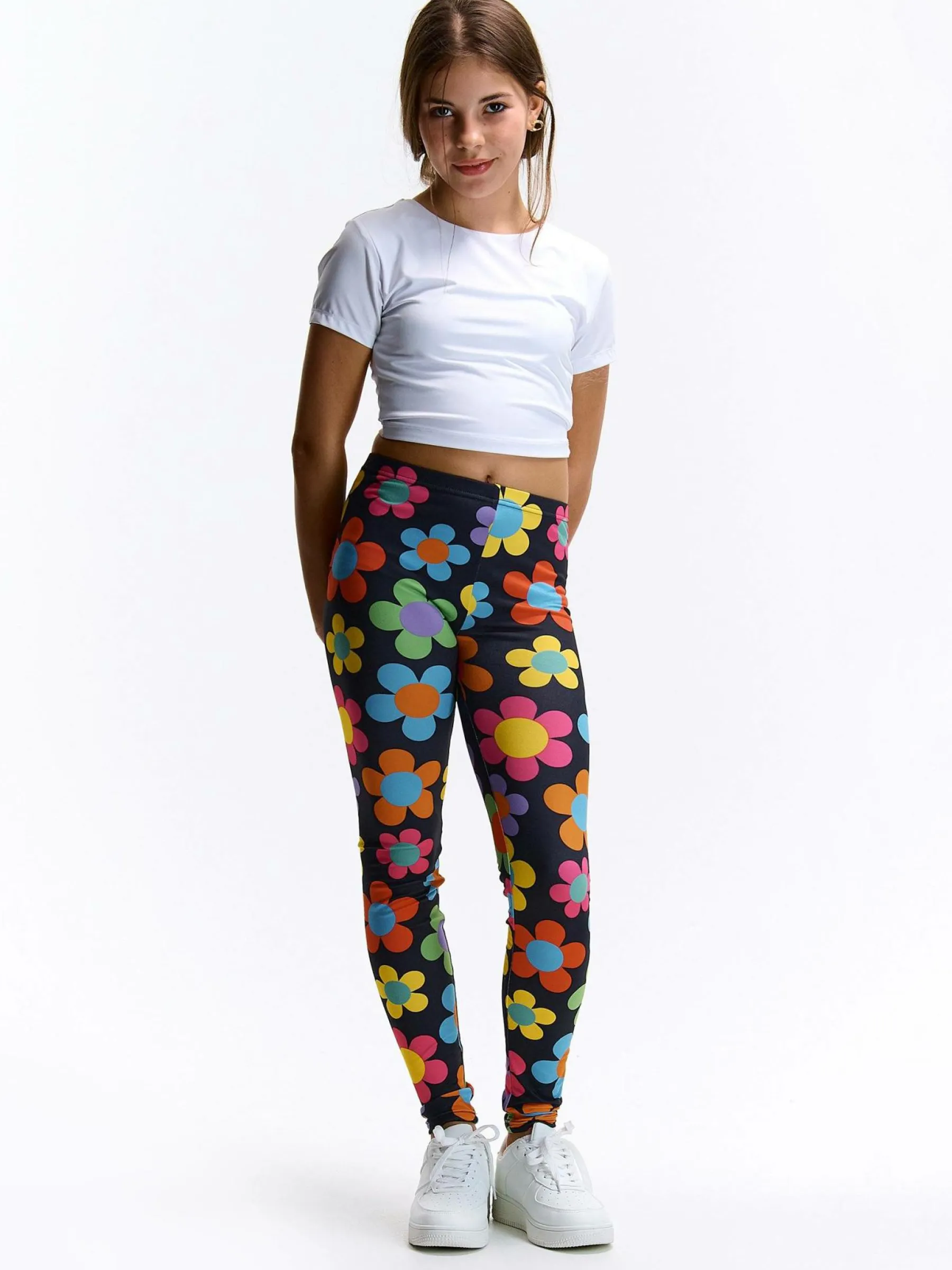 Kolor: czarnyKrój: slimTyp: legginsyDługość: dlugiePattern style: z nadrukiem, kwiatoweDetal: z elastyczną opaskąM…