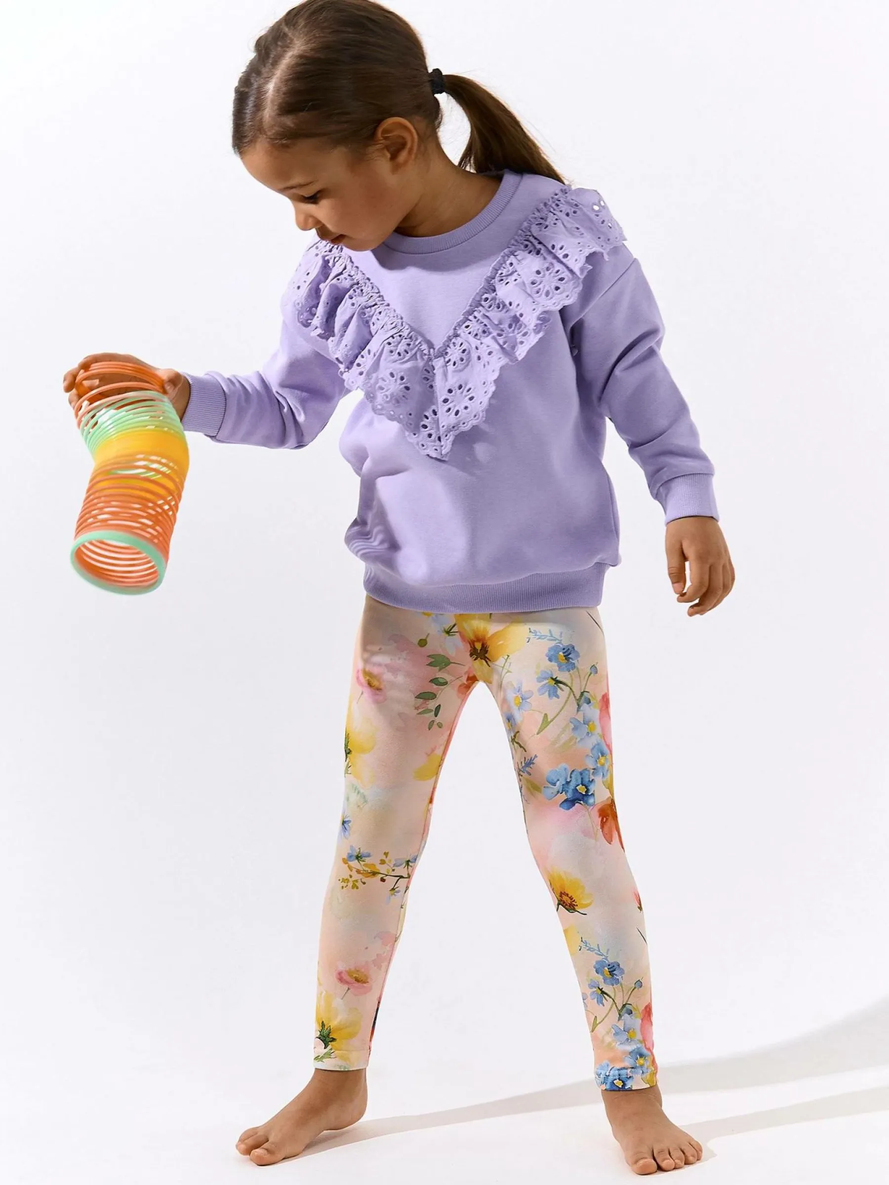 Kolor: białyKrój: slimTyp: legginsyDługość: dlugiePattern style: kwiatoweDetal: z elastyczną opaskąMateriał: syn…