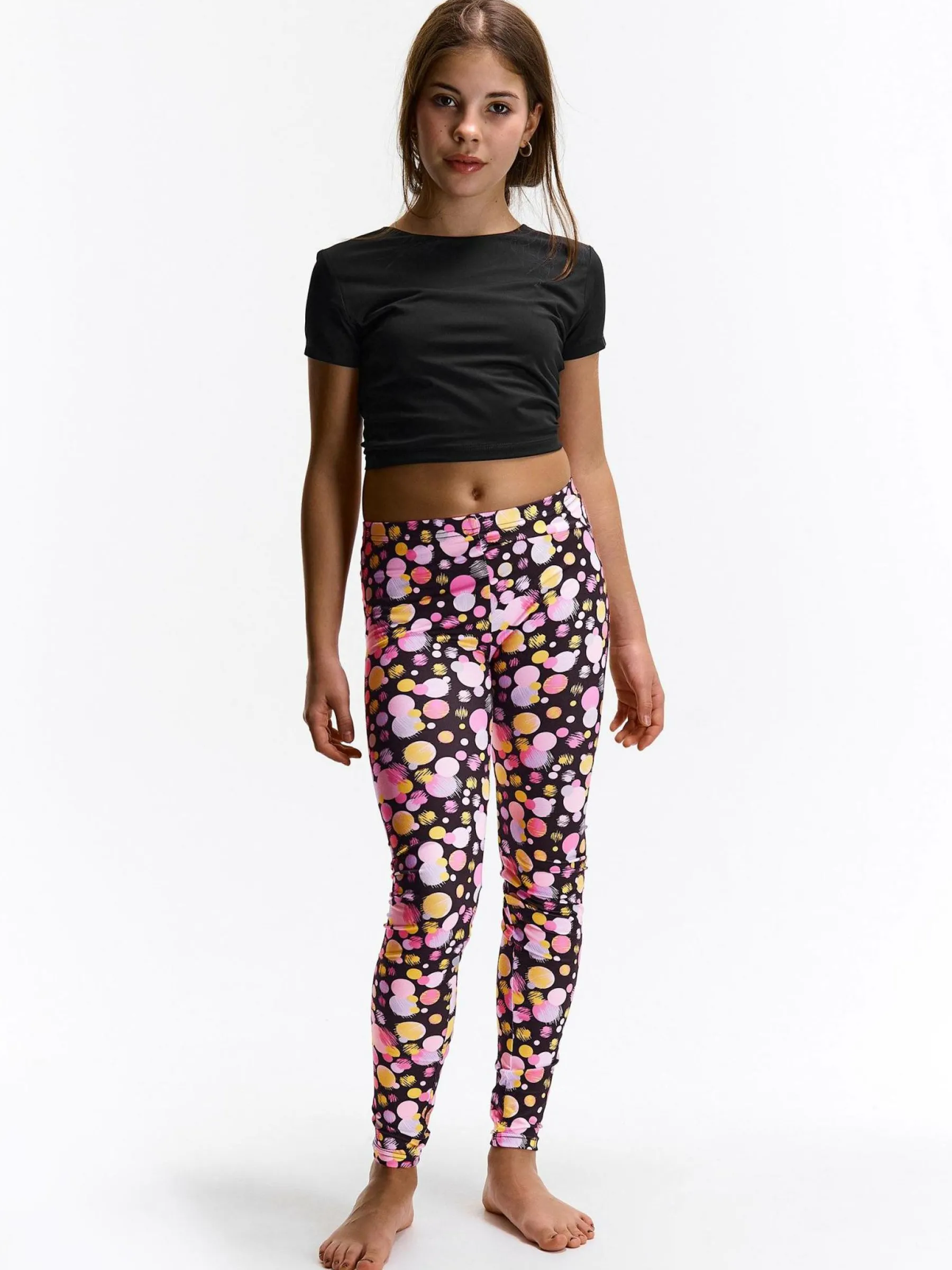 Kolor: czarnyKrój: slimTyp: legginsyDługość: dlugiePattern style: z nadrukiem, kwiatoweDetal: z elastyczną opaskąM…