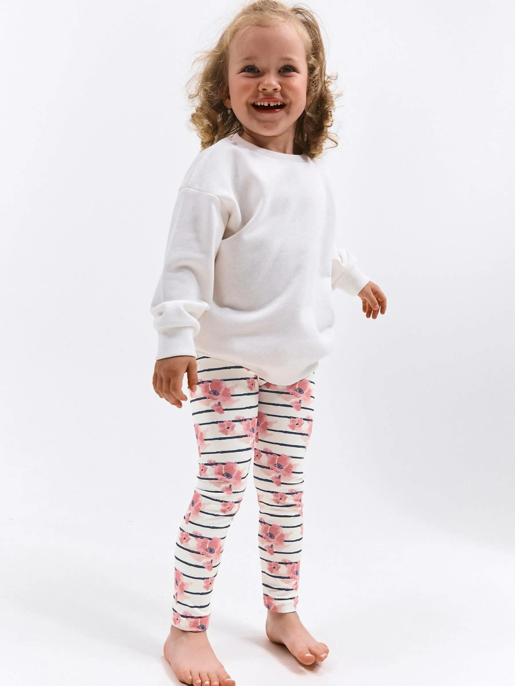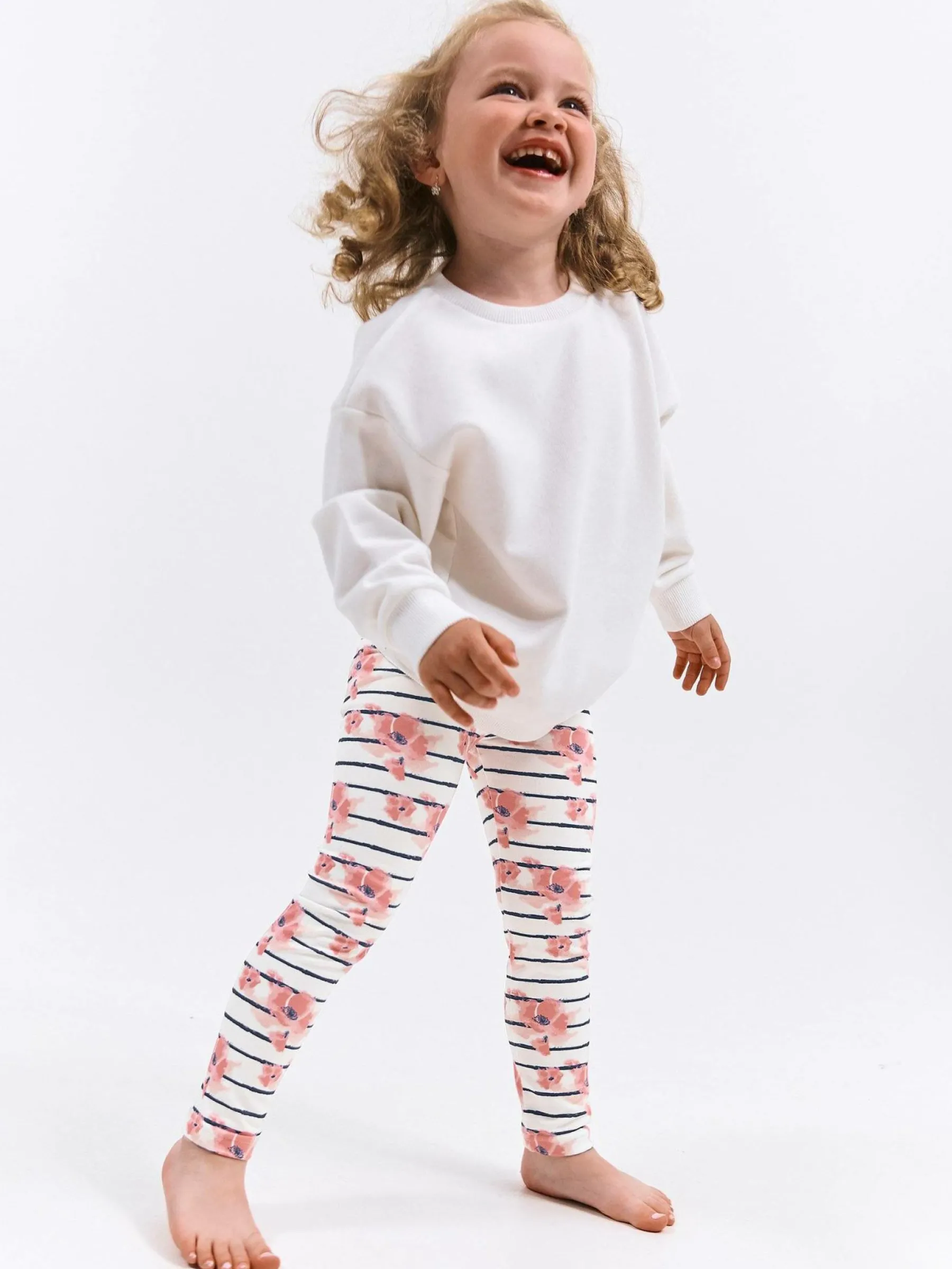 Kolor: białyKrój: slimTyp: legginsyDługość: dlugiePattern style: kwiatowe, w prążkiDetal: z elastyczną opaskąMa…