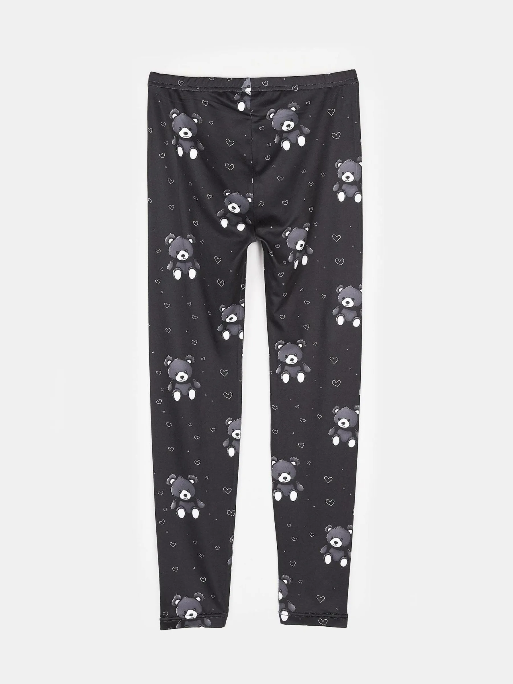 Kolor: czarnyKrój: slimTyp: legginsyDługość: dlugiePattern style: z nadrukiemDetal: z elastyczną opaskąMateriał: …