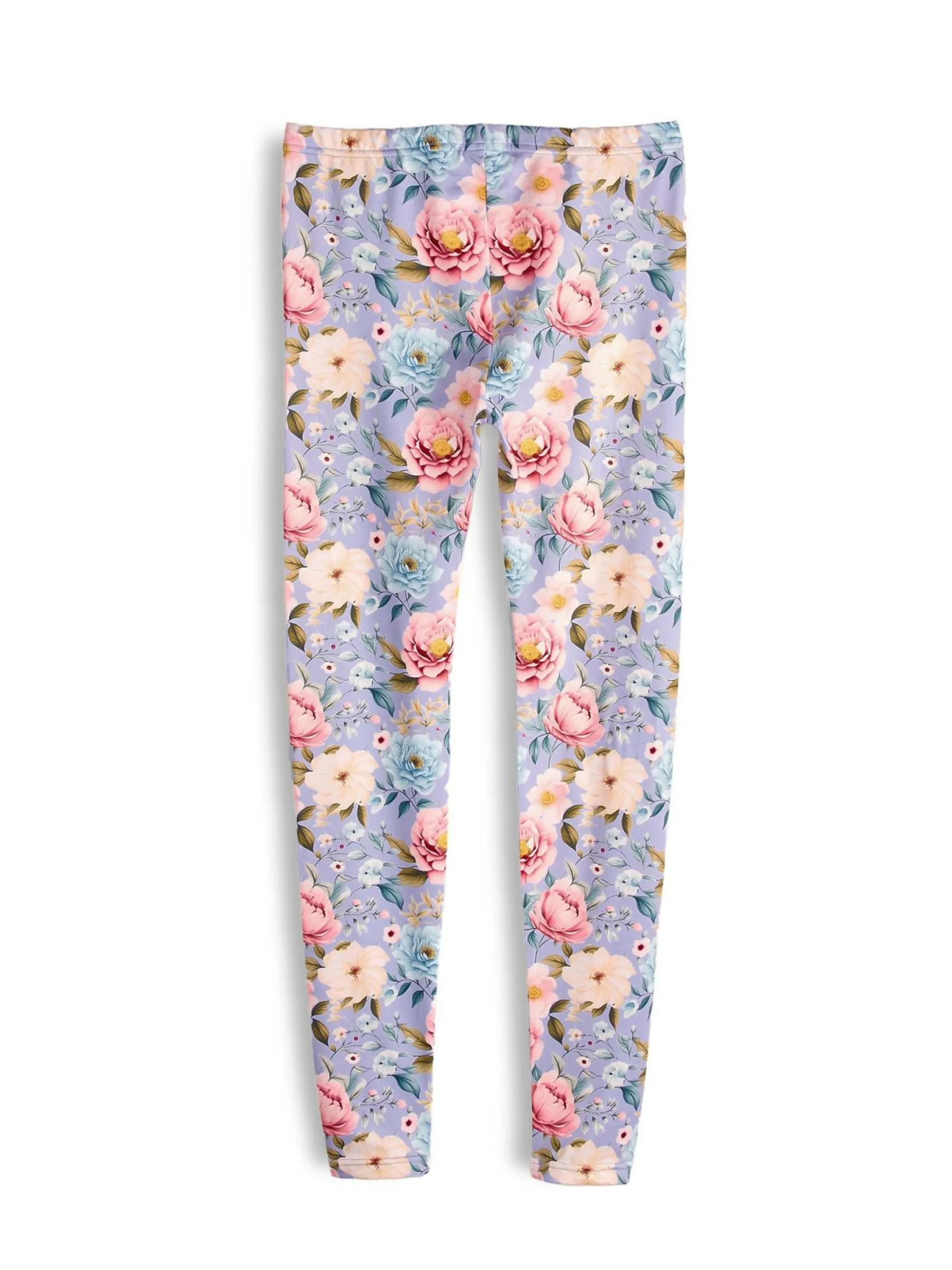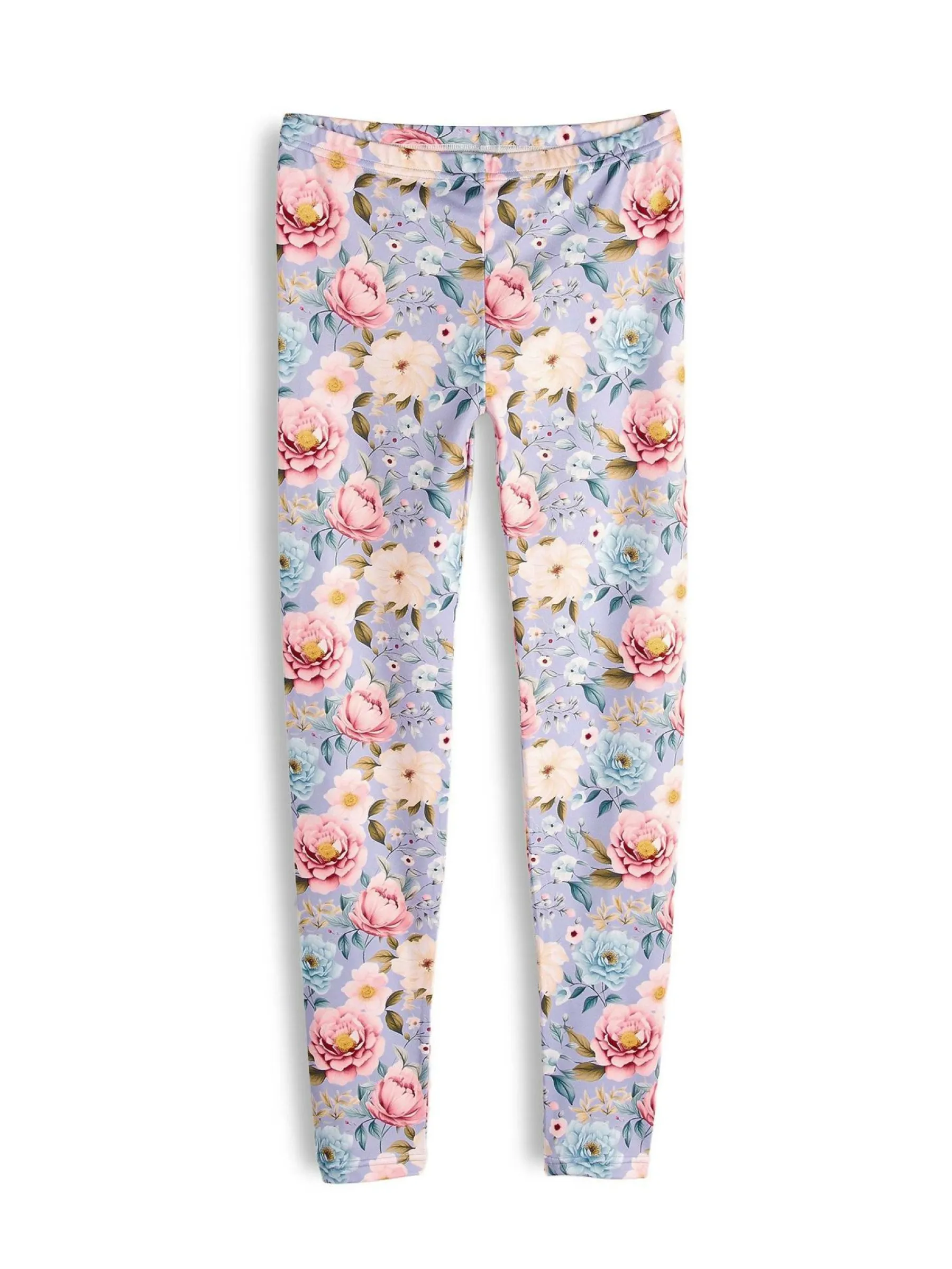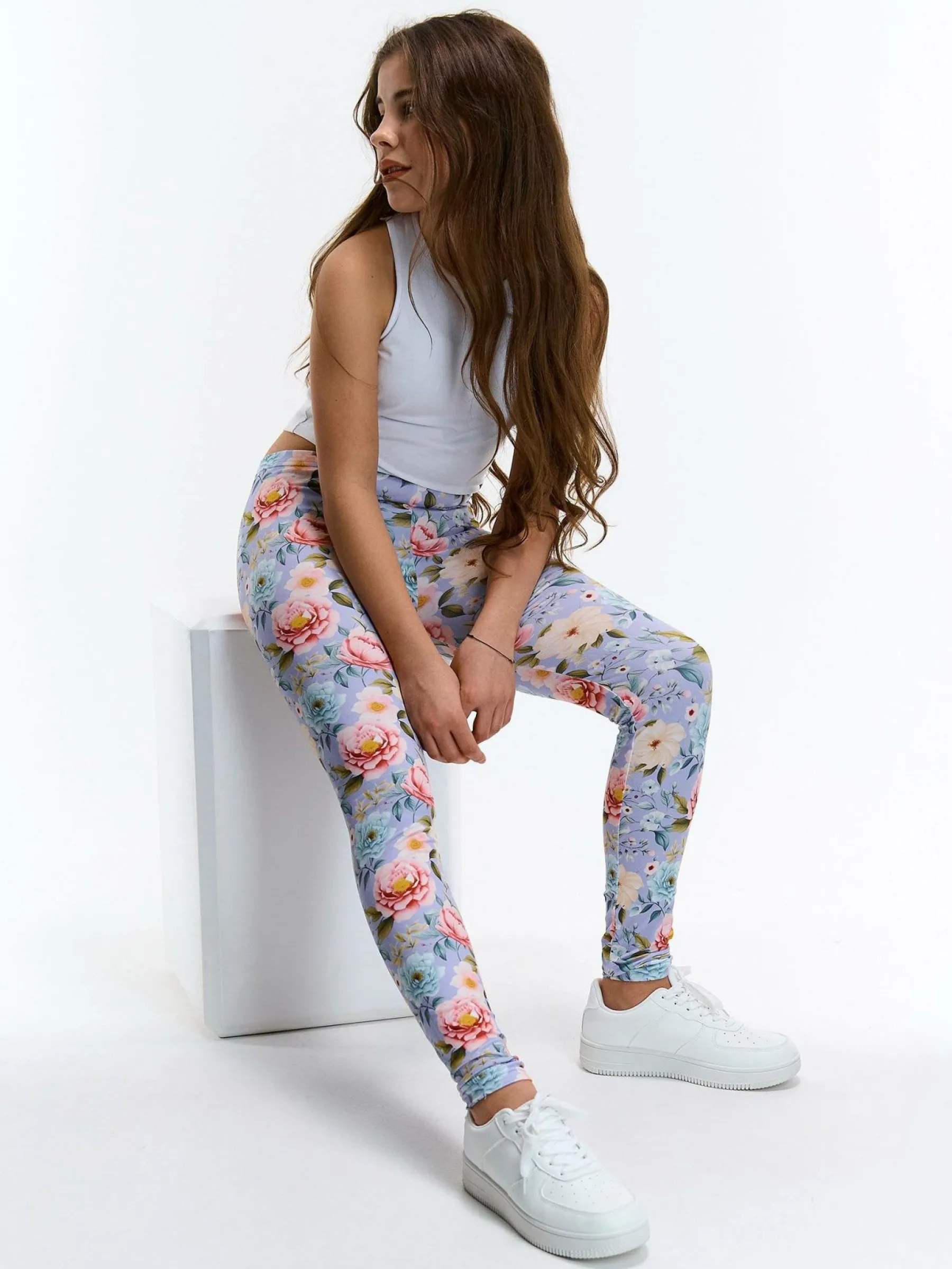 Kolor: purpurowyKrój: slimTyp: legginsyDługość: dlugiePattern style: z nadrukiem, kwiatoweDetal: z elastyczną opask…