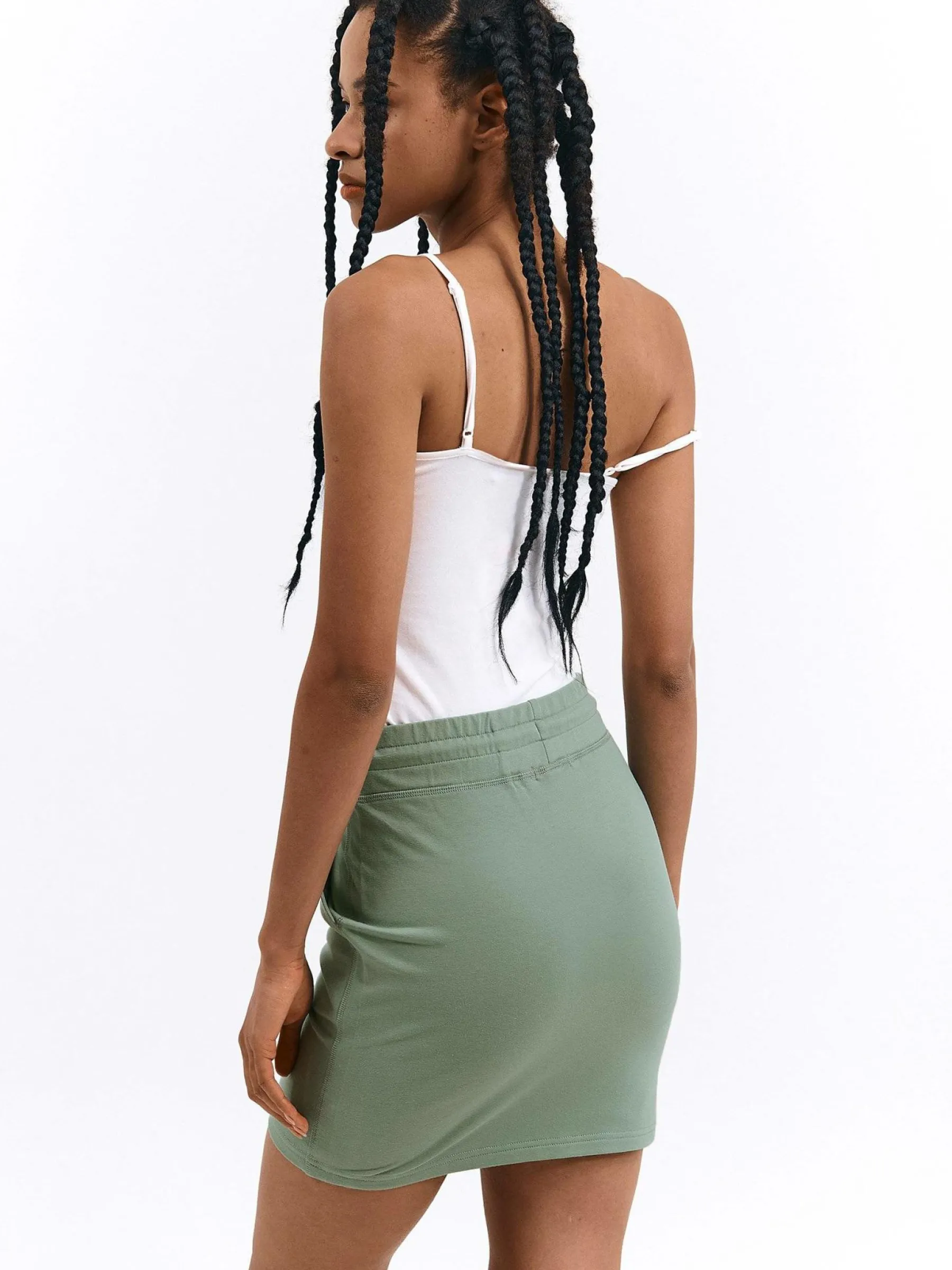 Kolor: zielonyKrój: podstawowyTyp: spódnicaDługość: miniPattern style: pojedynczy kolorDetal: ze sznurowaniem, z ki…