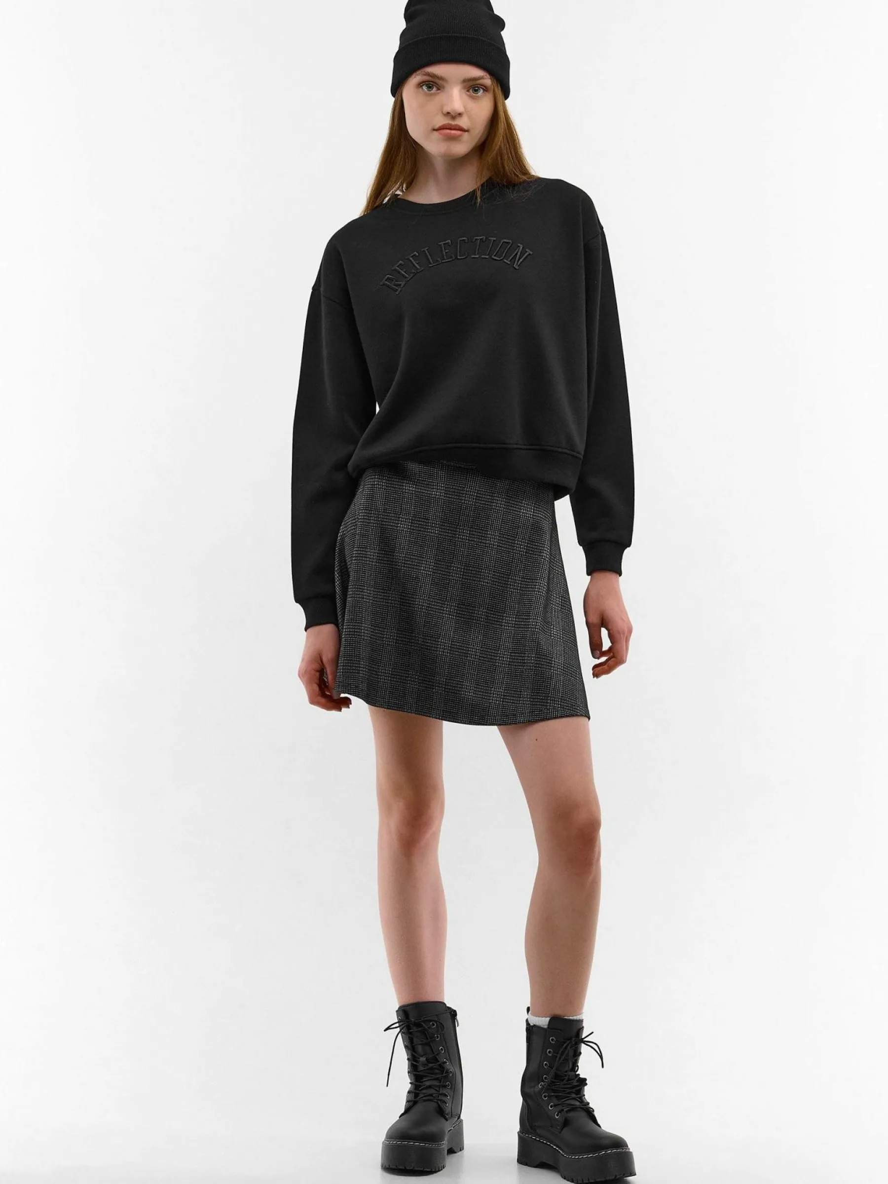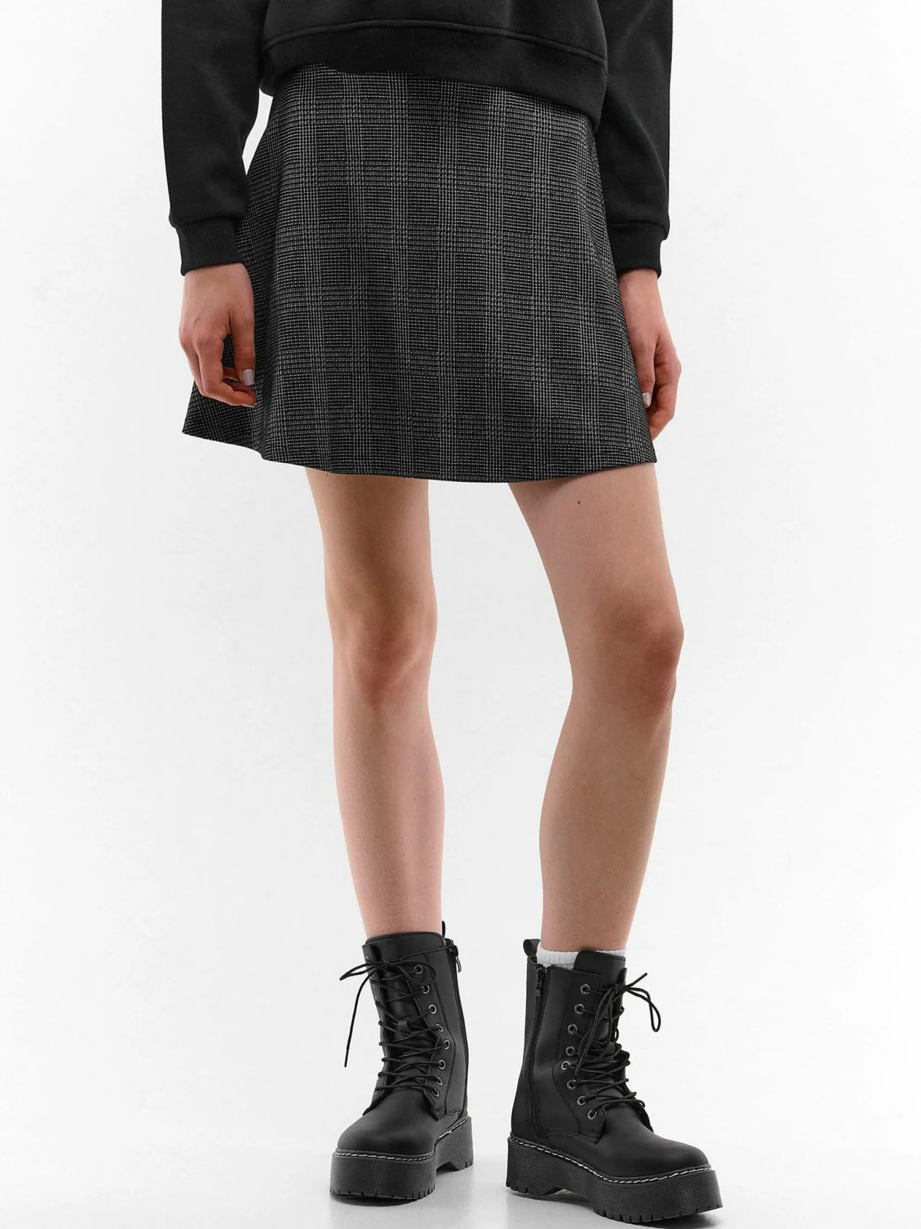 Kolor: czarnyKrój: asyTyp: spódnicaDługość: miniPattern style: w krateDetal: na zamekMateriał: syntetycznePłeć: …