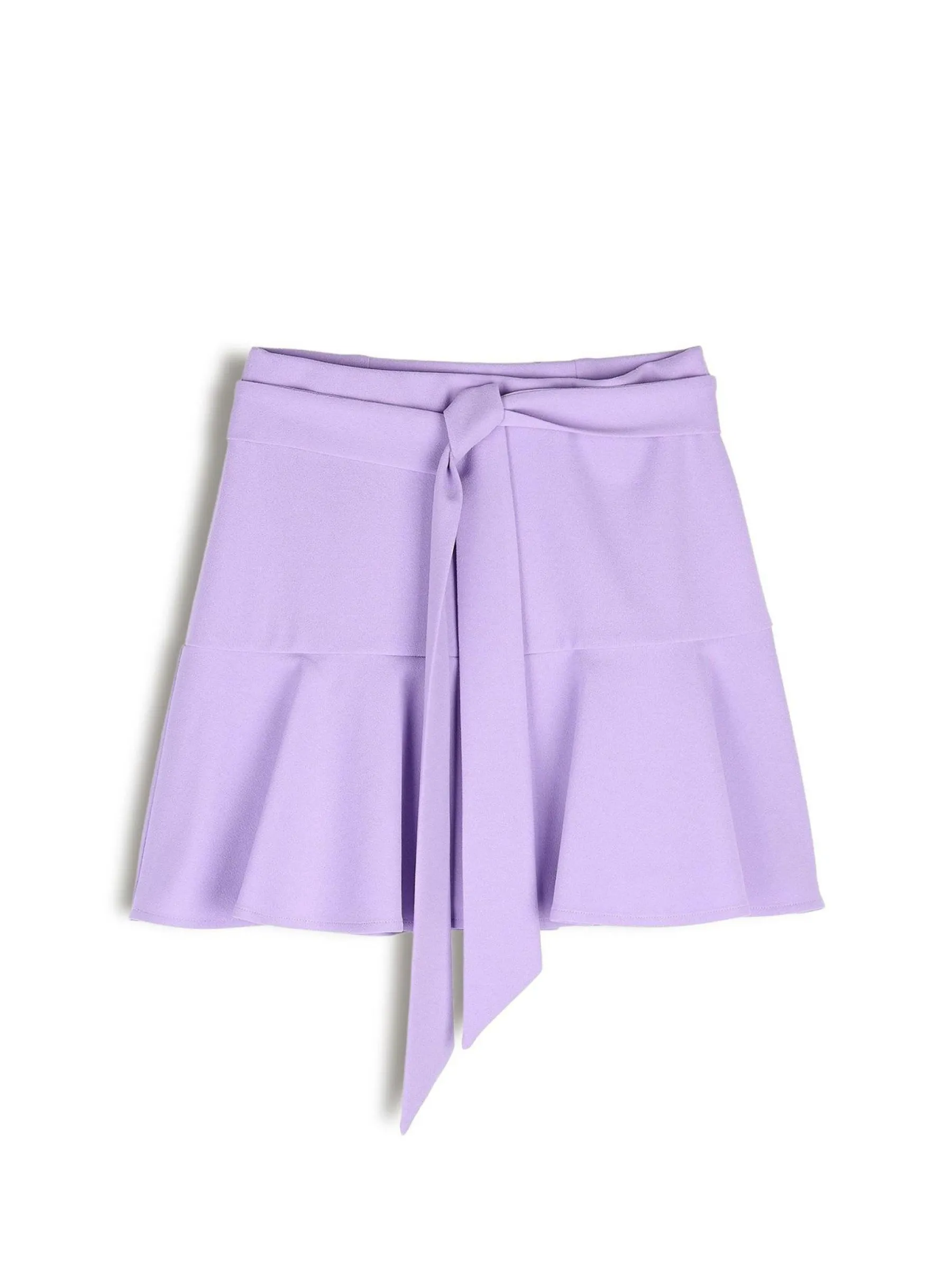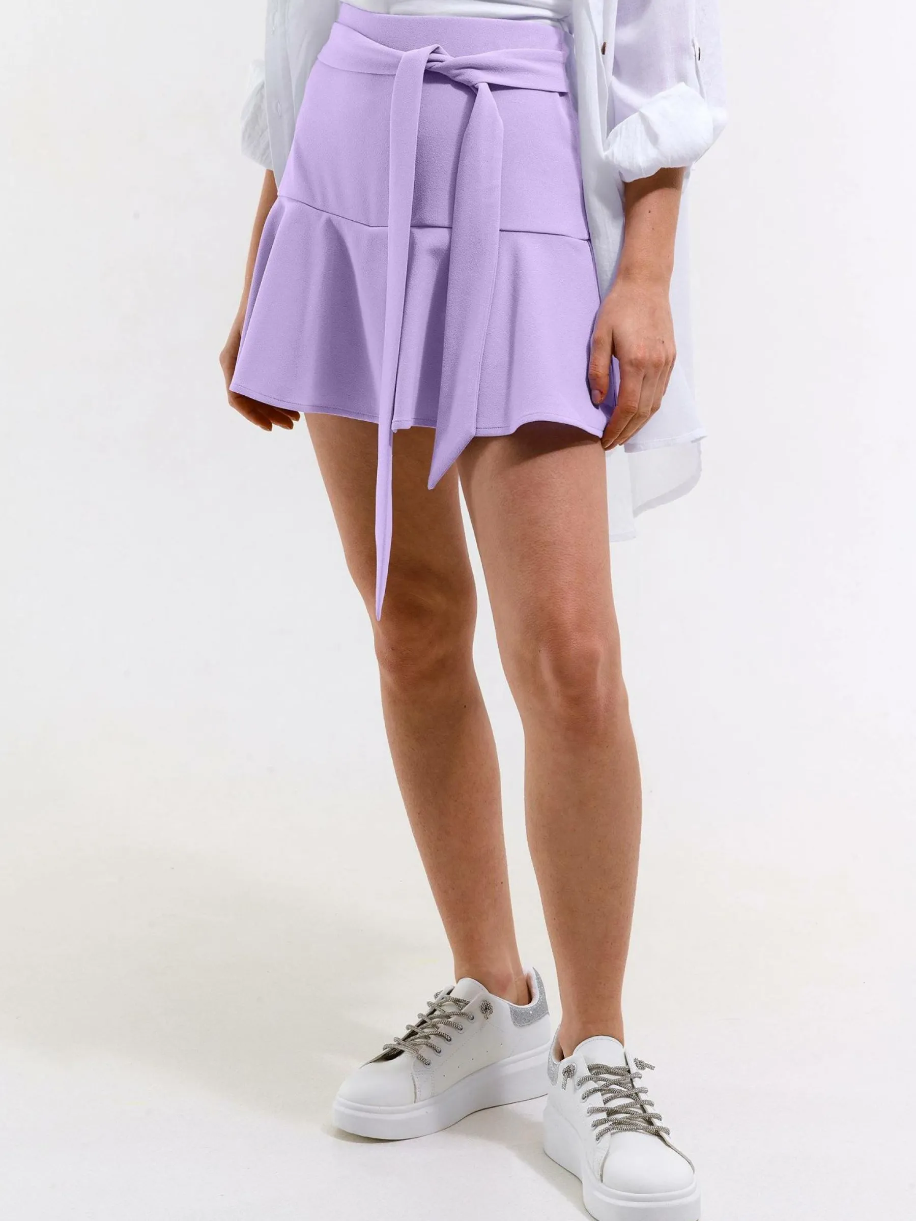 Kolor: purpurowyKrój: asyTyp: spódnicaDługość: miniPattern style: pojedynczy kolorDetal: z paskiemMateriał: syntet…