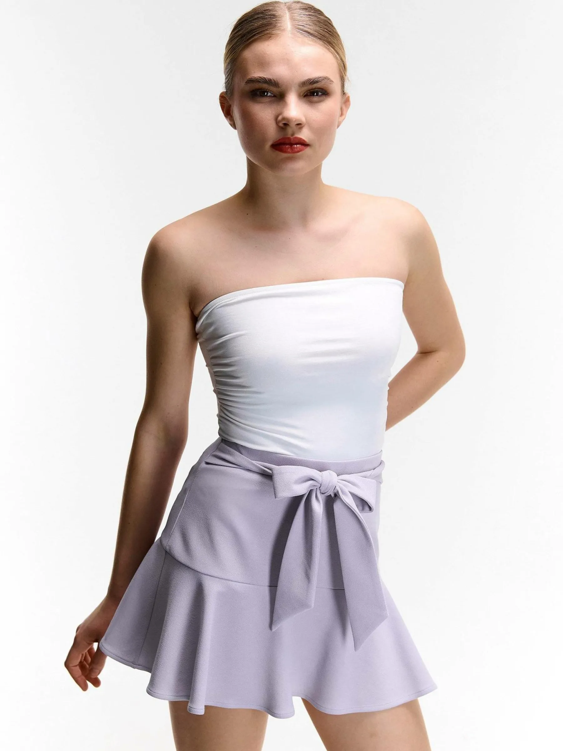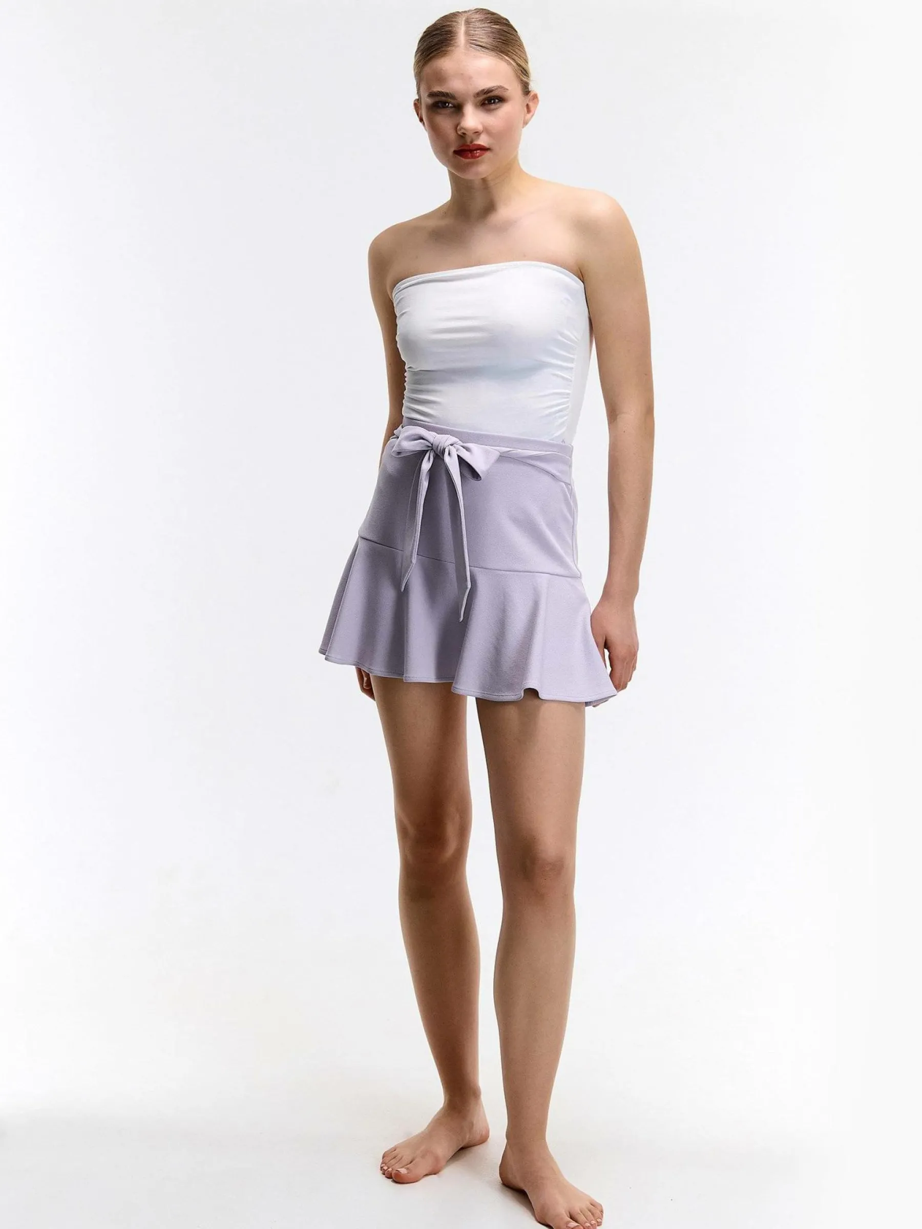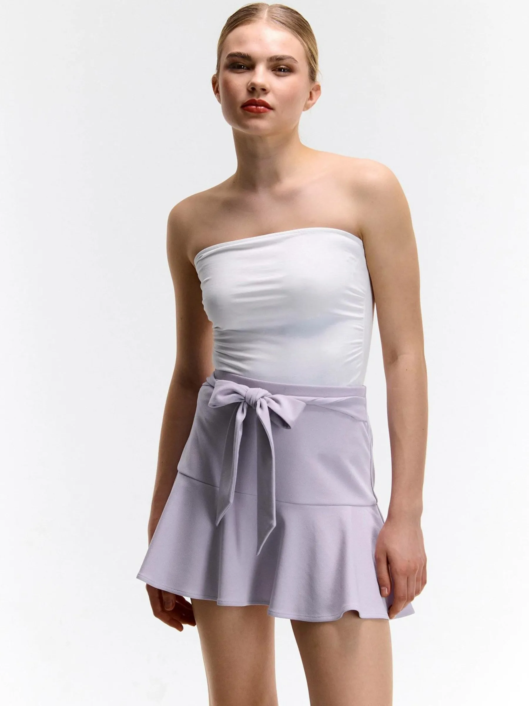 Kolor: purpurowyKrój: asyTyp: spódnicaDługość: miniPattern style: pojedynczy kolorDetal: z kokardkąMateriał: synt…