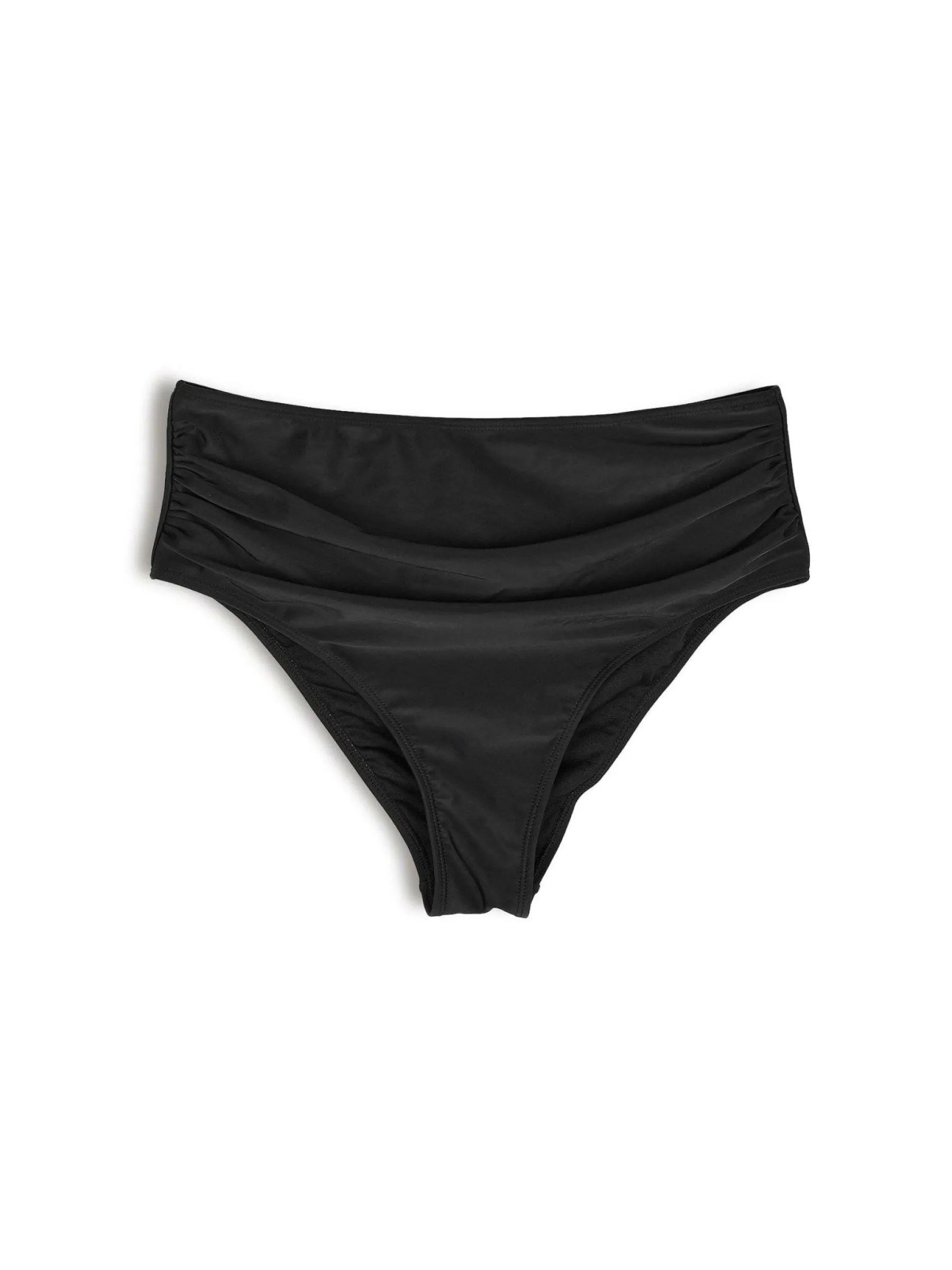 Kolor: czarnyKrój: z marszczeniem, z wysokim stanemTyp: dół bikiniPattern style: pojedynczy kolorMateriał: nylonPłe…