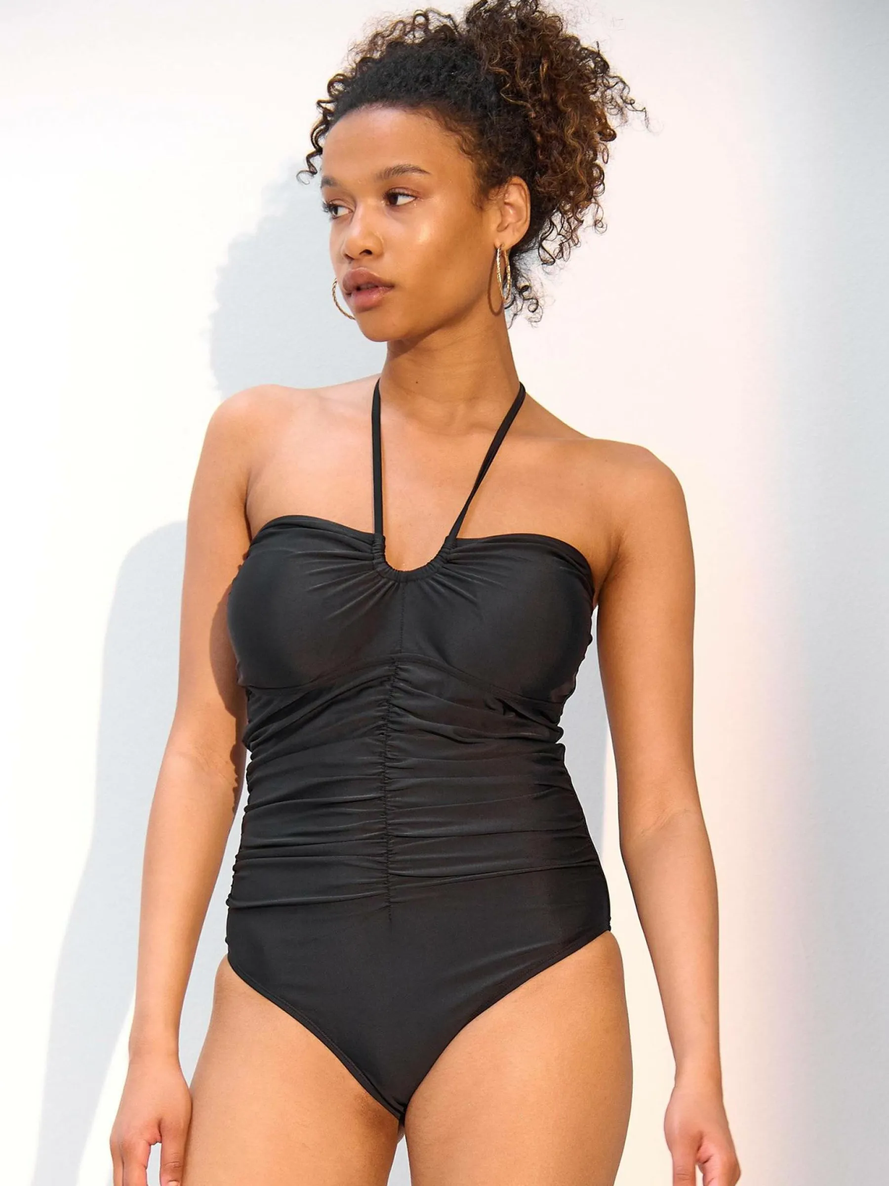 Kolor: czarnyKrój: z marszczeniemTyp: jednoczęściowy strój kąpielowyPattern style: pojedynczy kolorDetal: z wiązan…
