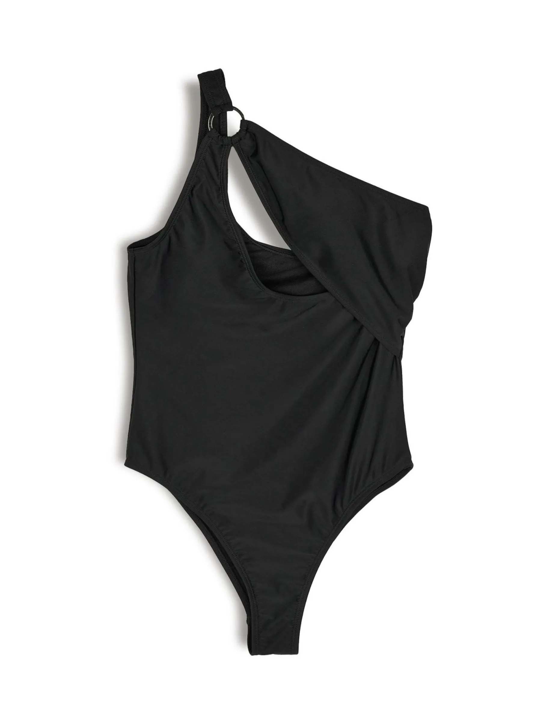 Kolor: czarnyKrój: asymetryczne, monokiniTyp: jednoczęściowy strój kąpielowyPattern style: pojedynczy kolorDetal: w…