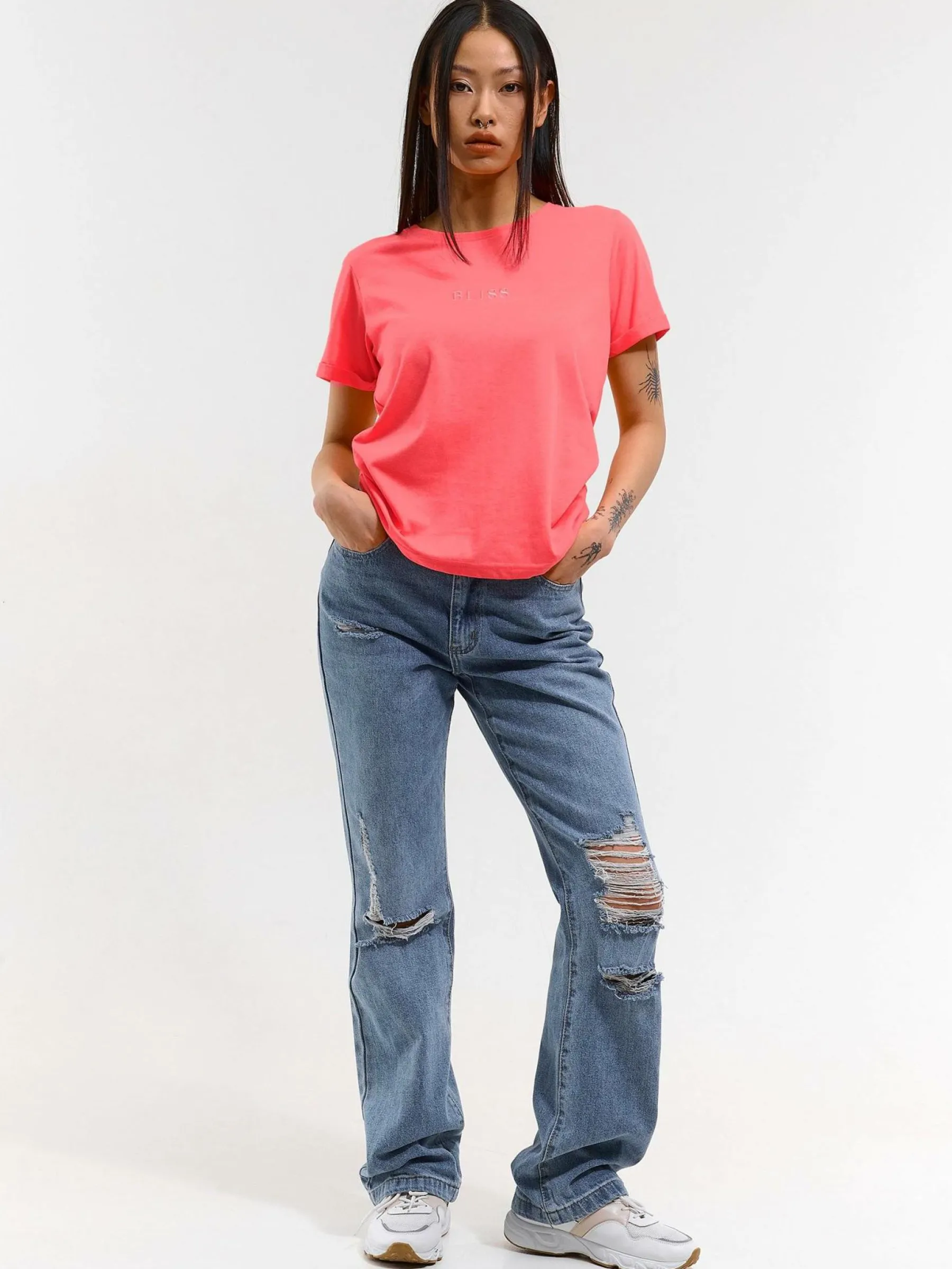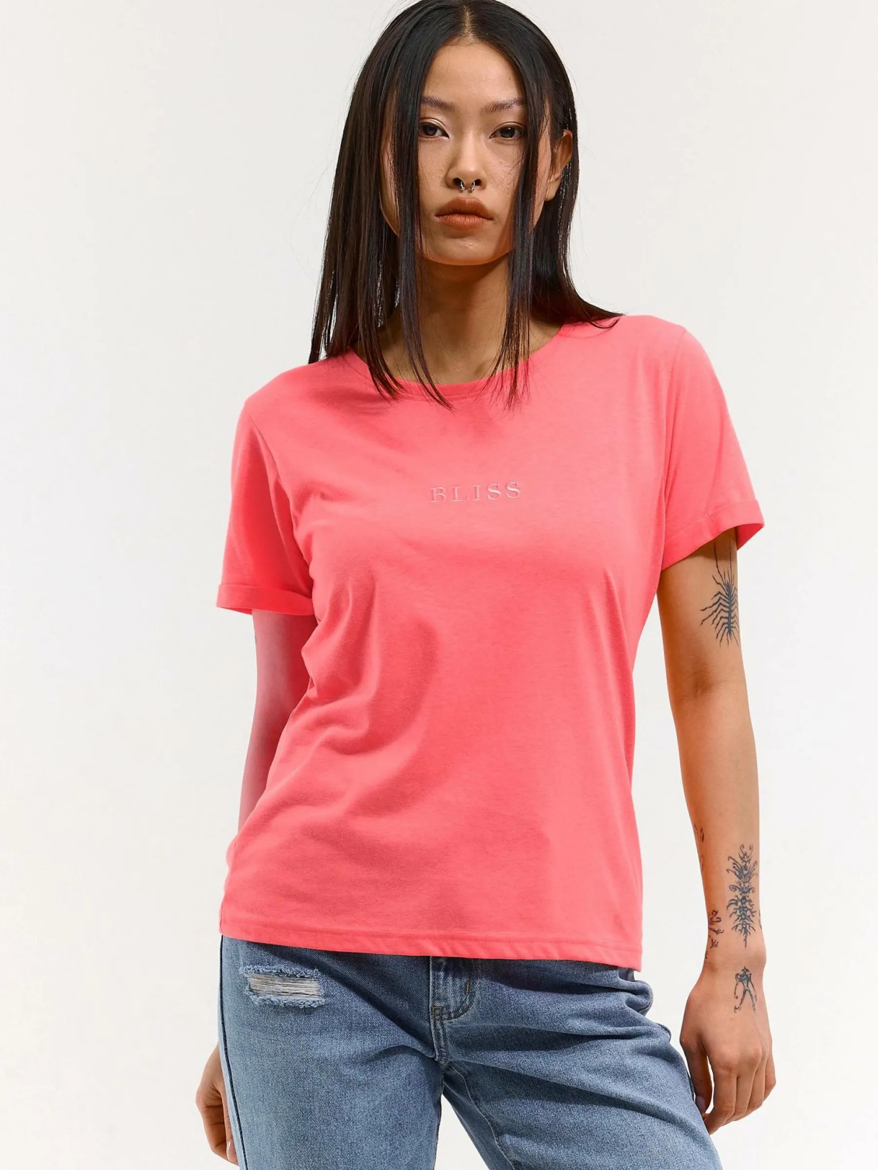 Kolor: różowyKrój: podstawowyTyp: koszulkaRekaw: krótki rękawDługość: krótkiPattern style: pojedynczy kolorDeta…