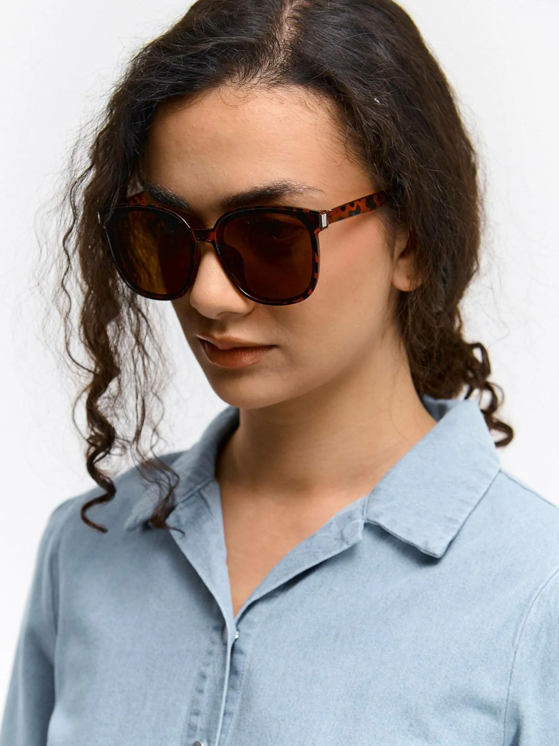 Deklaracja zgodności UEKolor: brązowyKrój: cat eyeTyp: okulary przeciwsłonecznePattern style: zwierzecyMateriał: pl…