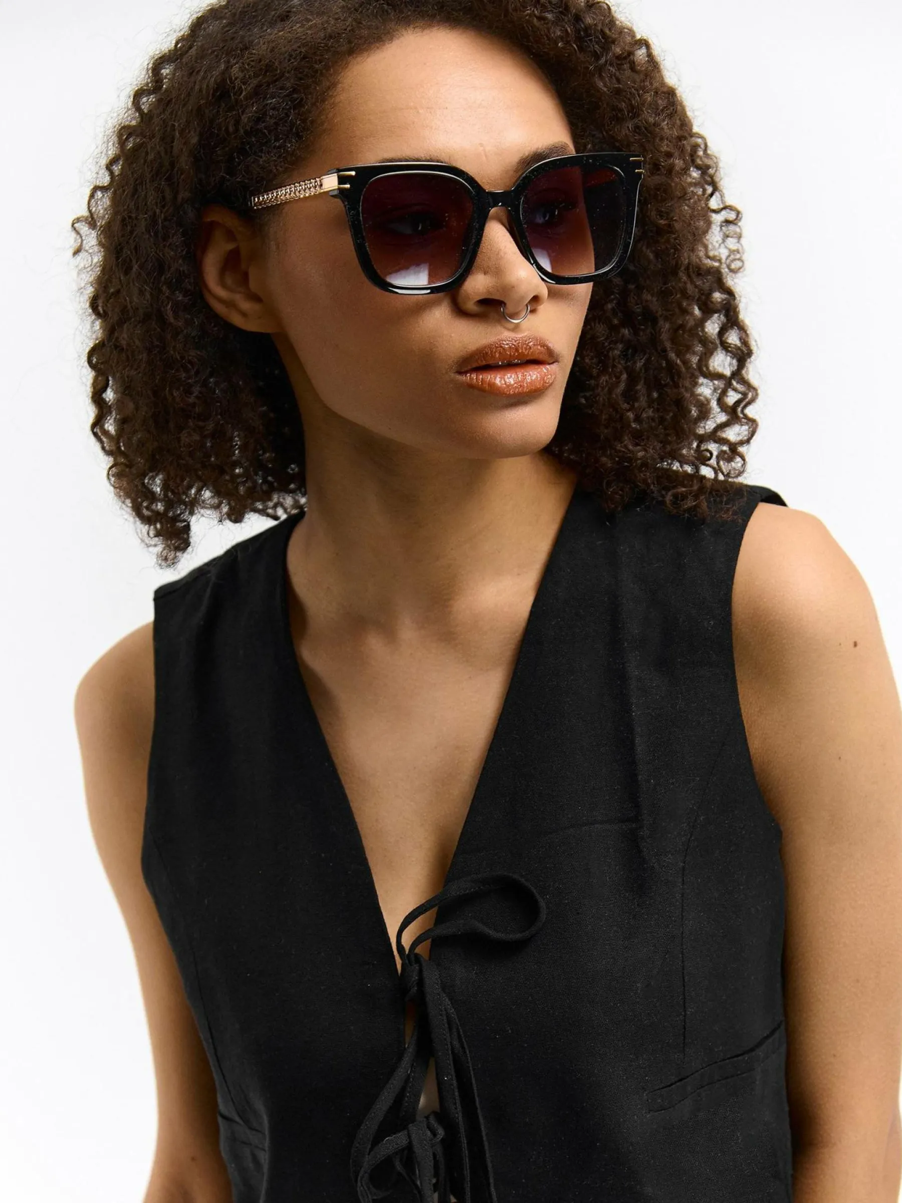 Deklaracja zgodności UEKolor: czarnyKrój: cat eyePattern style: pojedynczy kolorMateriał: plastikowyPłeć: kobietyOk…