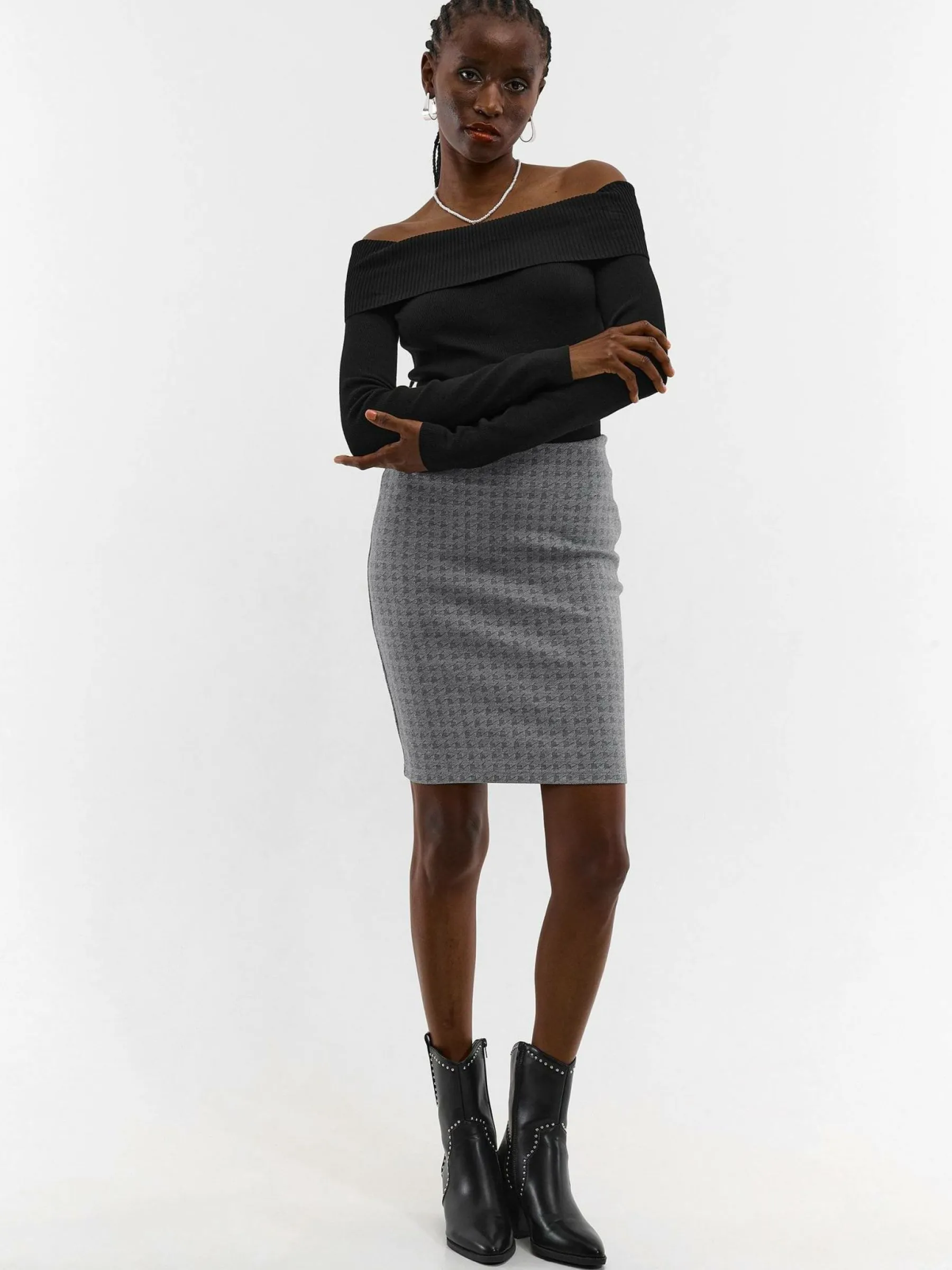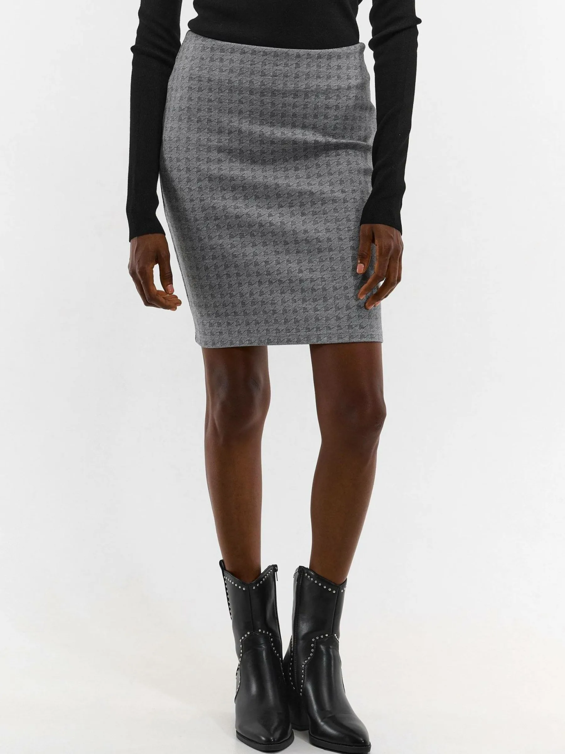 Zdjęcia z modelką mogą nie odpowiadać rzeczywistemu kolorowi produktu.Kolor: szaryKrój: ołówkoweTyp: spódnicaDł…