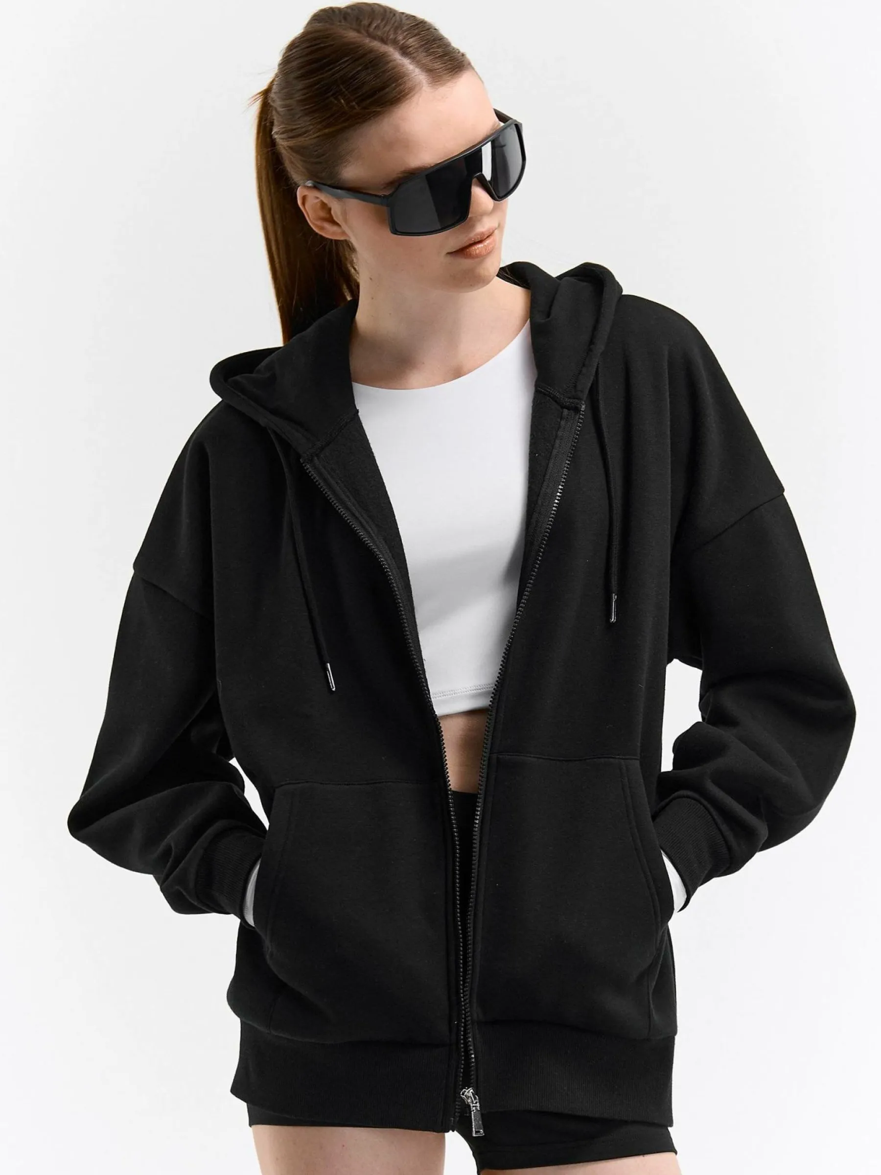 Kolor: czarnyKrój: oversizedTyp: bluzaRekaw: długi rękawDługość: dlugiePattern style: pojedynczy kolorDetal: na za…