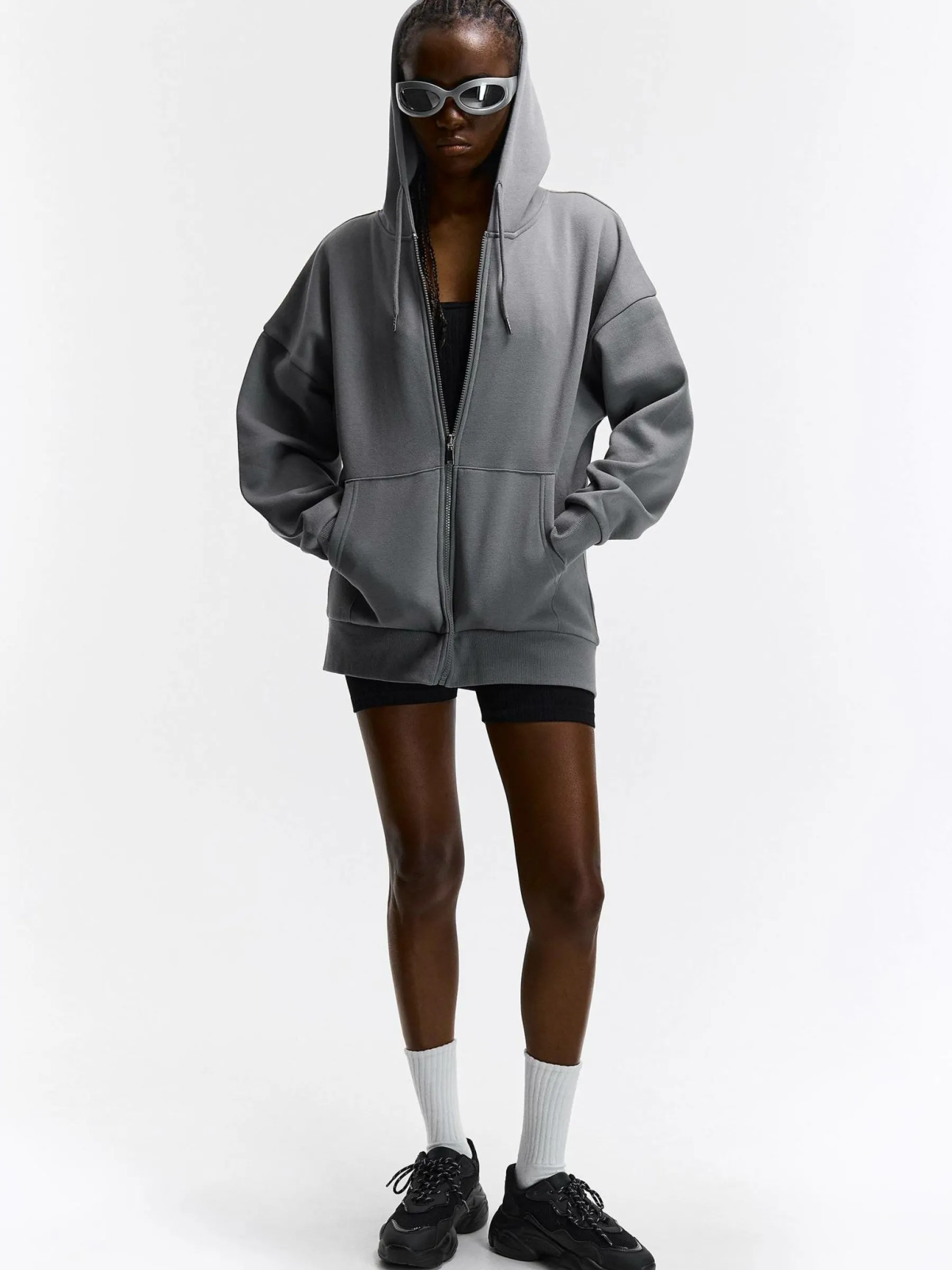 Kolor: szaryKrój: oversizedTyp: bluzaRekaw: długi rękawDługość: dlugiePattern style: pojedynczy kolorDetal: na zam…