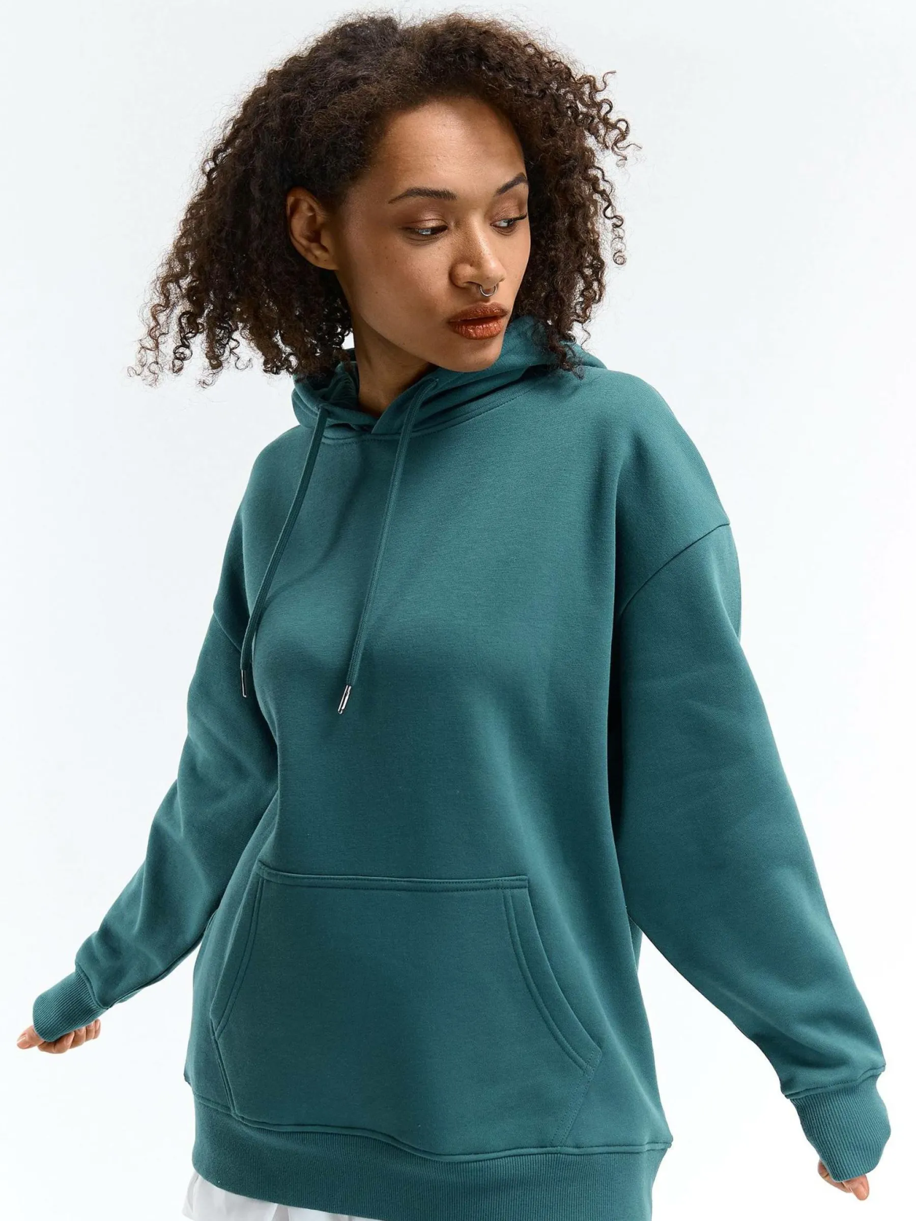 Kolor: zielonyKrój: oversizedTyp: bluzaRekaw: długi rękawDługość: dlugiePattern style: pojedynczy kolorDetal: nad …
