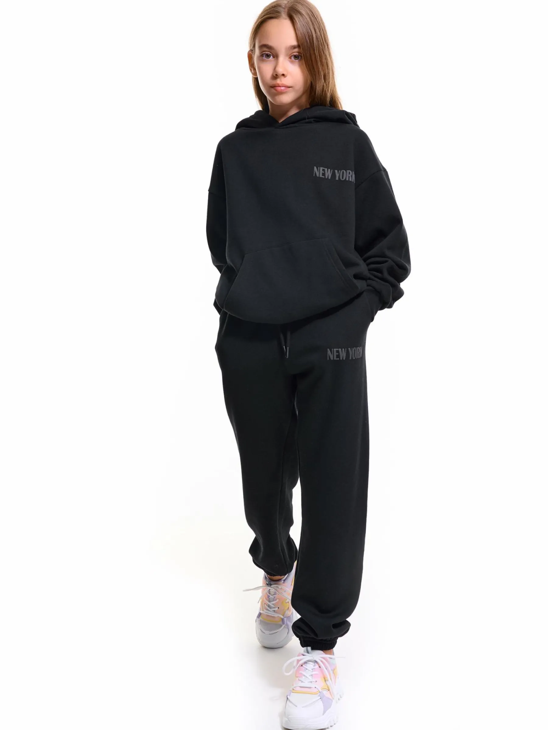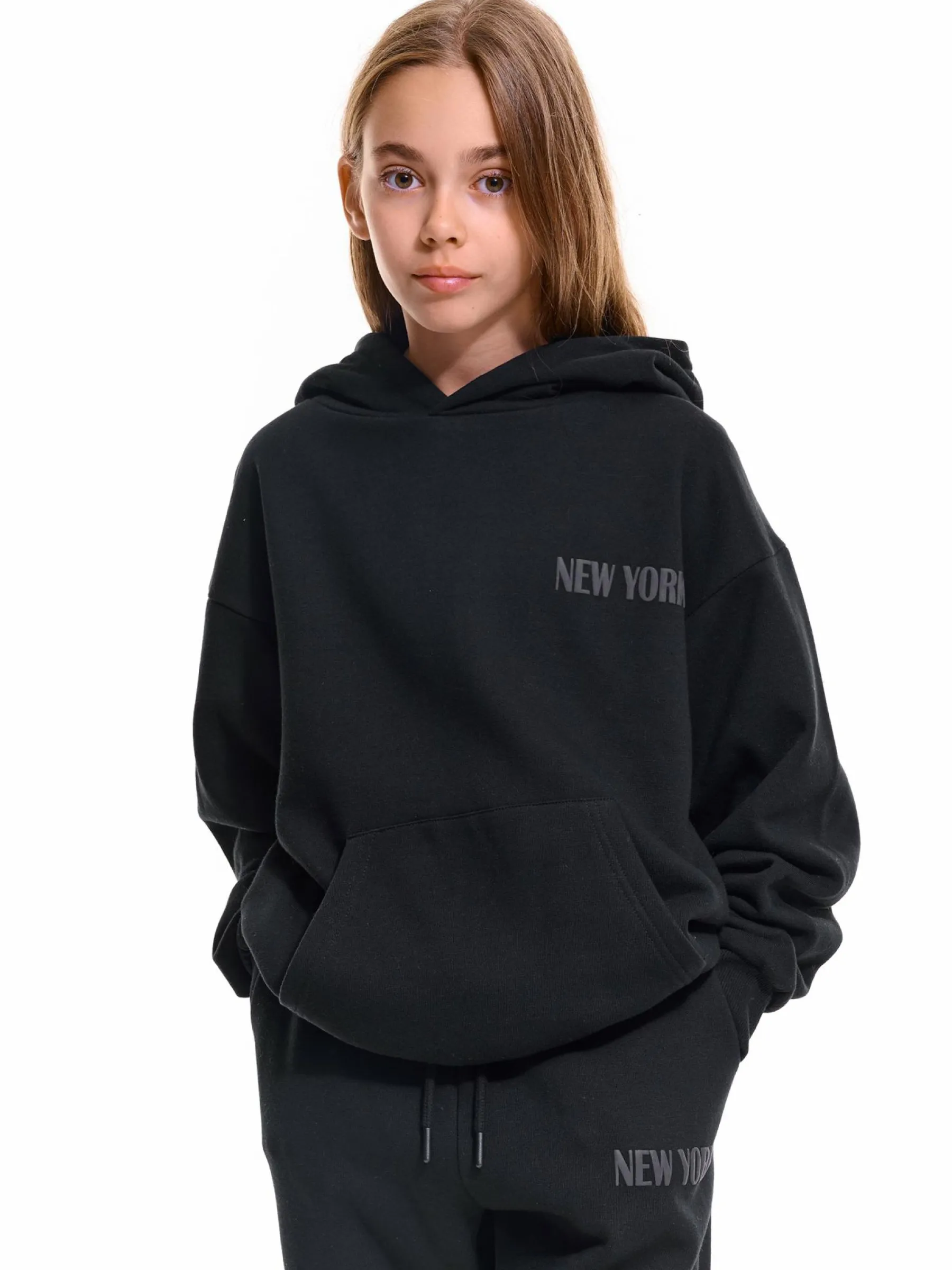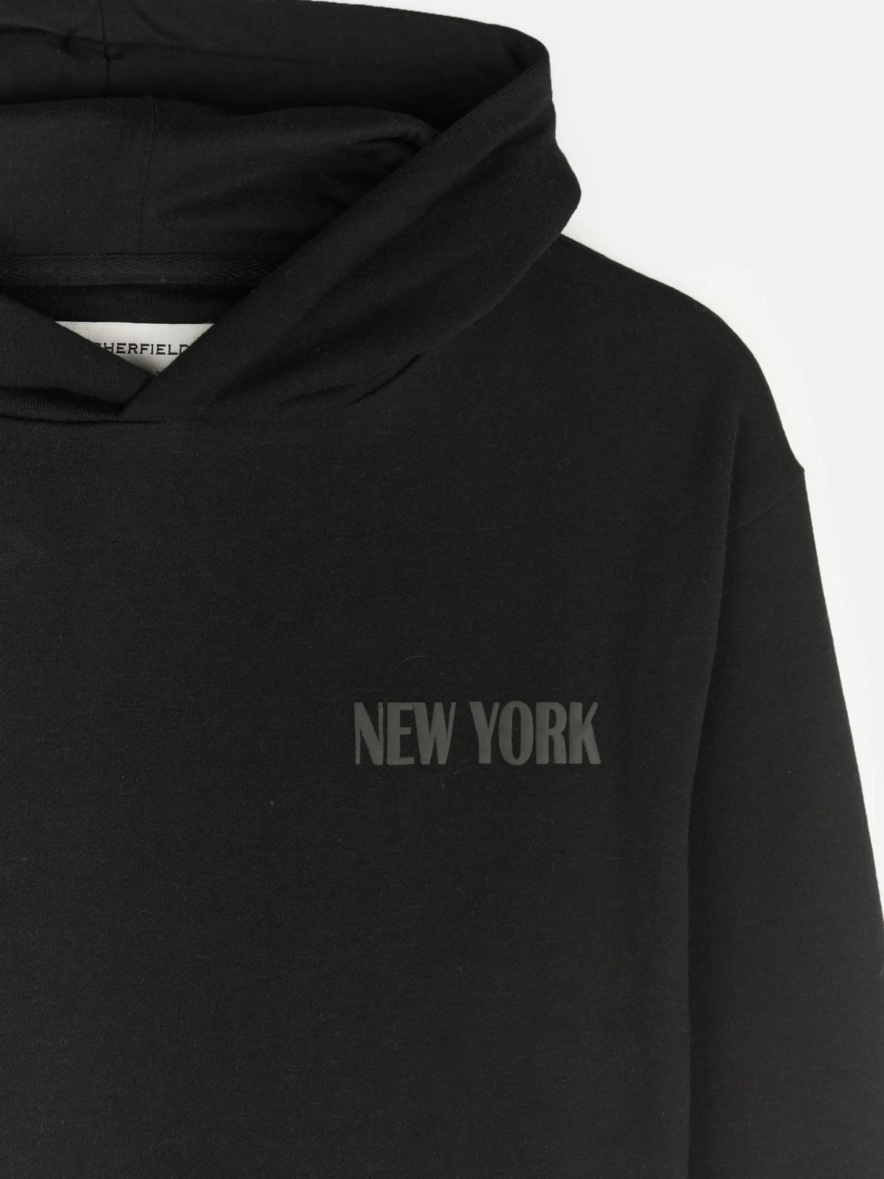 Kolor: czarnyKrój: oversizedTyp: bluzaRekaw: długi rękawDługość: krótkiPattern style: z napisemDetal: bluza z kap…