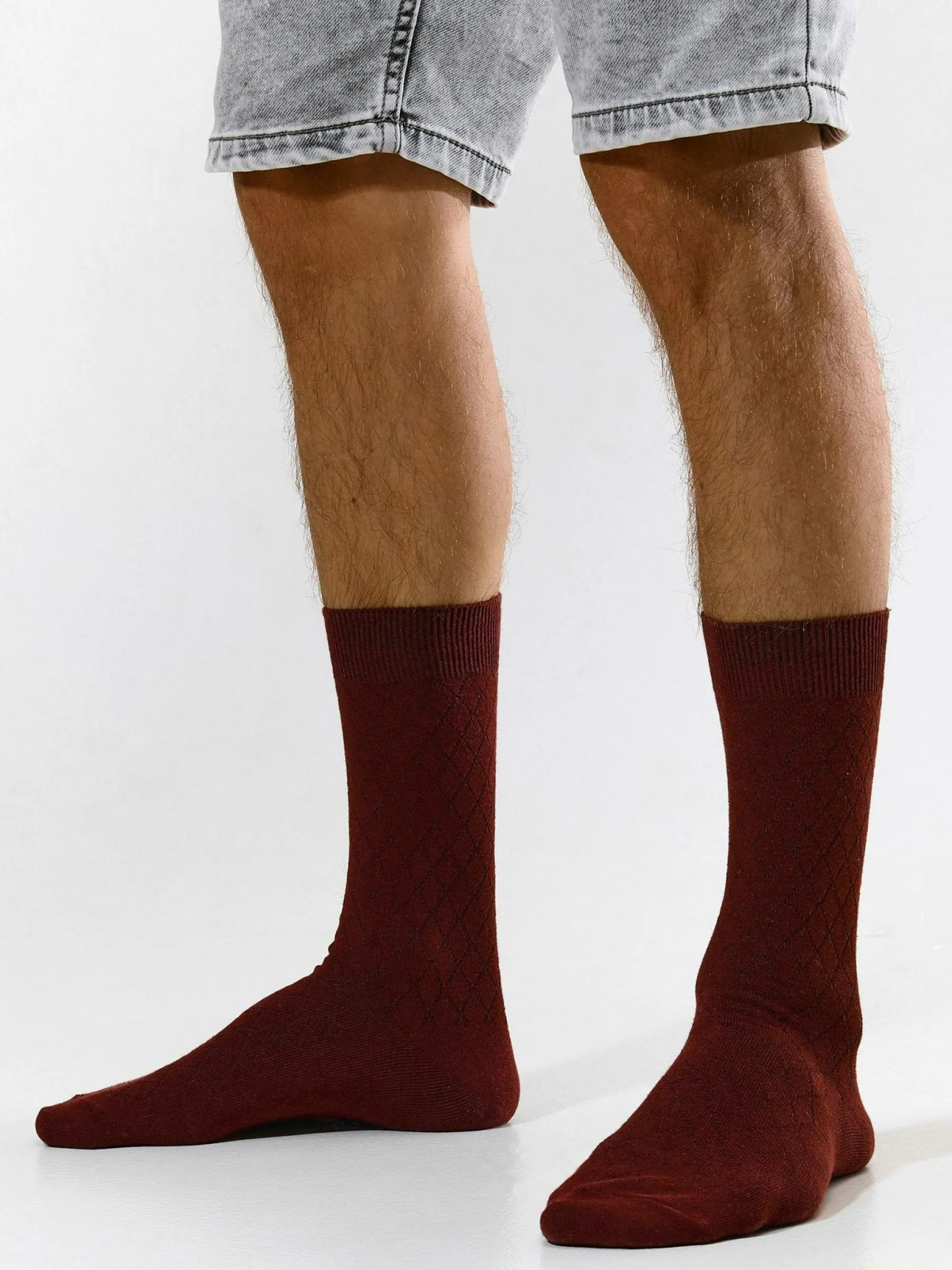 Kolor: burgundyKrój: wysokie skarpetyTyp: skarpetyPattern style: pojedynczy kolorMateriał: mieszanyPłeć: męskiOkazj…