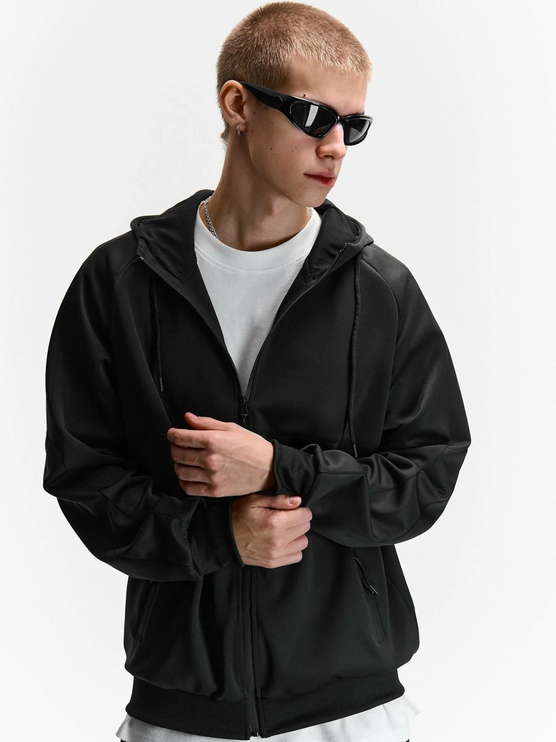 Kolor: czarnyKrój: podstawowyTyp: bluzaRekaw: długi rękawDługość: krótkiPattern style: pojedynczy kolorDetal: na …