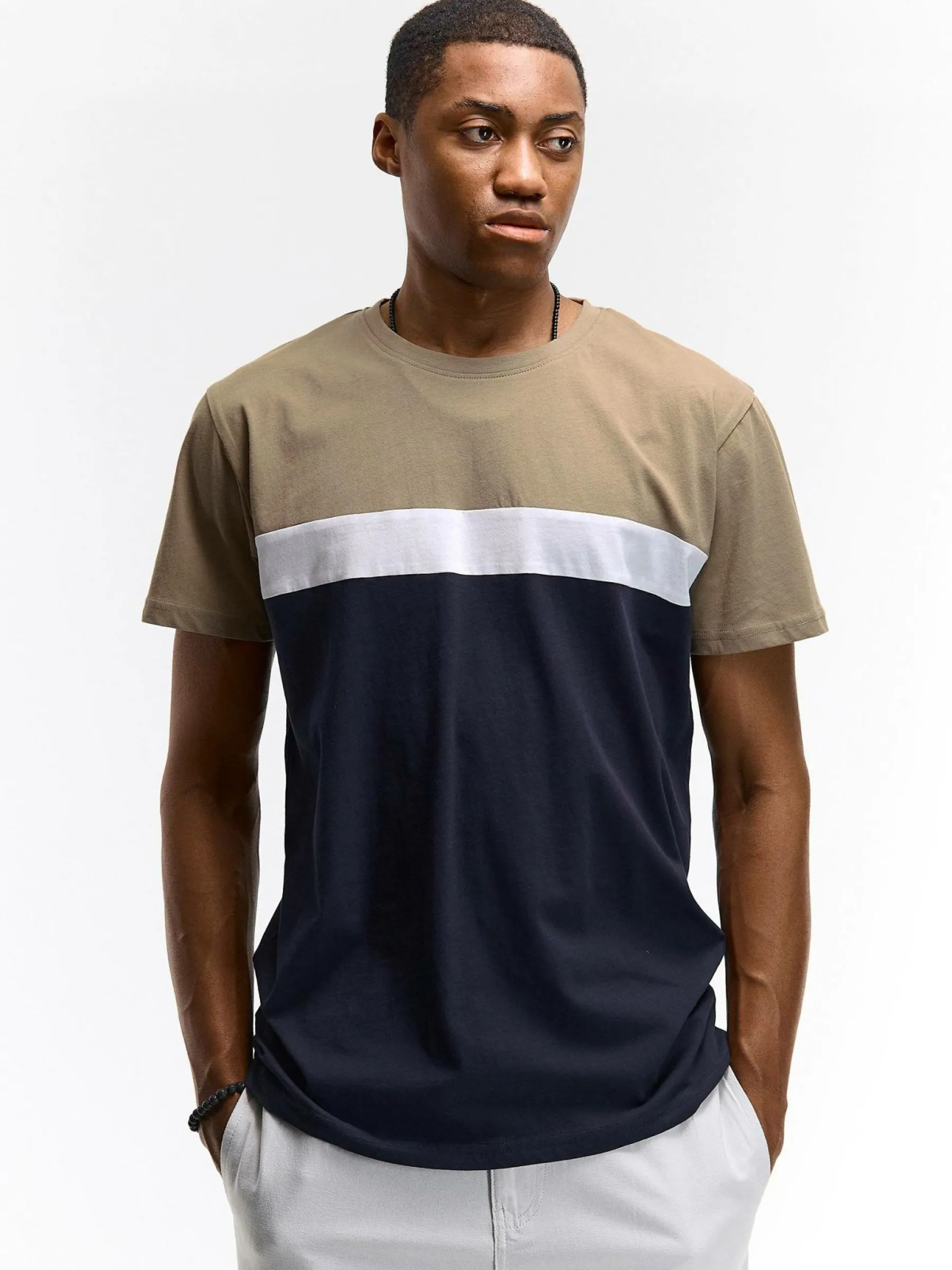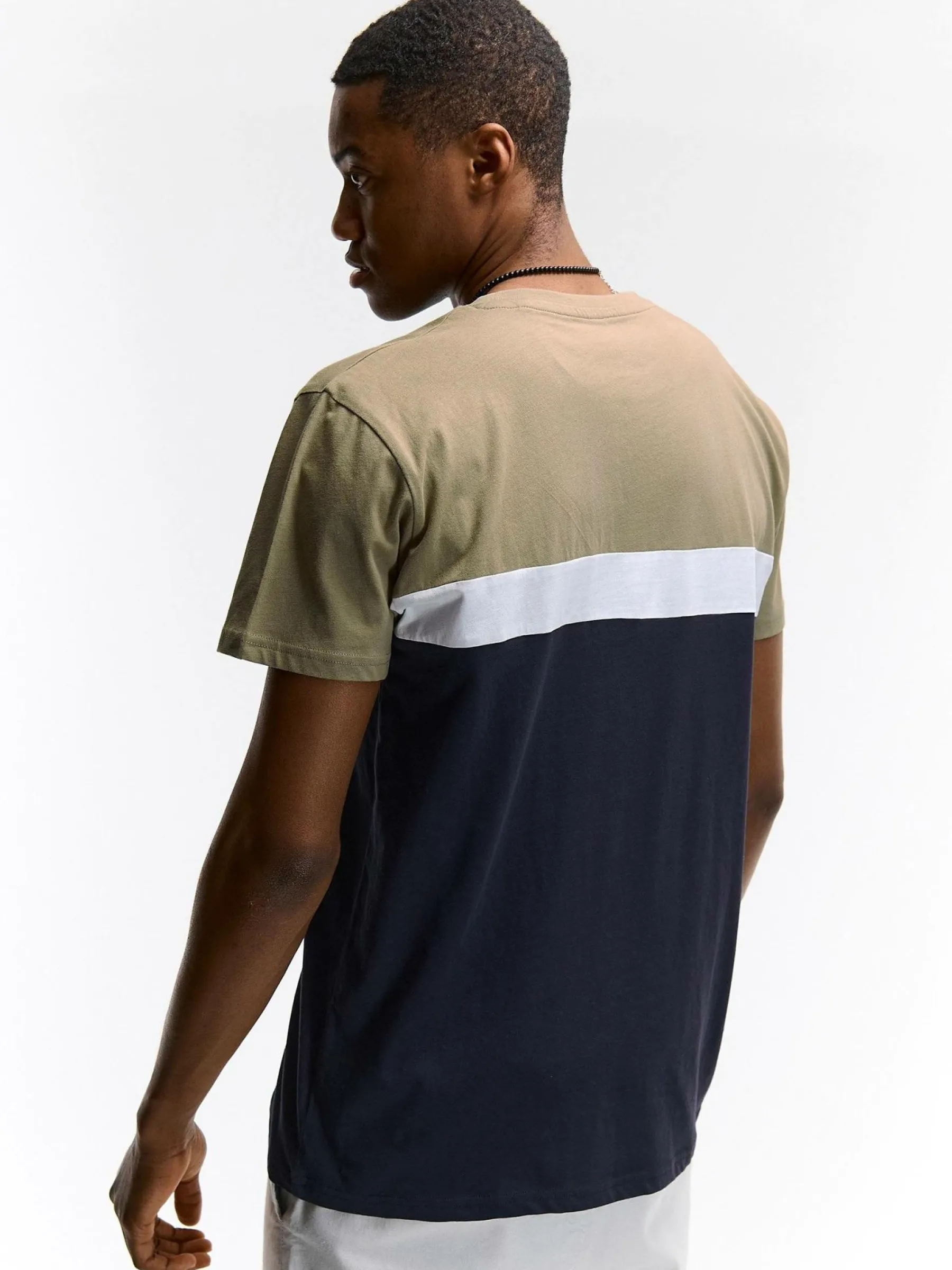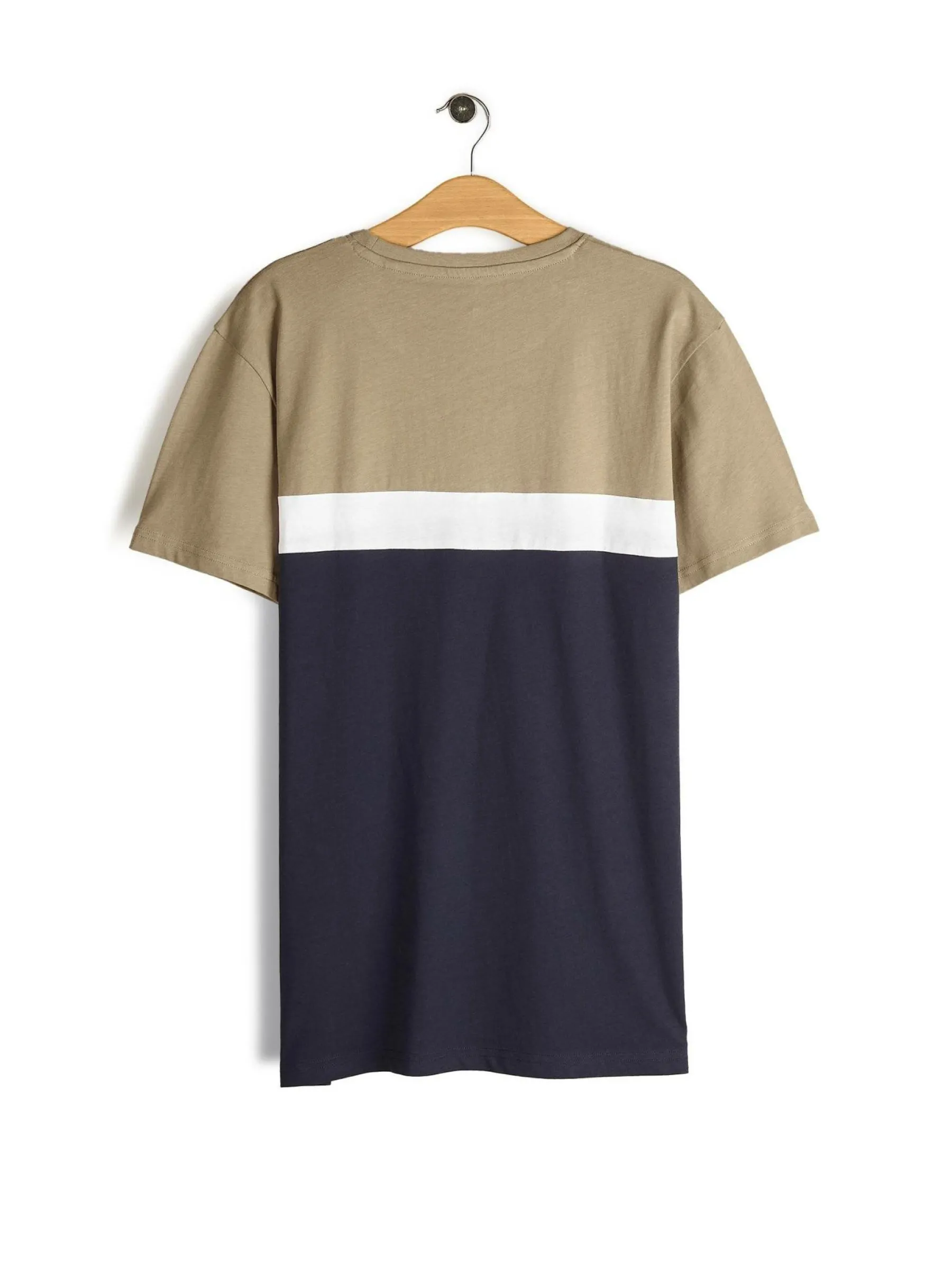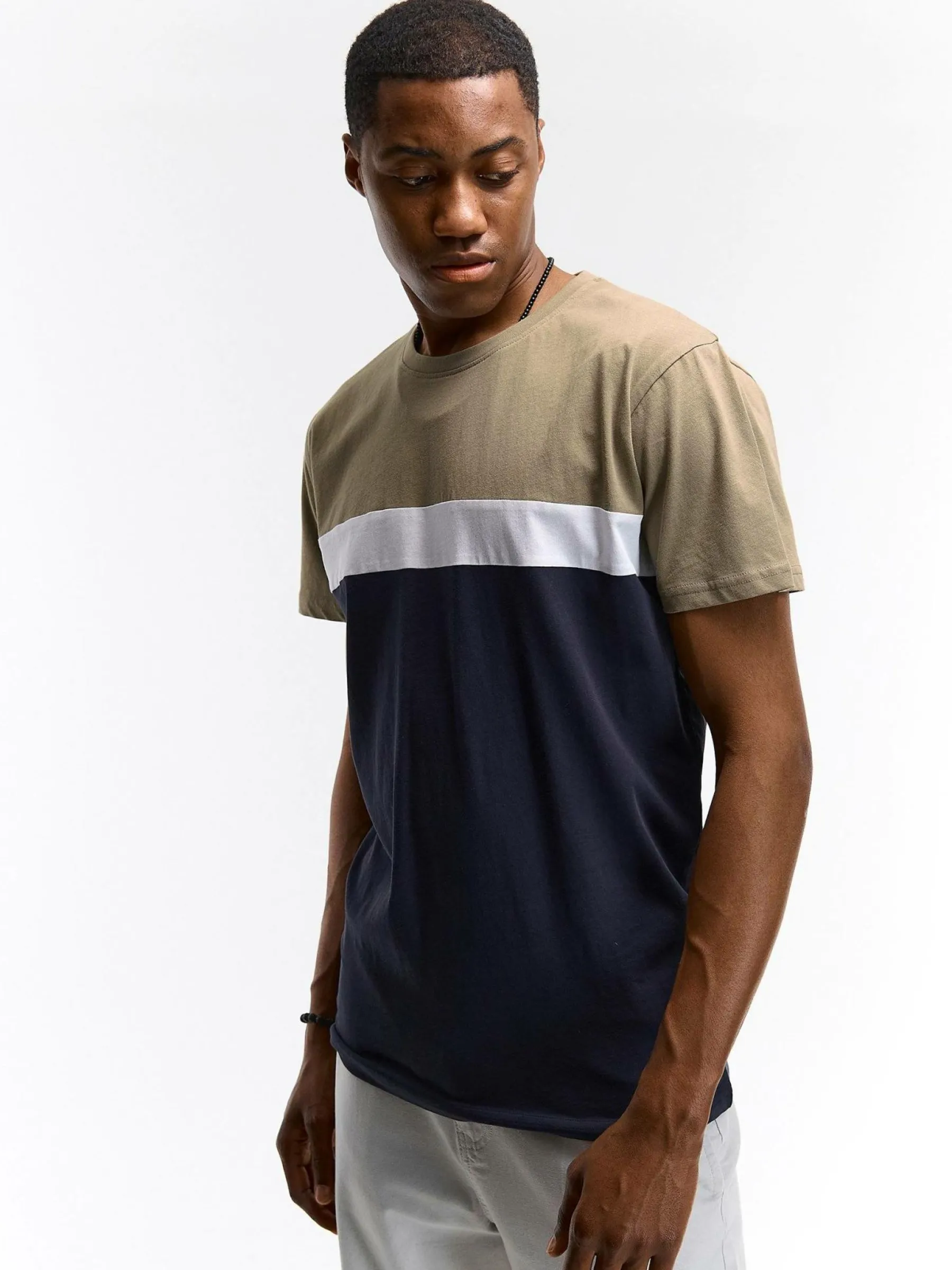 Kolor: granatowy, niebieskiKrój: regularTyp: koszulkaRekaw: krótki rękawPattern style: colour blockDetal: nad głową…
