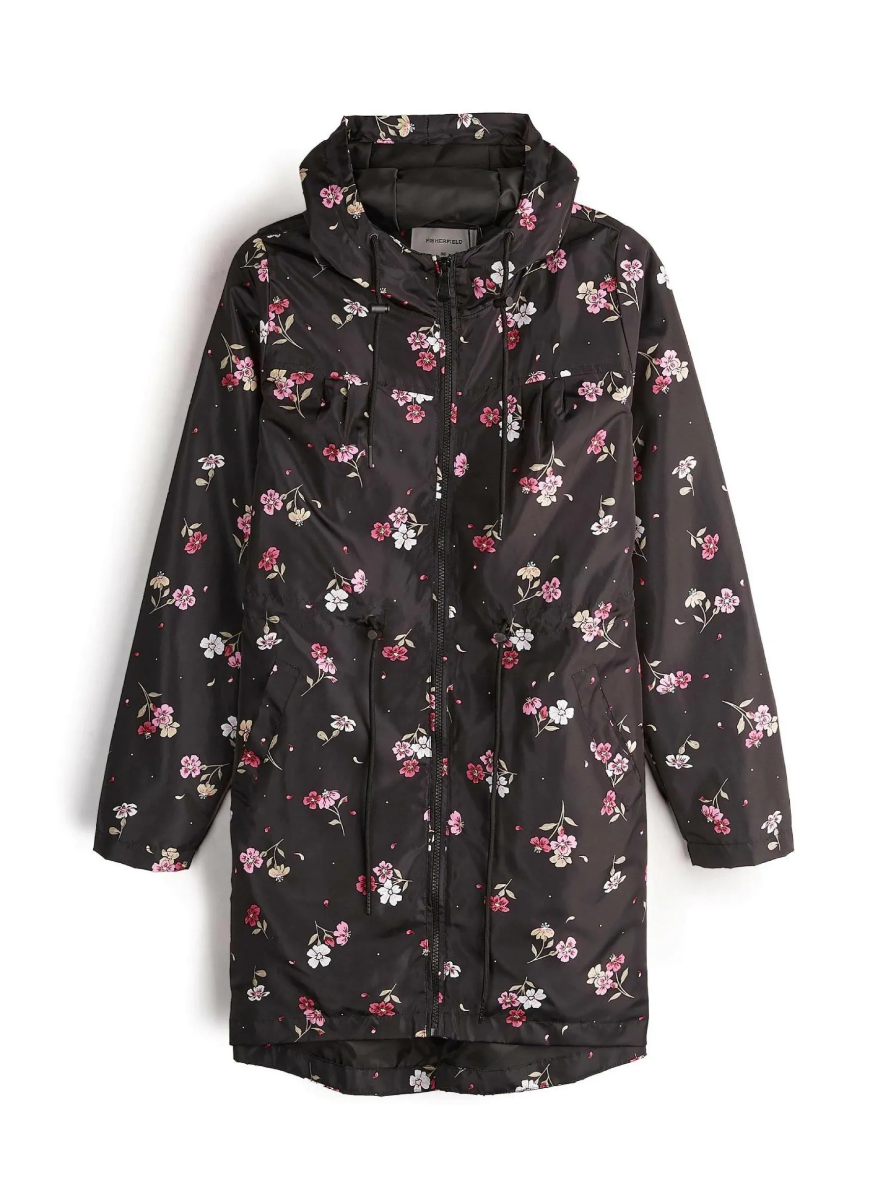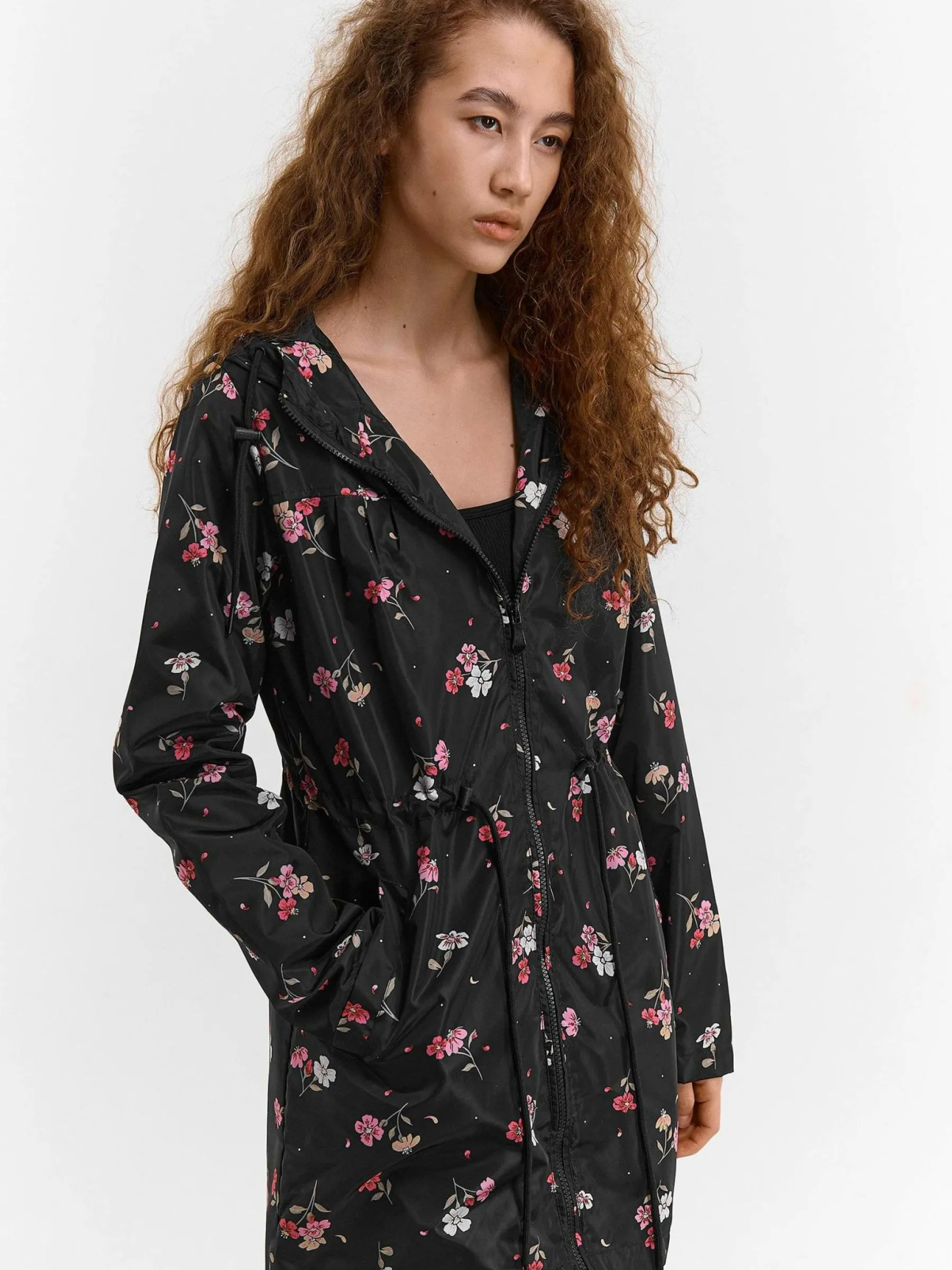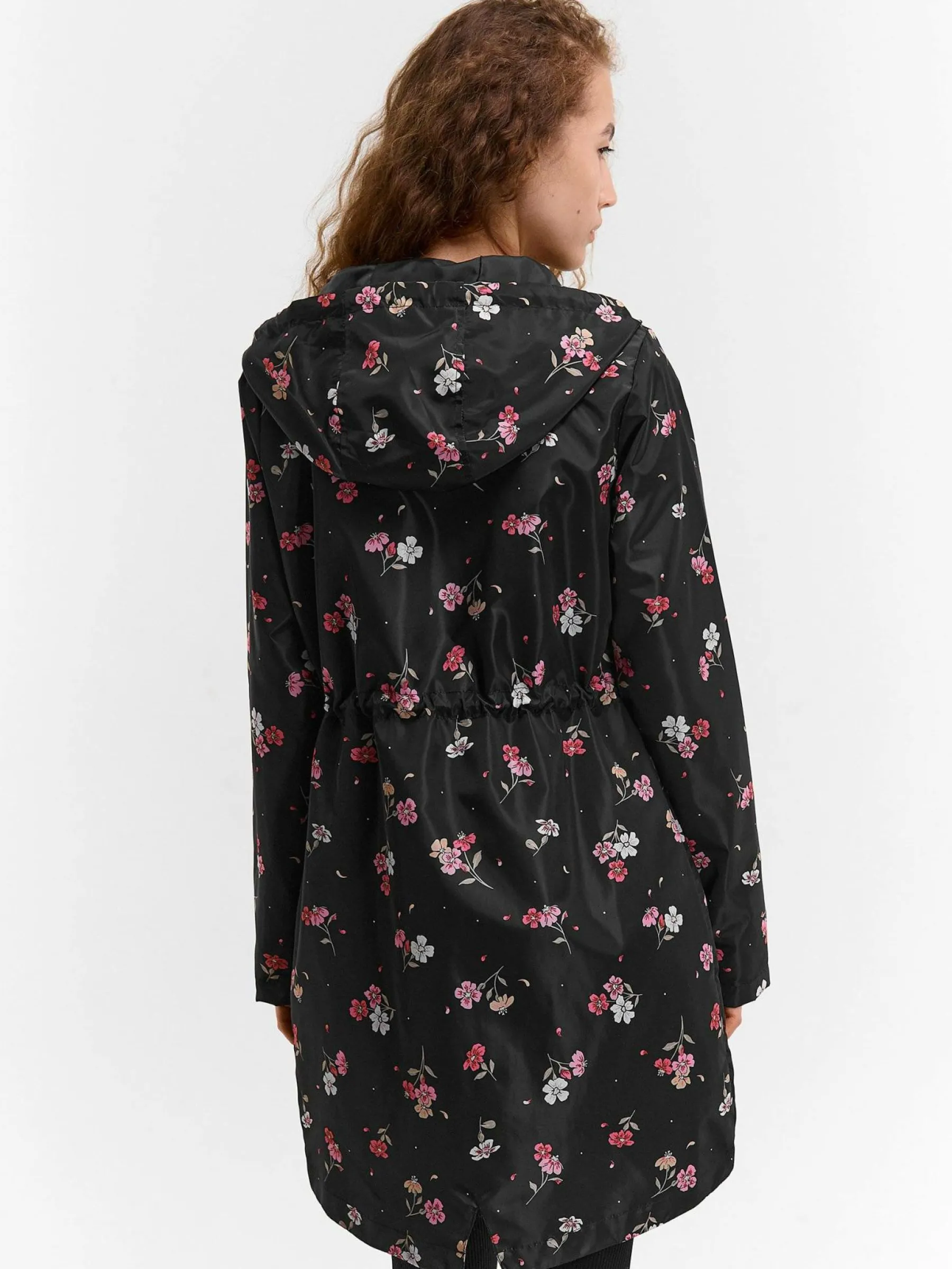Kolor: czarnyKrój: kurtka parkaTyp: kurtka przejściowaRekaw: długi rękawDługość: dlugiePattern style: kwiatoweDet…