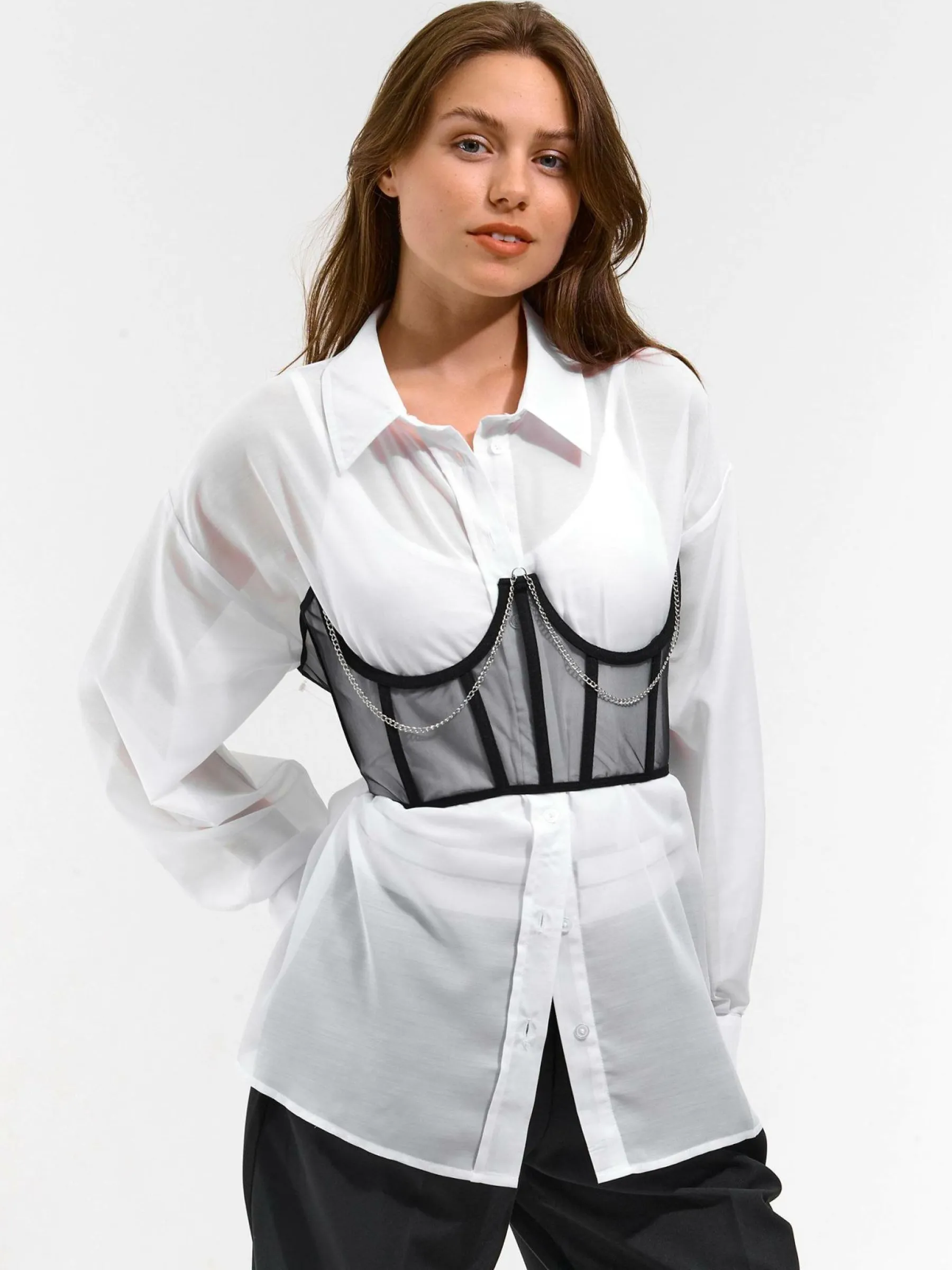 Kolor: czarnyKrój: szerokieTyp: pasekPattern style: pojedynczy kolorDetal: z łańcuchemMateriał: w sieciPłeć: kobie…