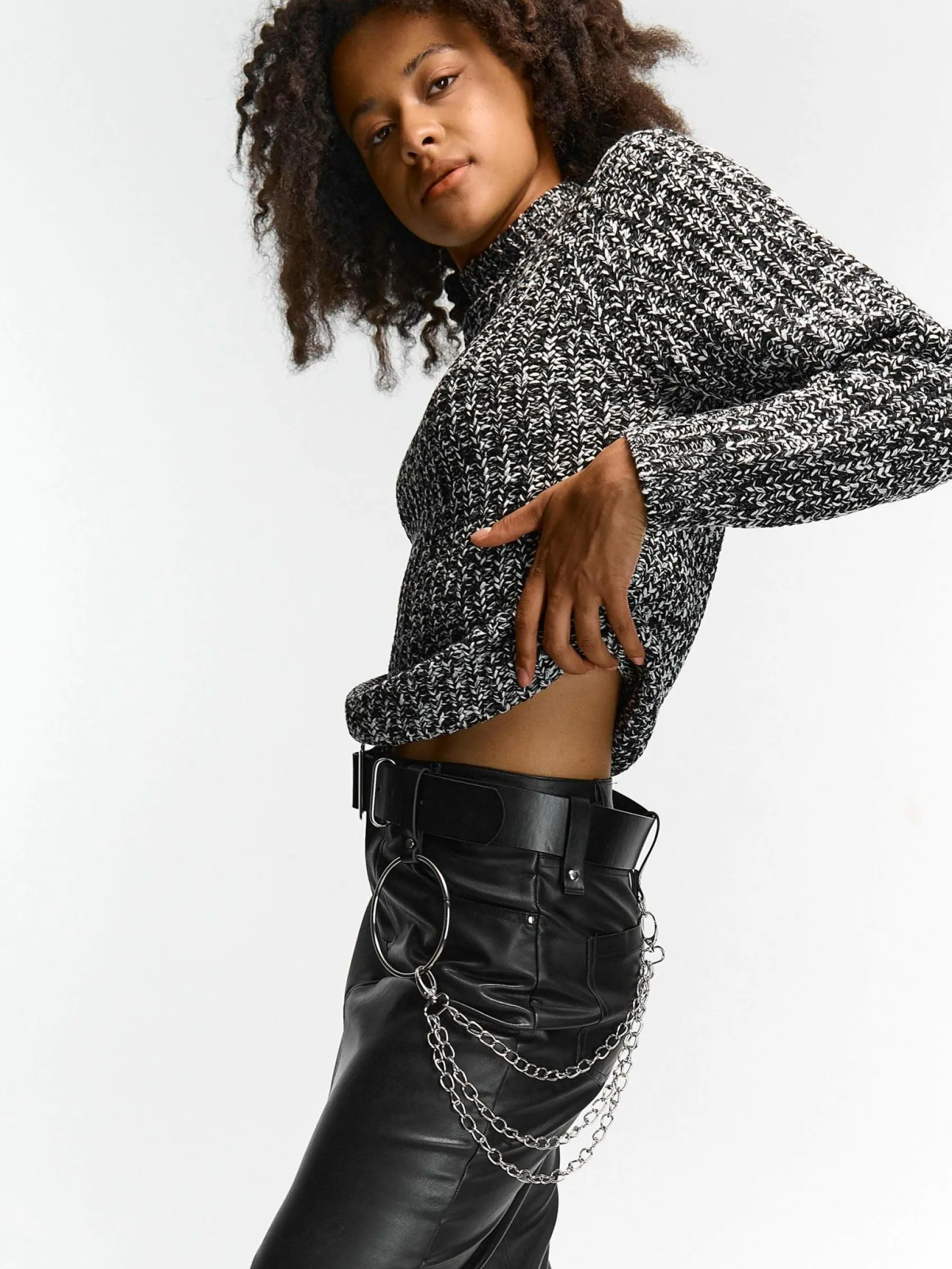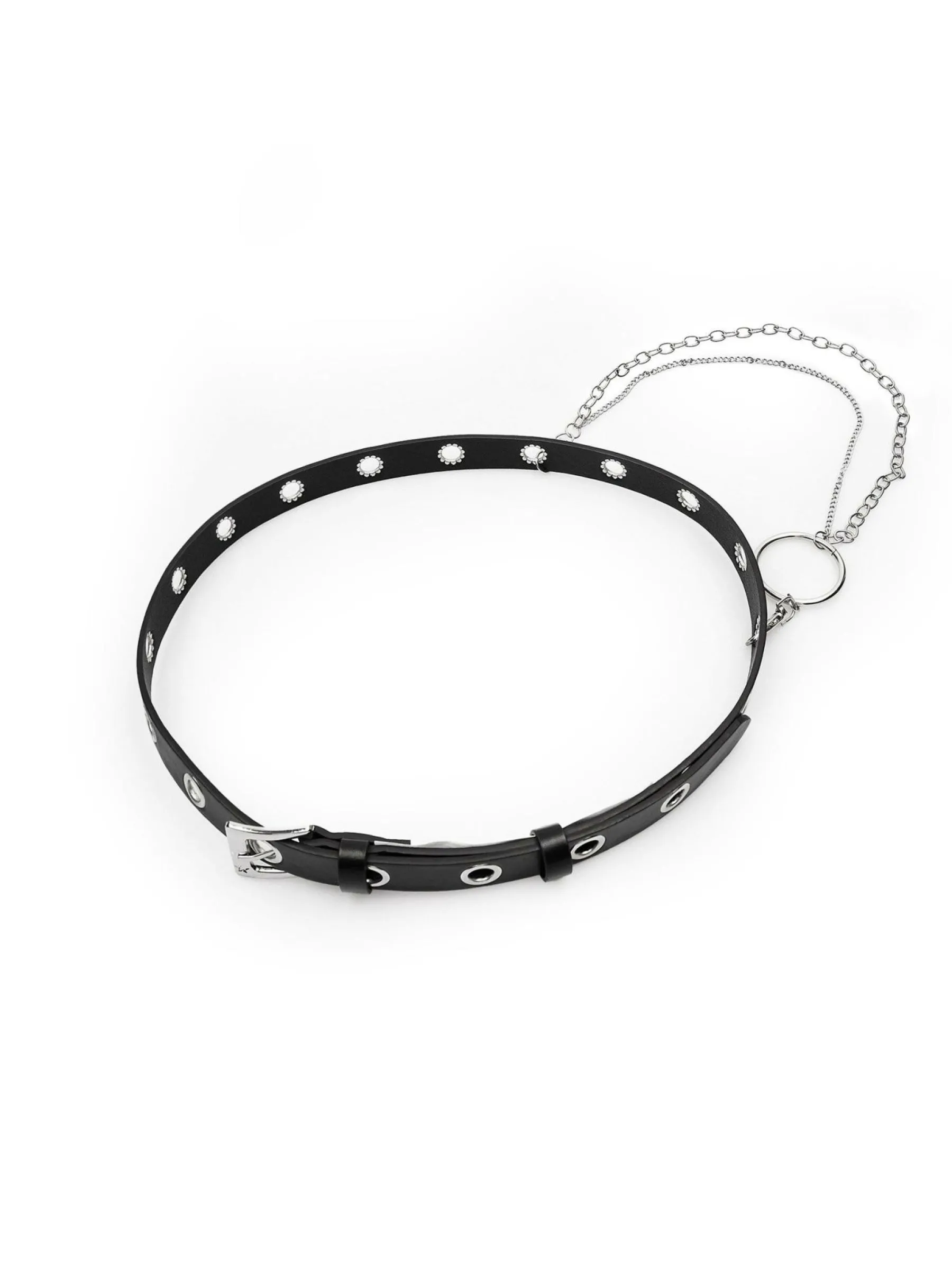 Kolor: czarnyKrój: podstawowyTyp: pasekPattern style: pojedynczy kolorDetal: z łańcuchemMateriał: sztuczna skóraPł…