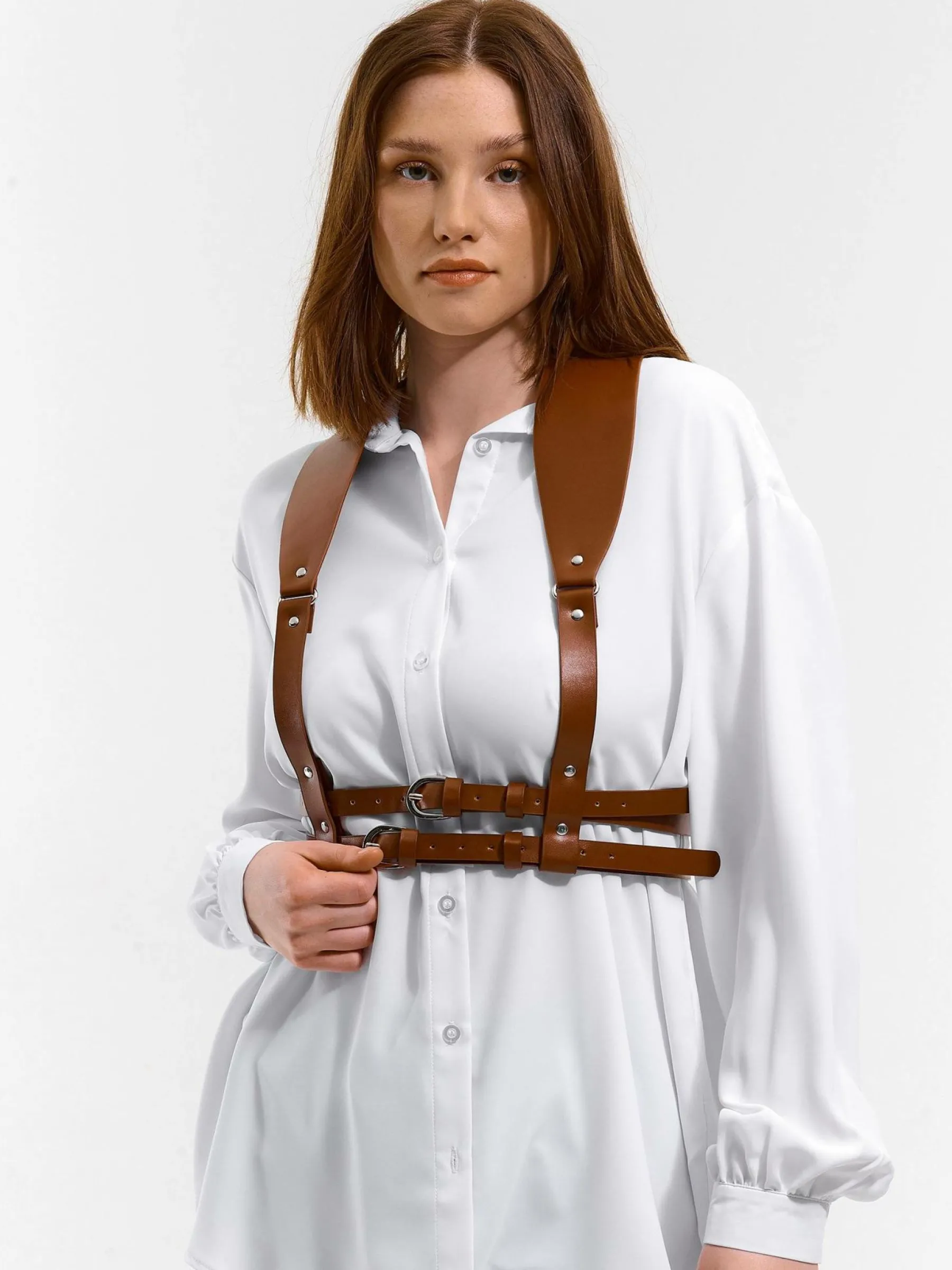 Kolor: brązowyTyp: pasekPattern style: pojedynczy kolorMateriał: sztuczna skóraPłeć: kobietyOkazja: odzież codzien…