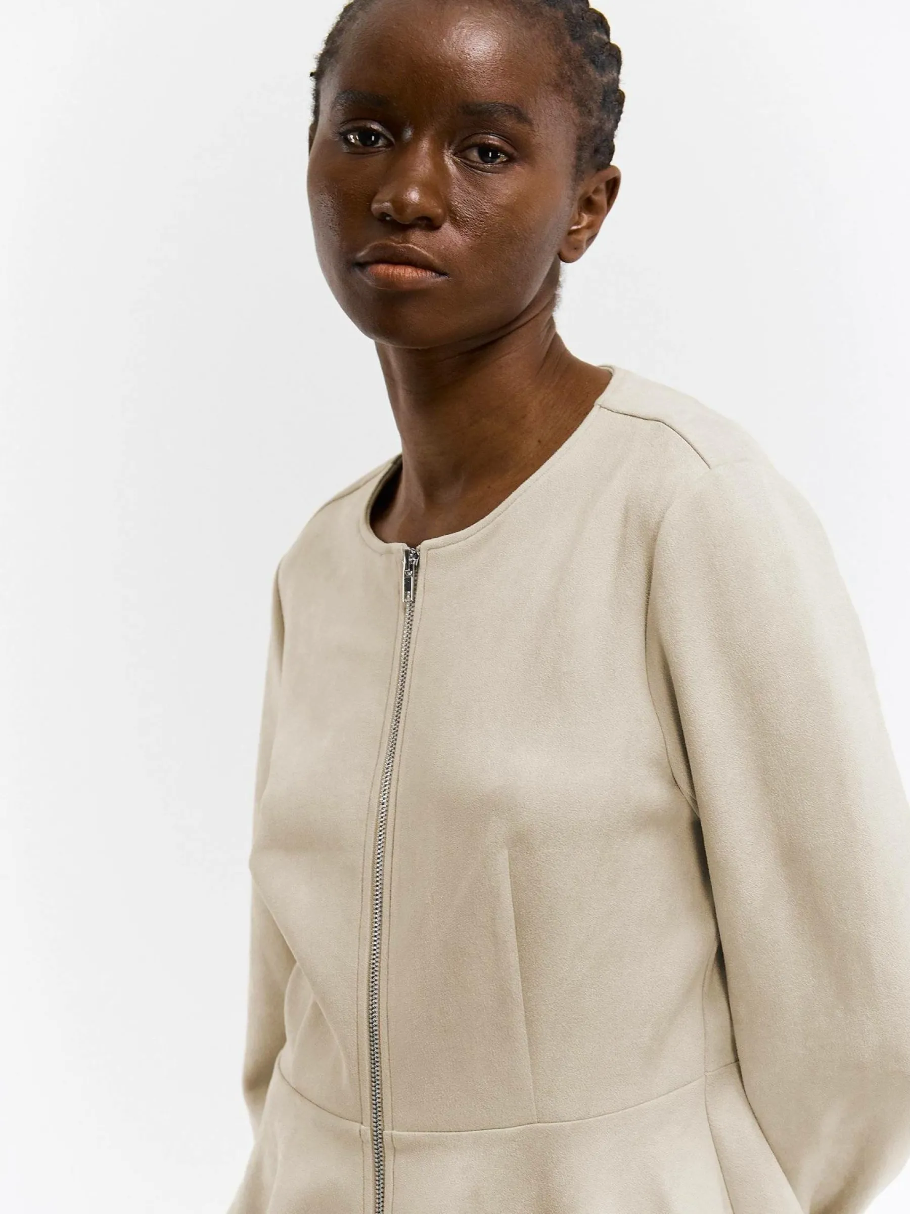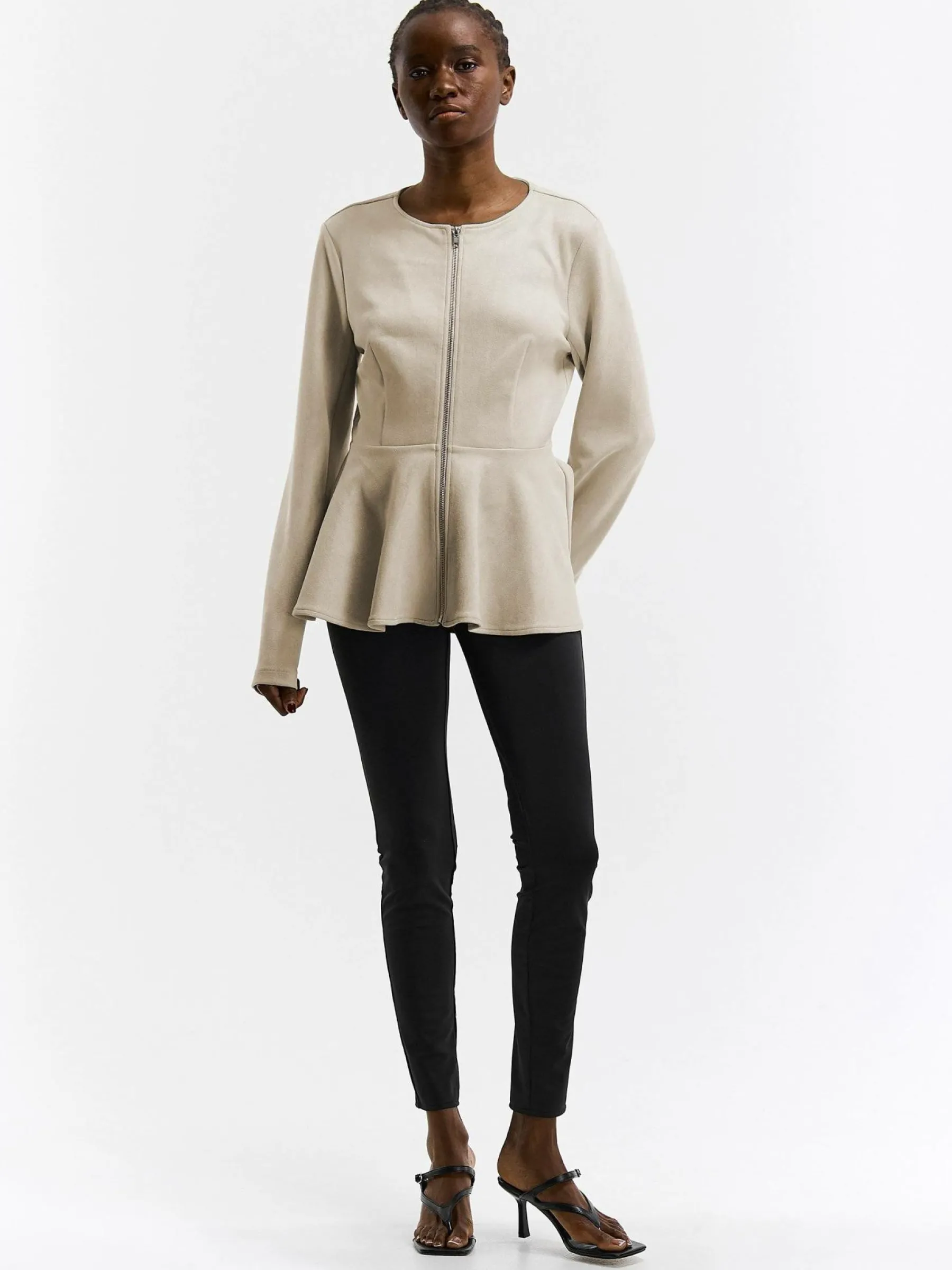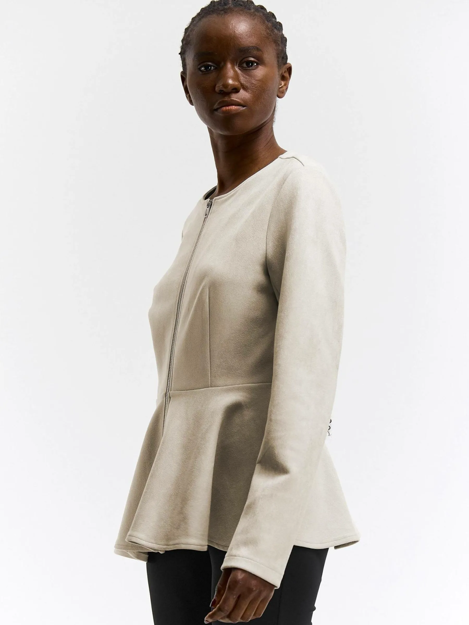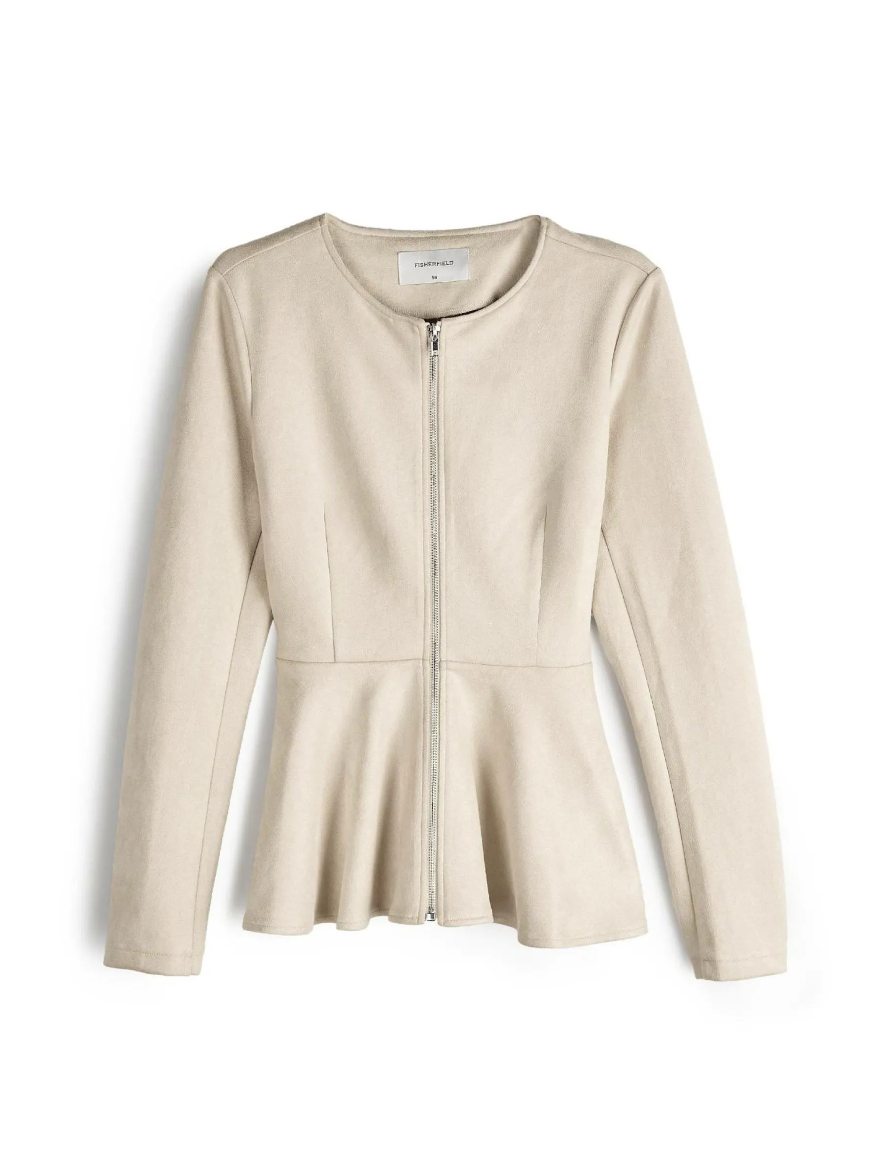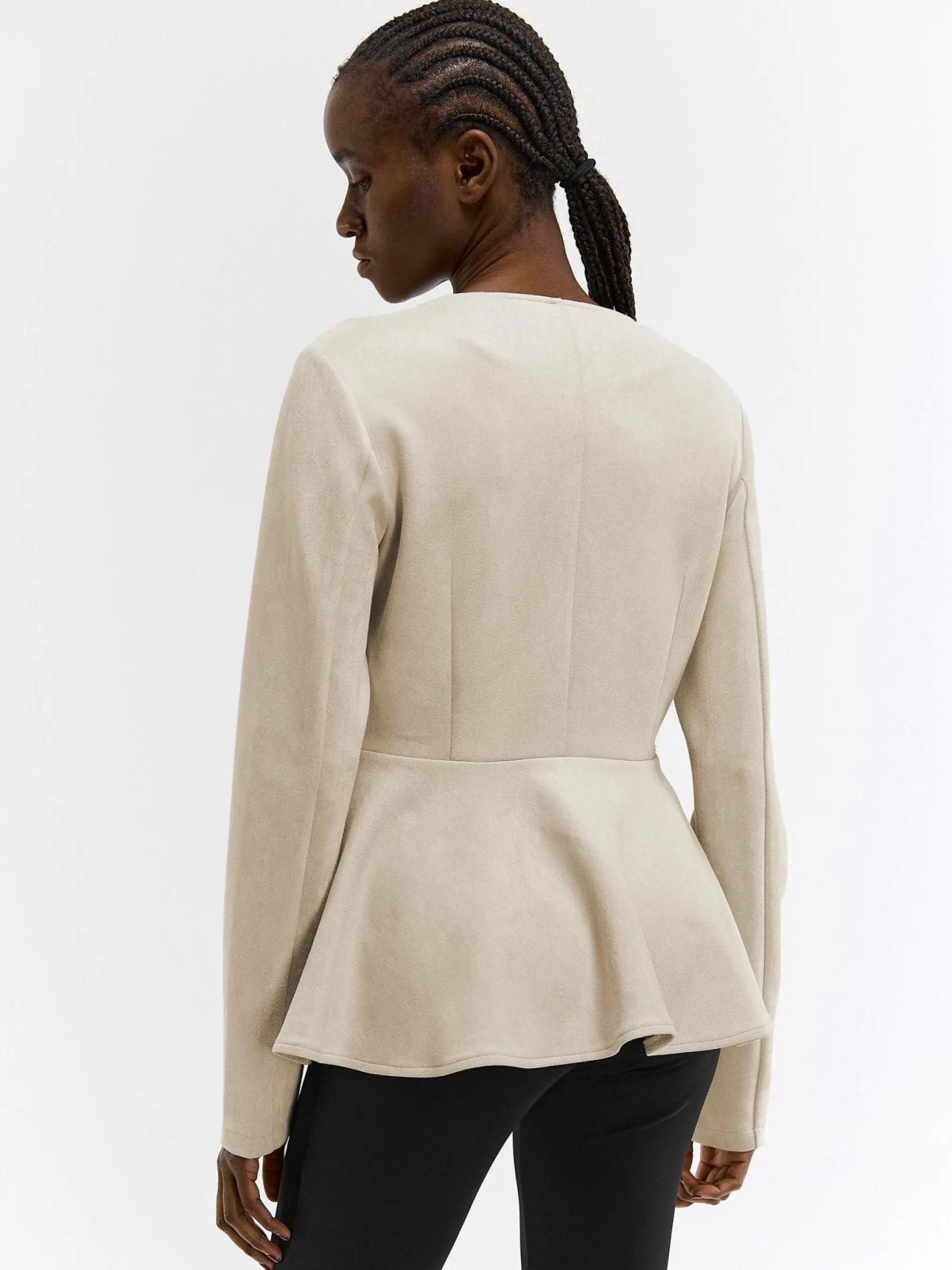 Kolor: beżowyKrój: z falbanąTyp: blezerRekaw: długi rękawDługość: dlugiePattern style: pojedynczy kolorDetal: na…