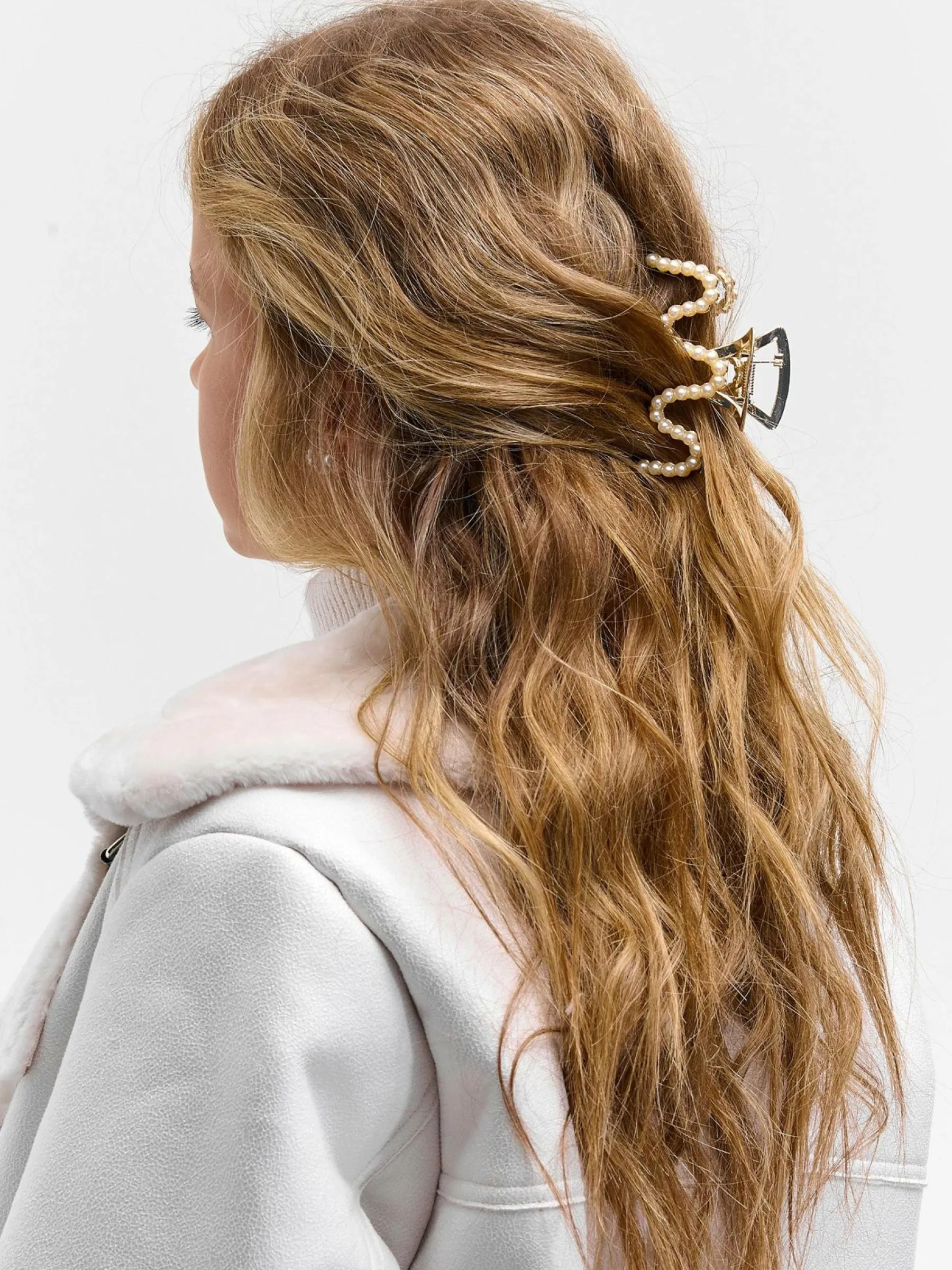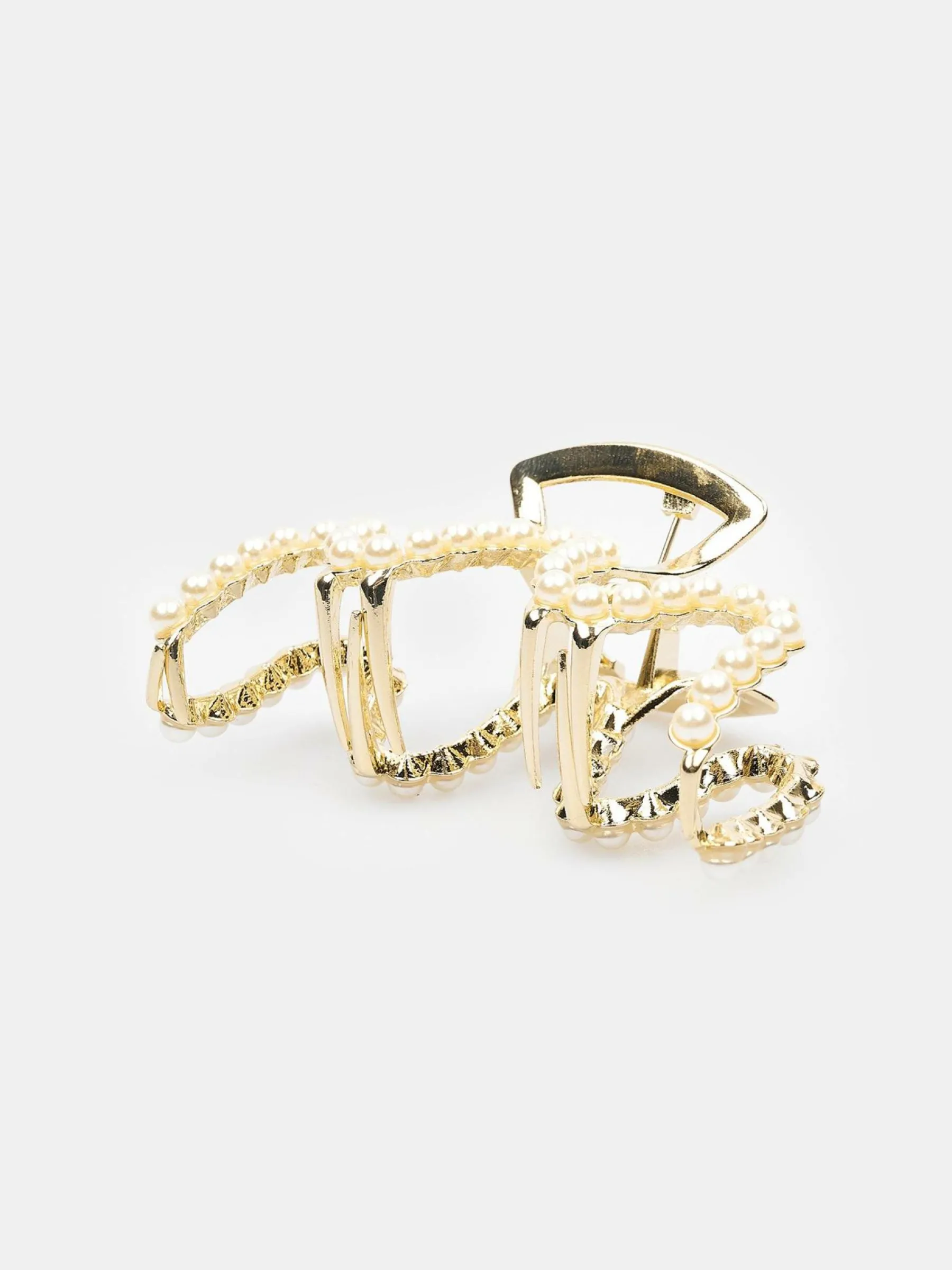 Kolor: goldTyp: klamraPattern style: pojedynczy kolorDetal: z perełkamiMateriał: metal, plastikowyPłeć: kobietyOkazj…