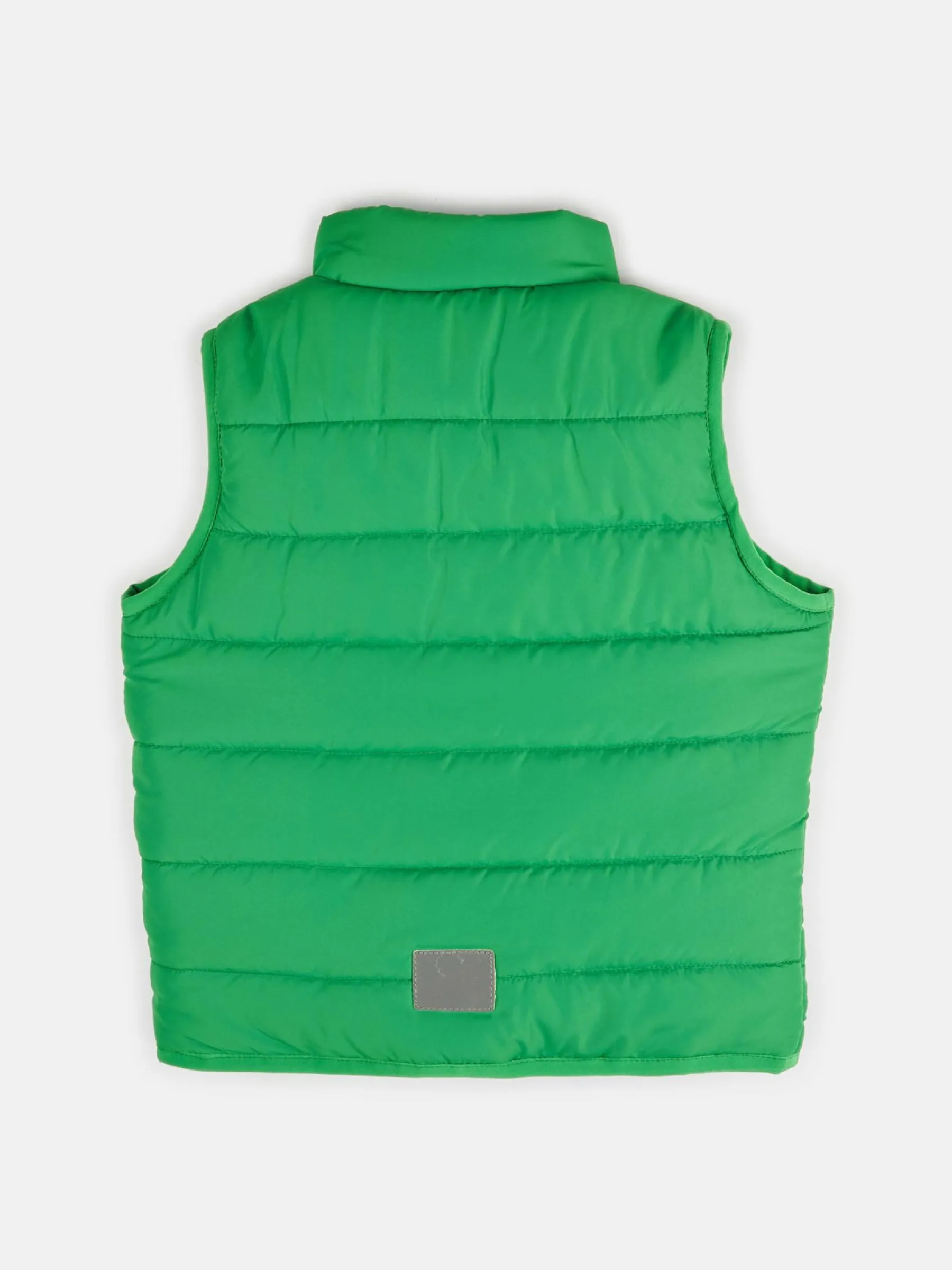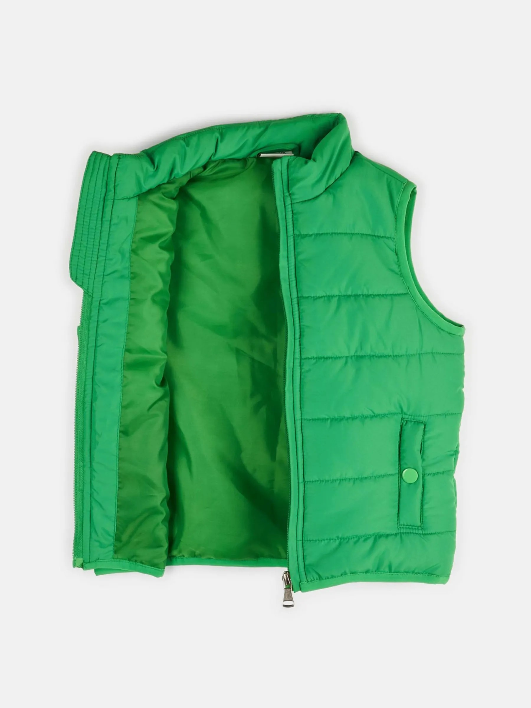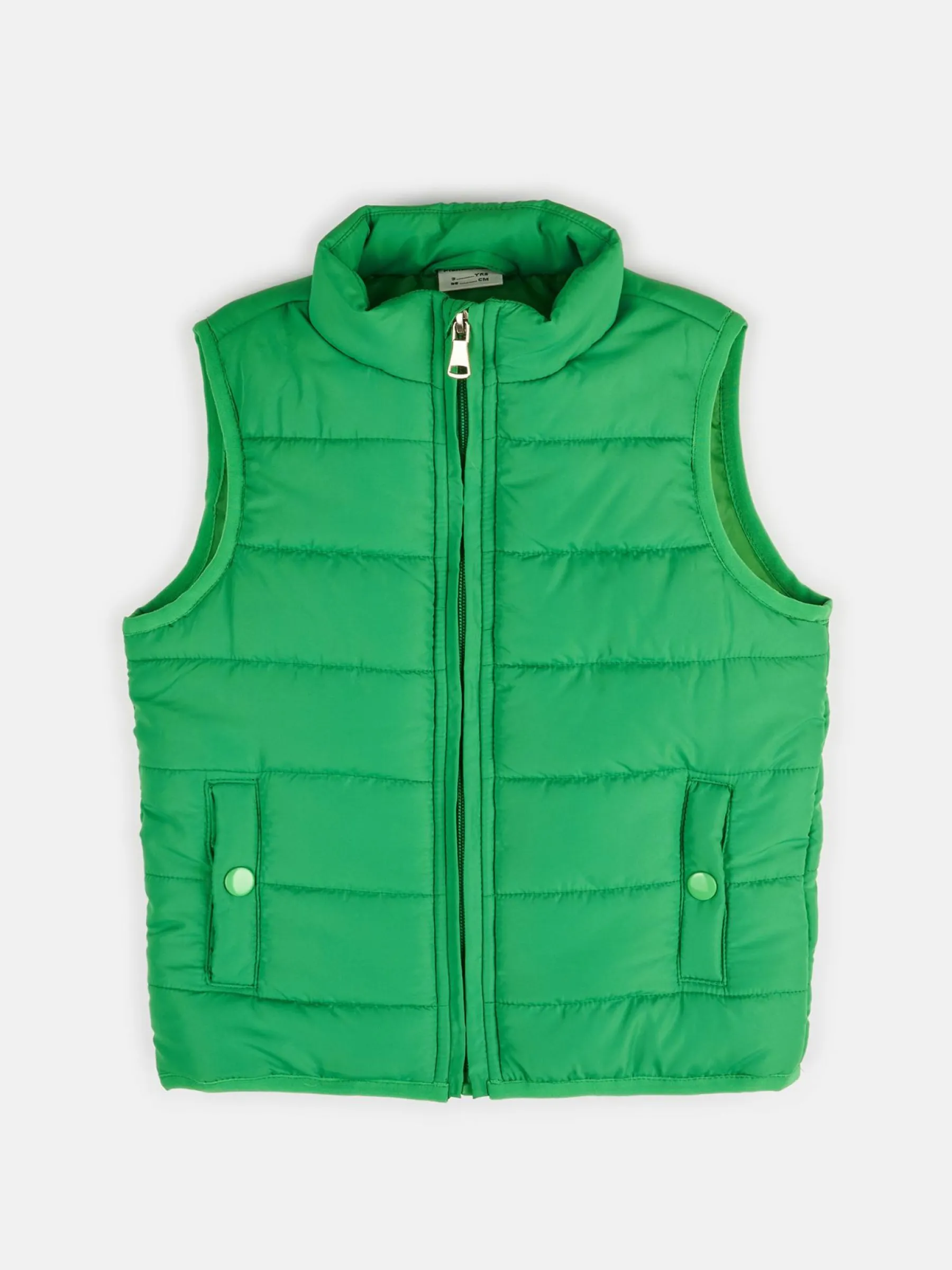 Kolor: zielonyKrój: pikowaneTyp: kamizelkaRekaw: bez rękawówDługość: krótkiPattern style: pojedynczy kolorDetal: …