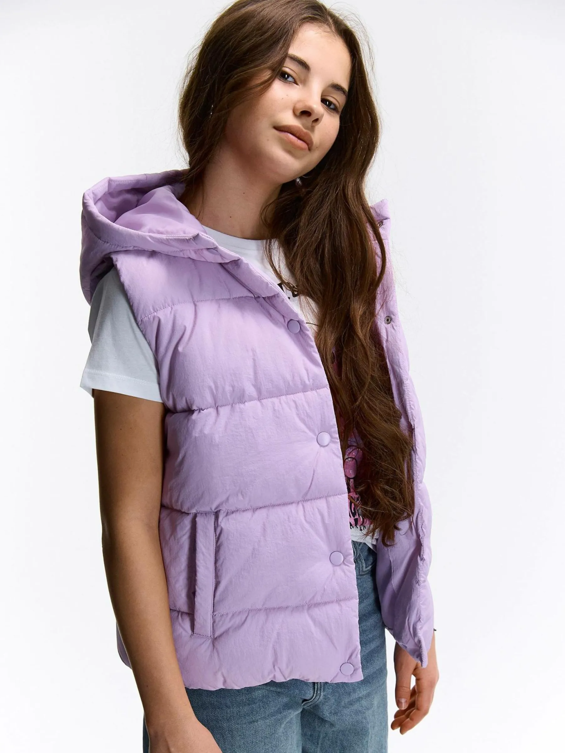 Kolor: różowy, purpurowyKrój: regular, pikowaneTyp: kamizelkaRekaw: bez rękawówDługość: krótkiPattern style: po…