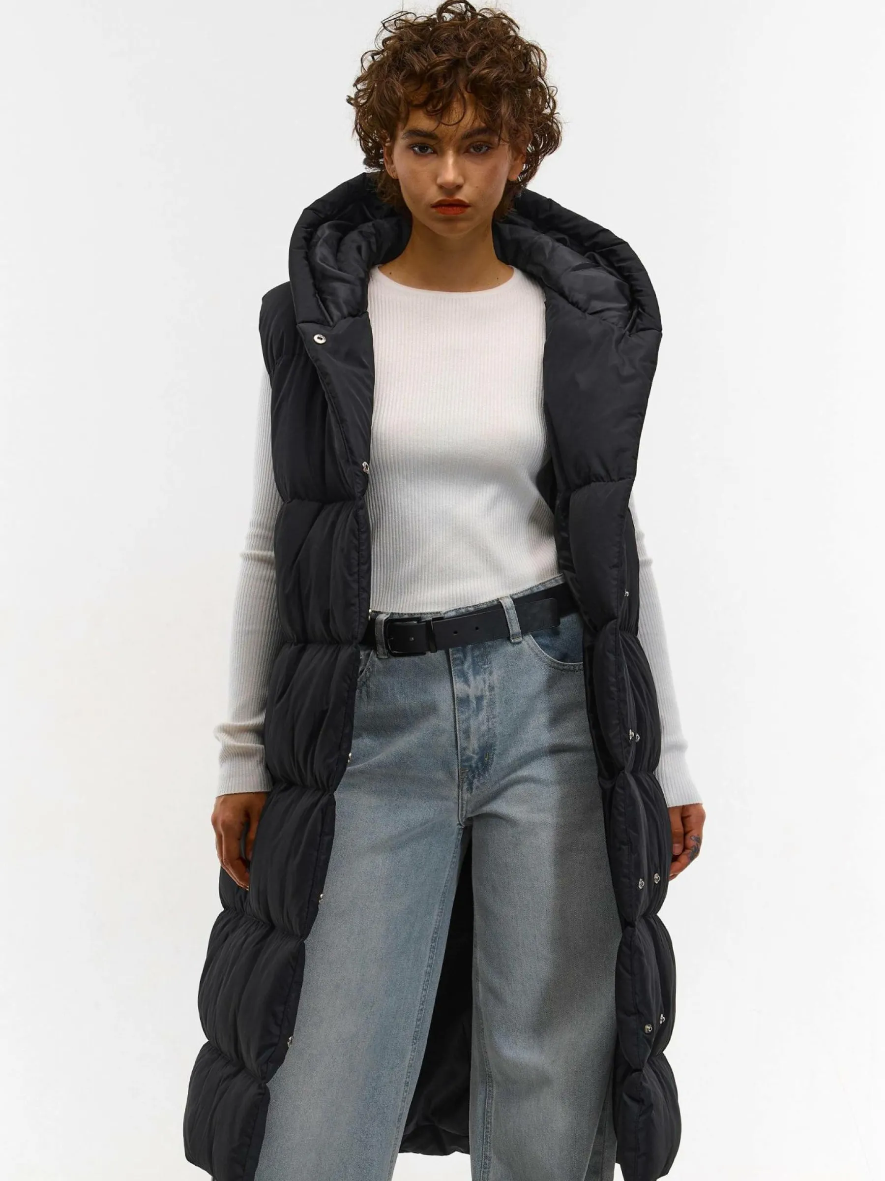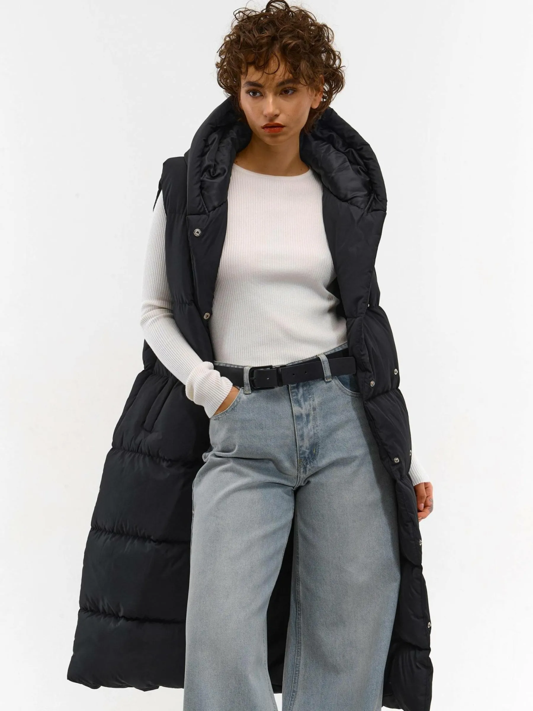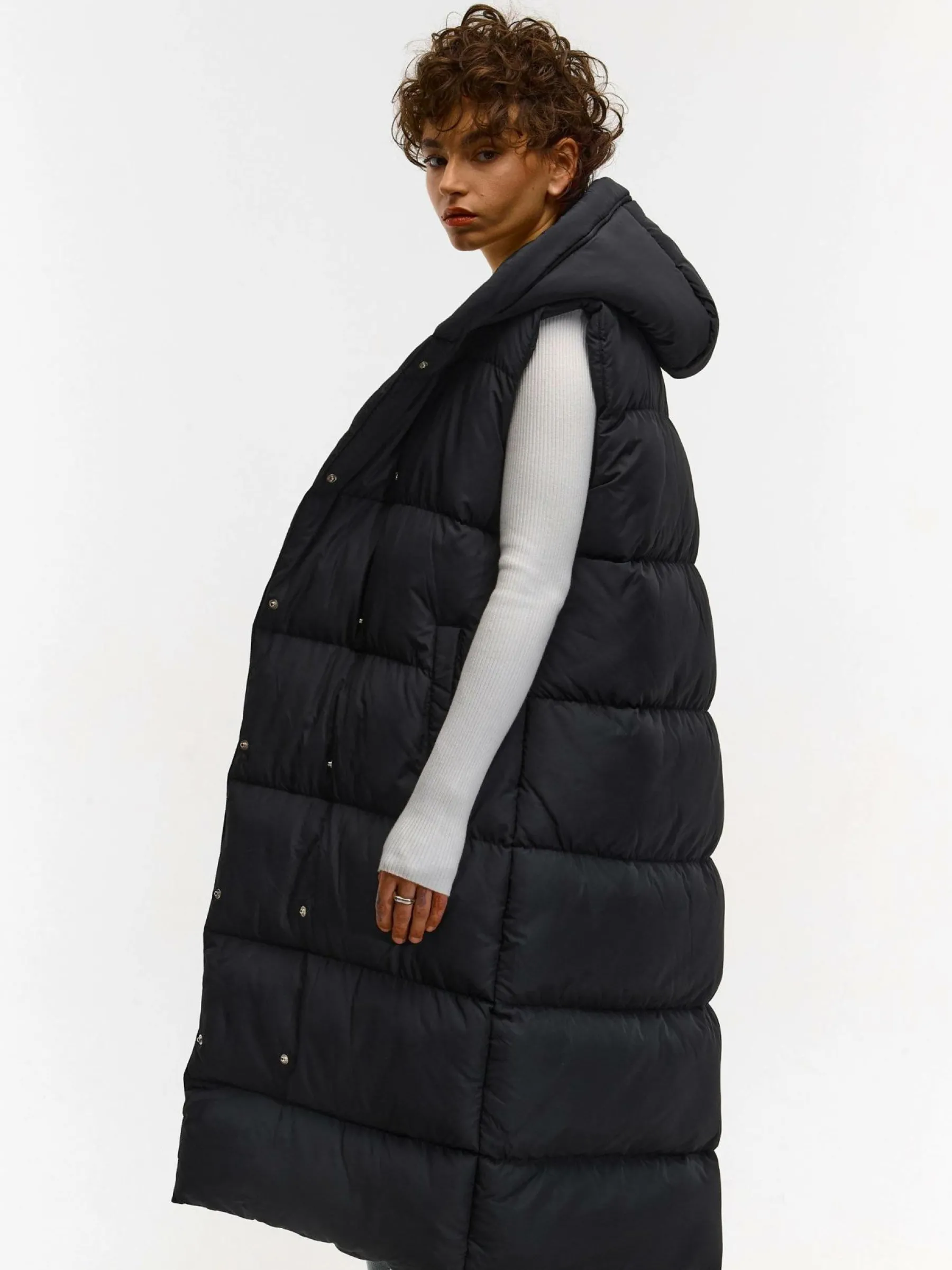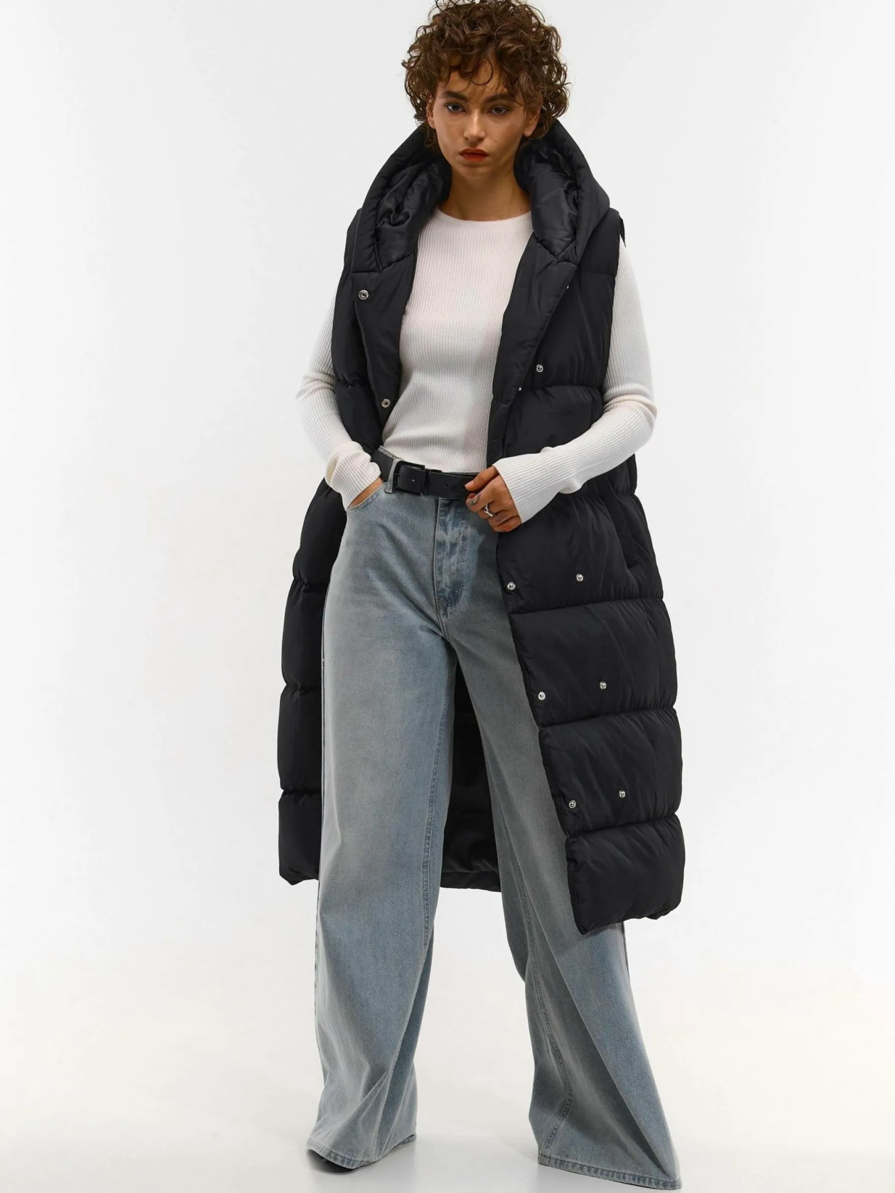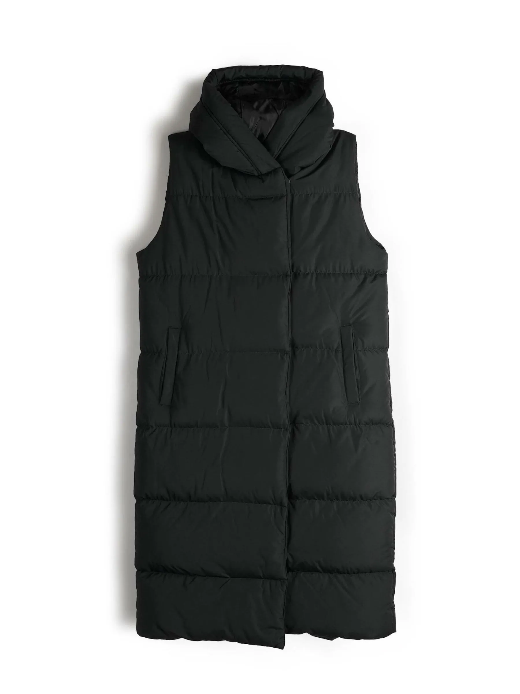 Kolor: czarnyKrój: pikowaneTyp: zimowa/przejściowa kamizelkaRekaw: bez rękawówDługość: dlugiePattern style: pojed…