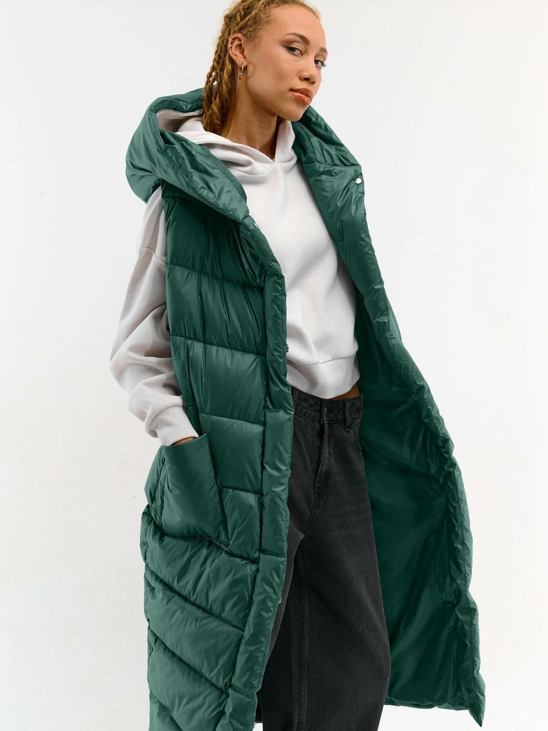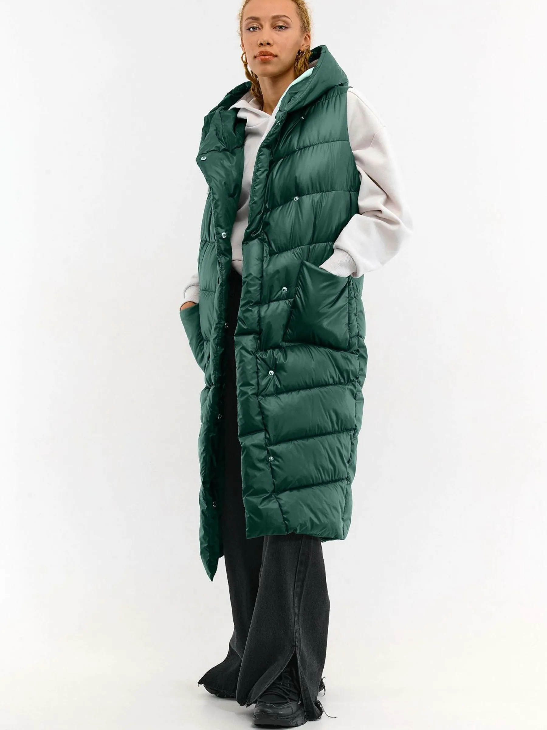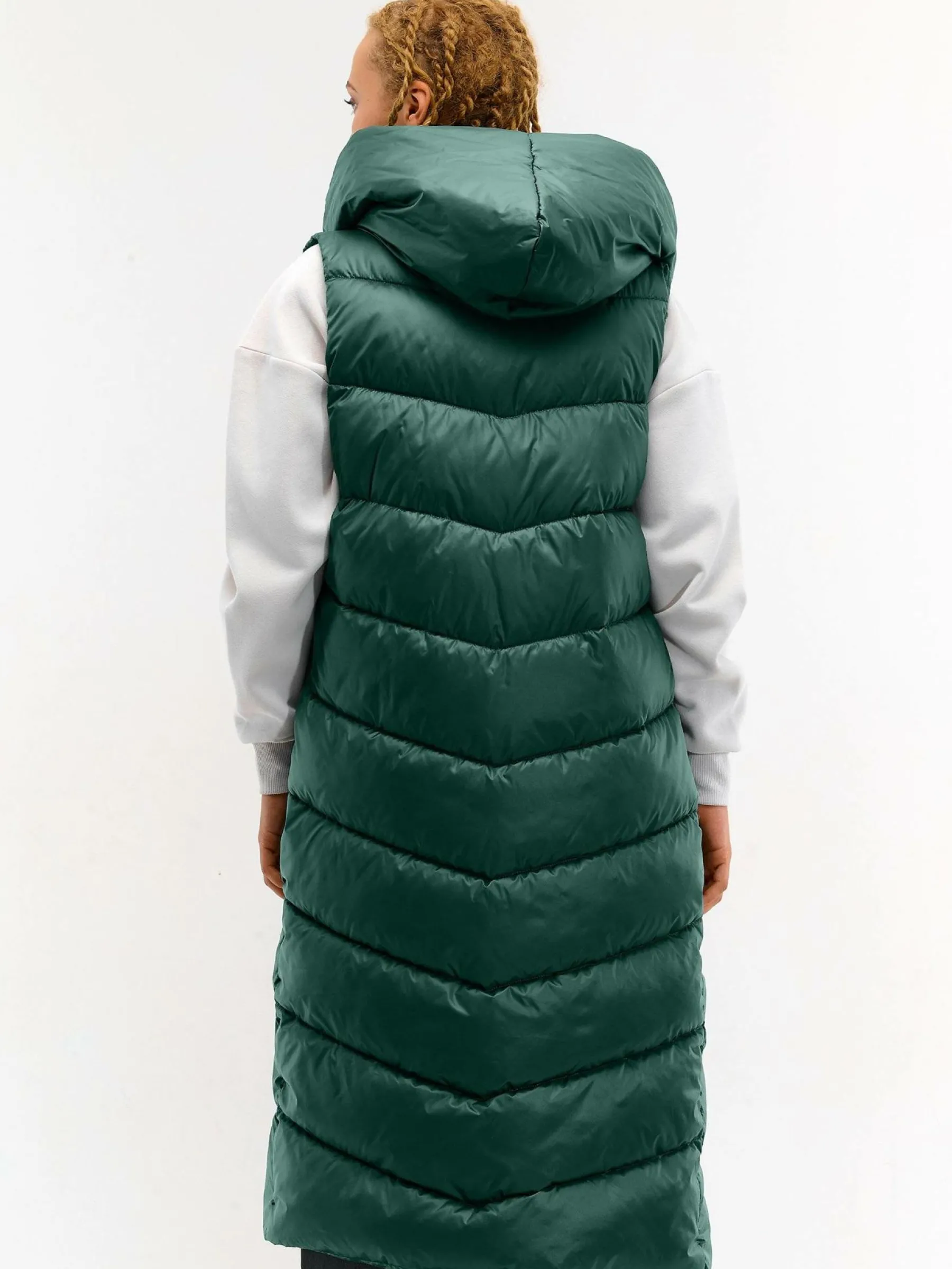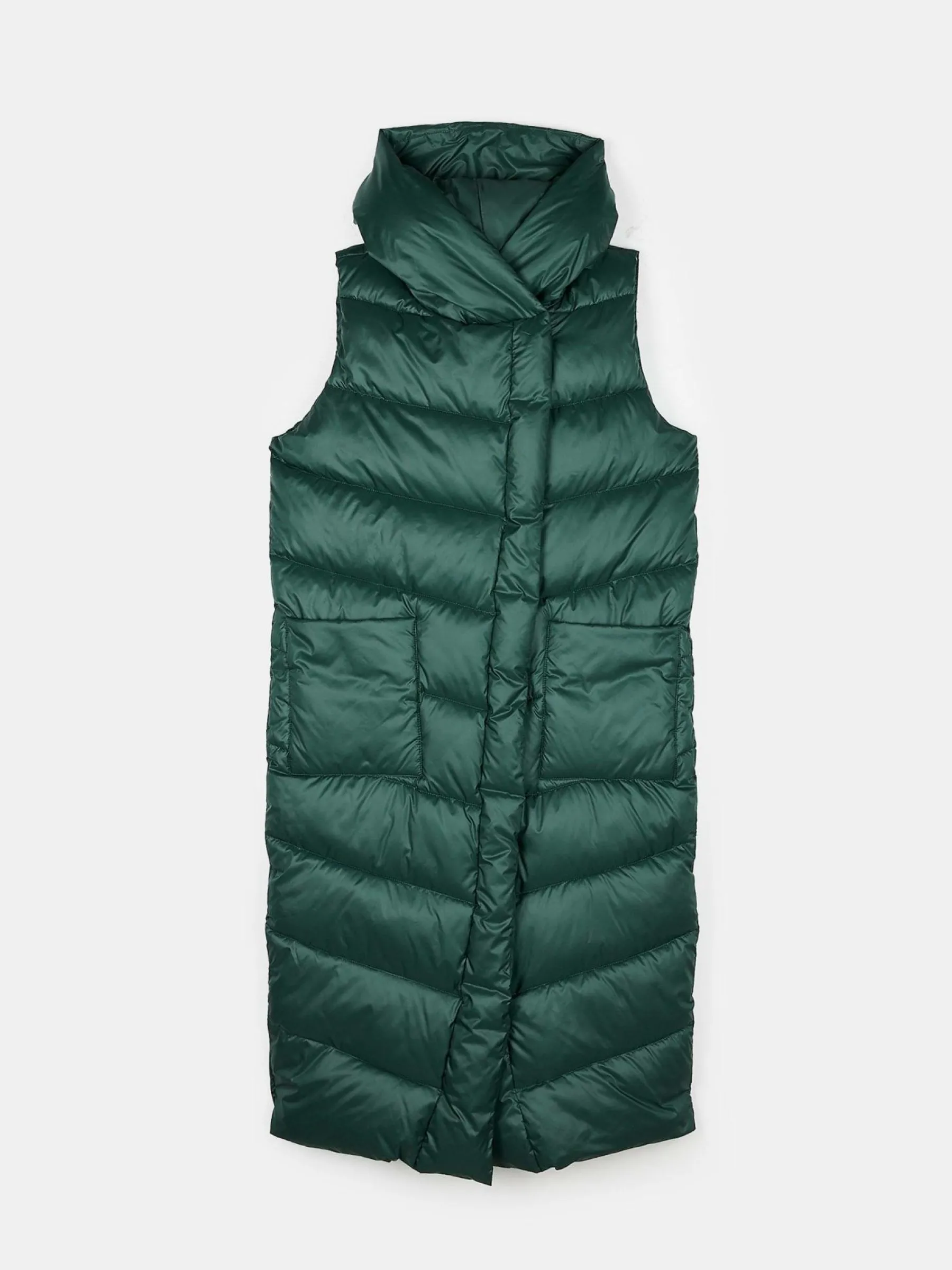 Kolor: zielonyKrój: pikowaneTyp: zimowa/przejściowa kamizelkaRekaw: bez rękawówDługość: dlugiePattern style: poje…