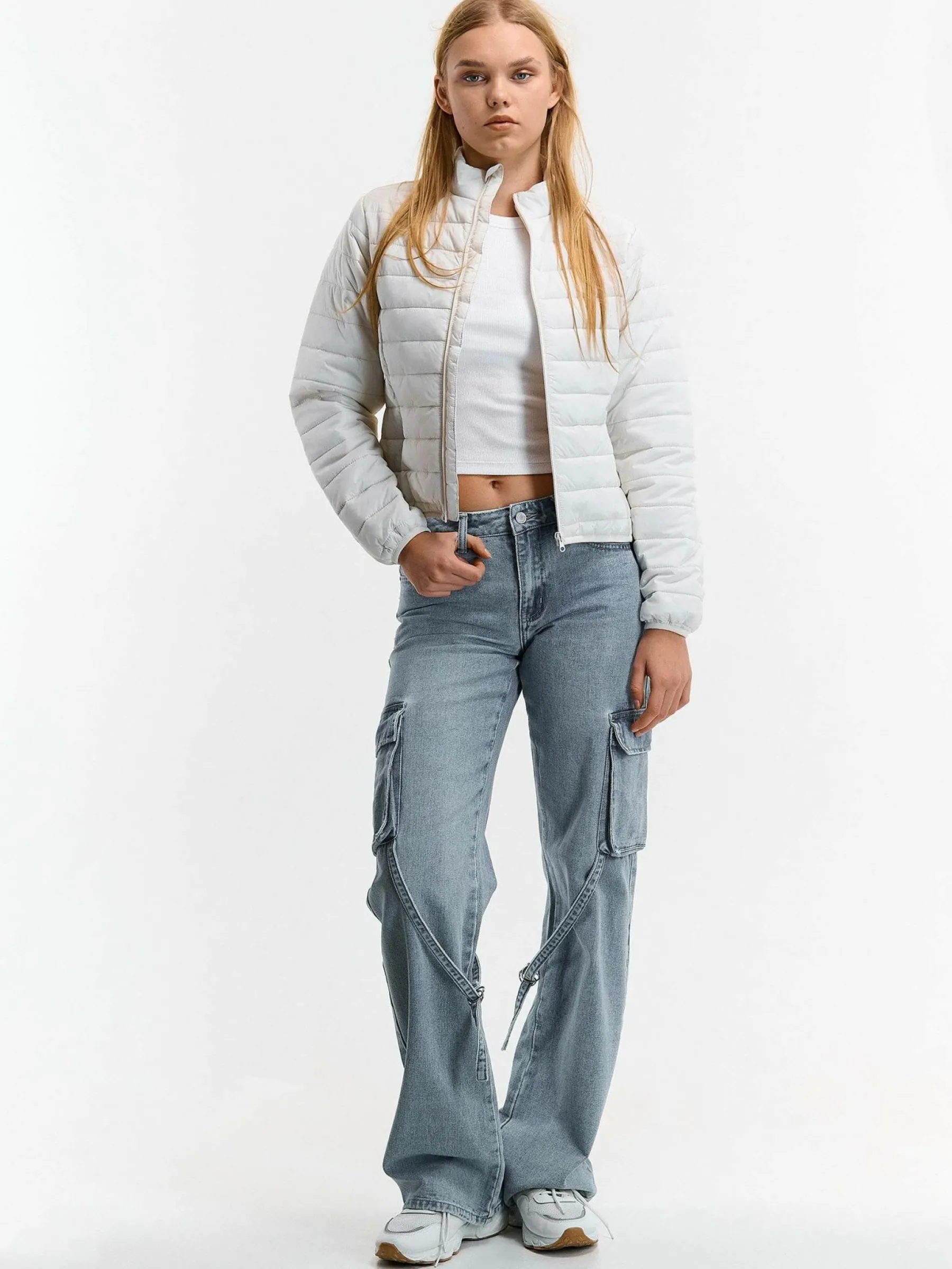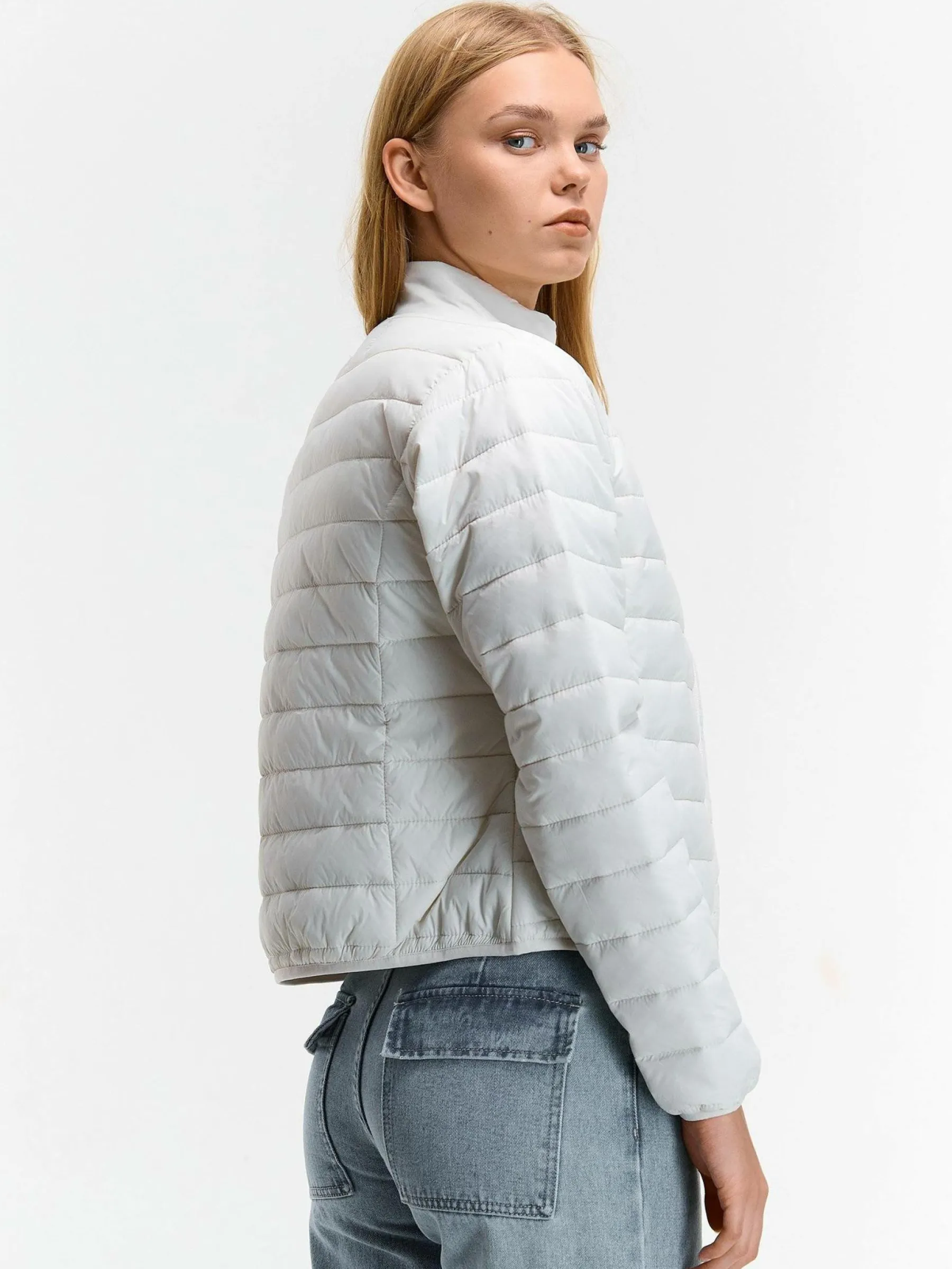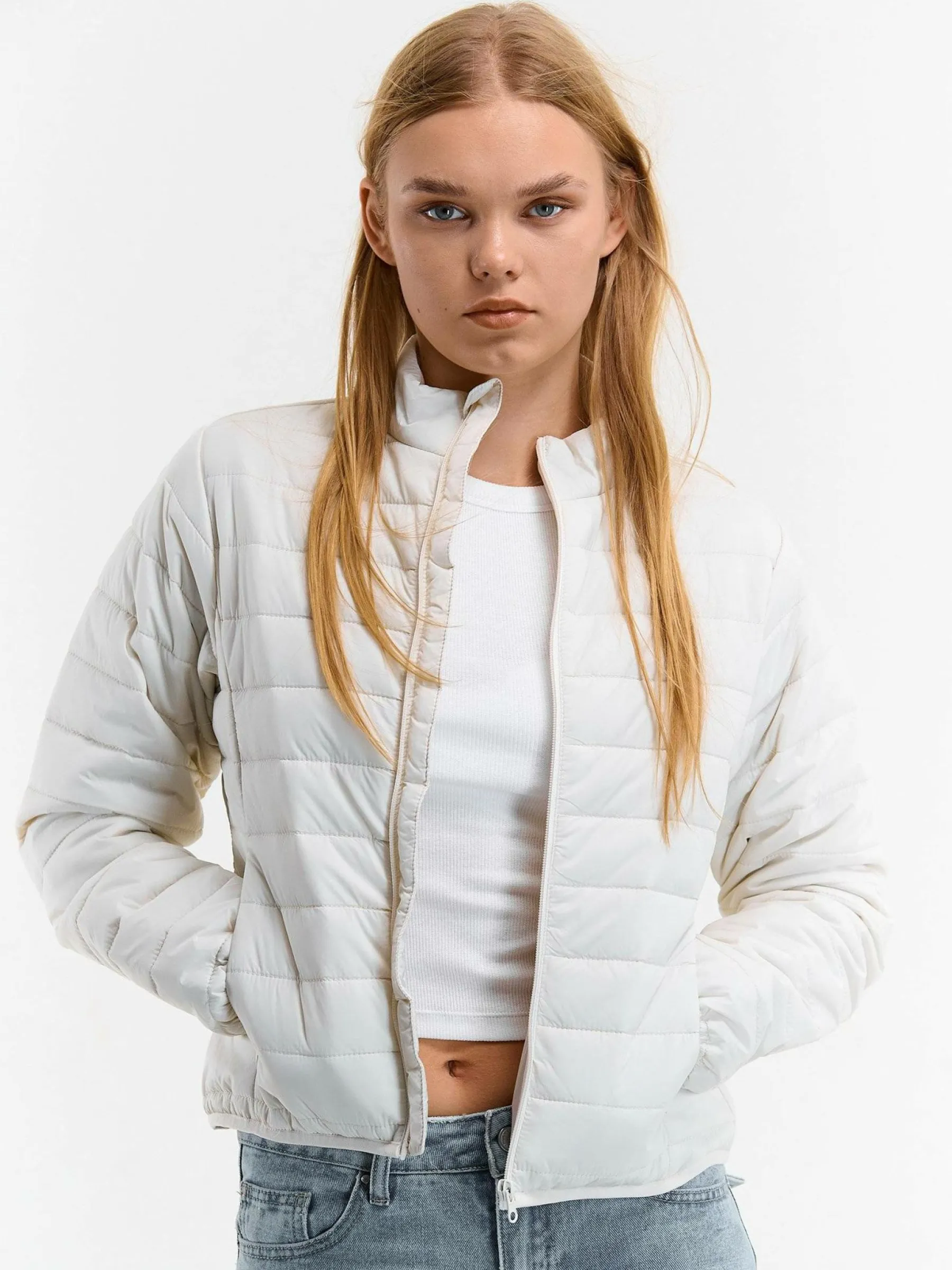 Kolor: białyKrój: pikowaneTyp: kurtka przejściowaRekaw: długi rękawDługość: krótkiPattern style: pojedynczy kol…
