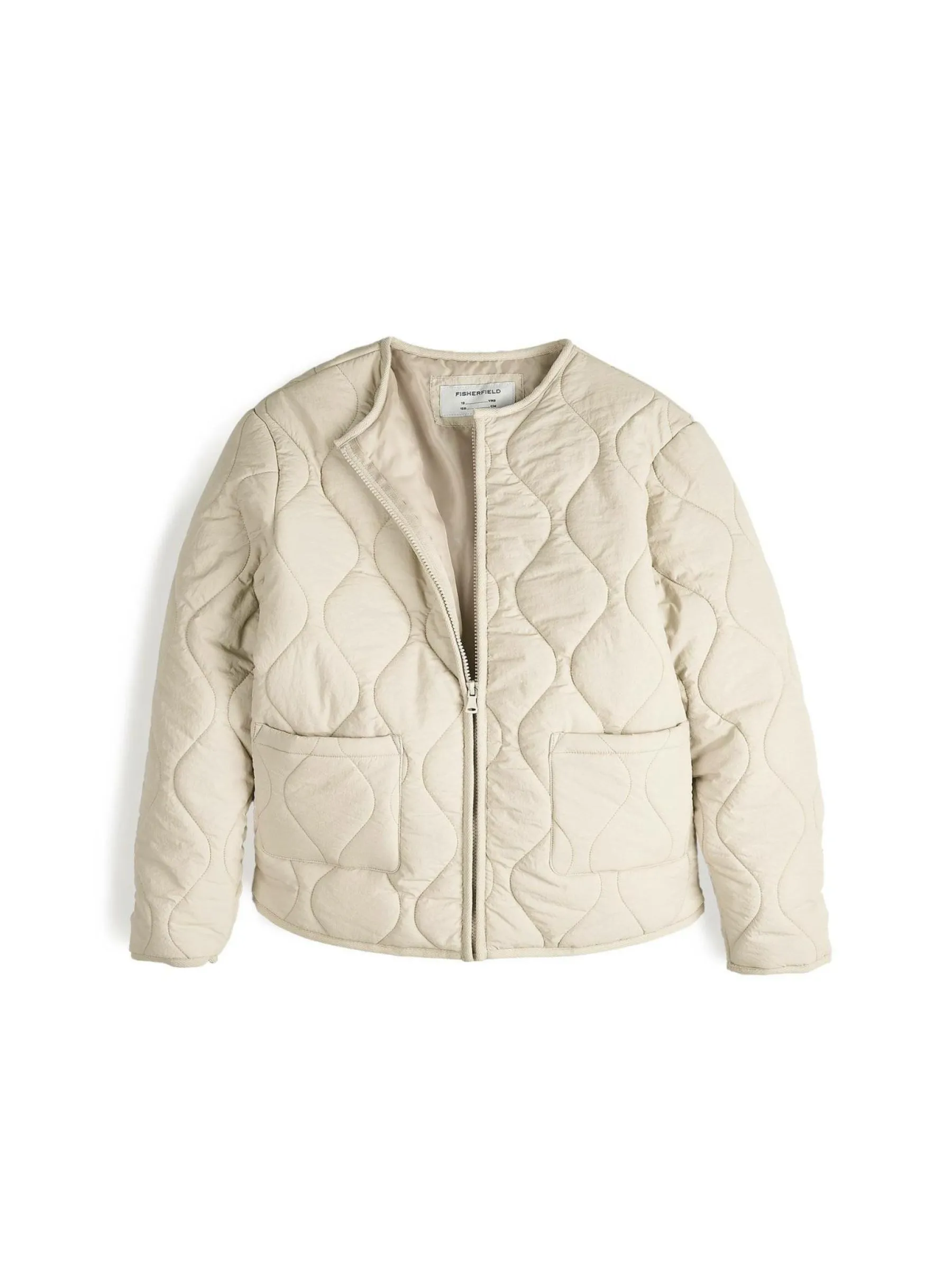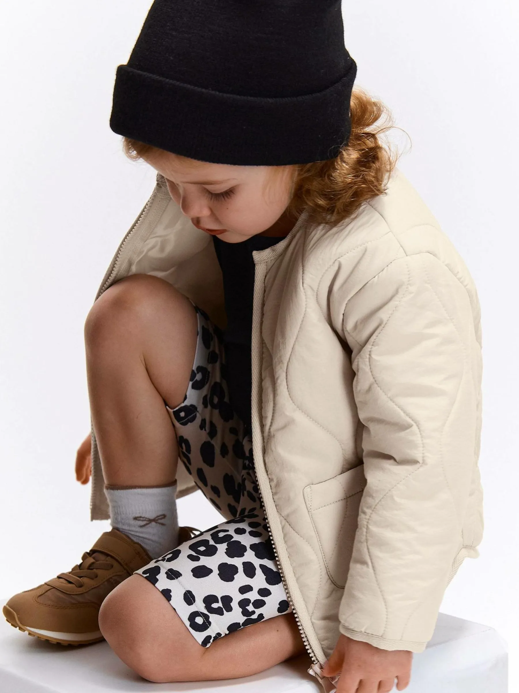 Kolor: beżowyKrój: pikowaneTyp: kurtka przejściowaRekaw: długi rękawDługość: krótkiPattern style: pojedynczy ko…