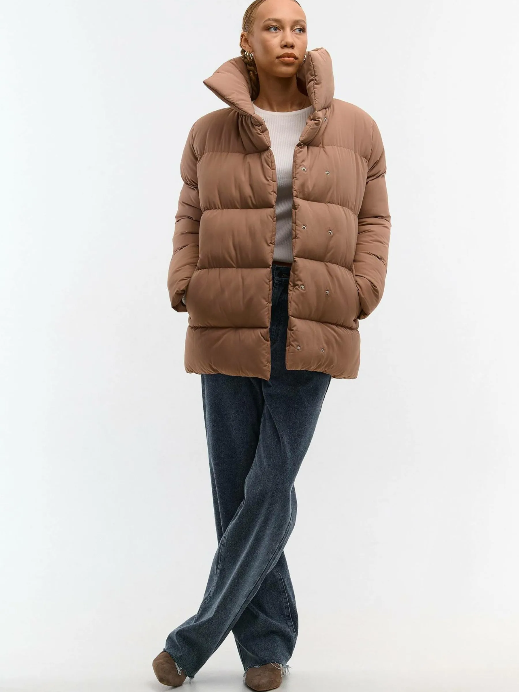 Zdjęcia z modelką mogą nie odpowiadać rzeczywistemu kolorowi produktu.Kolor: brązowyKrój: pikowaneTyp: kurtka zimo…