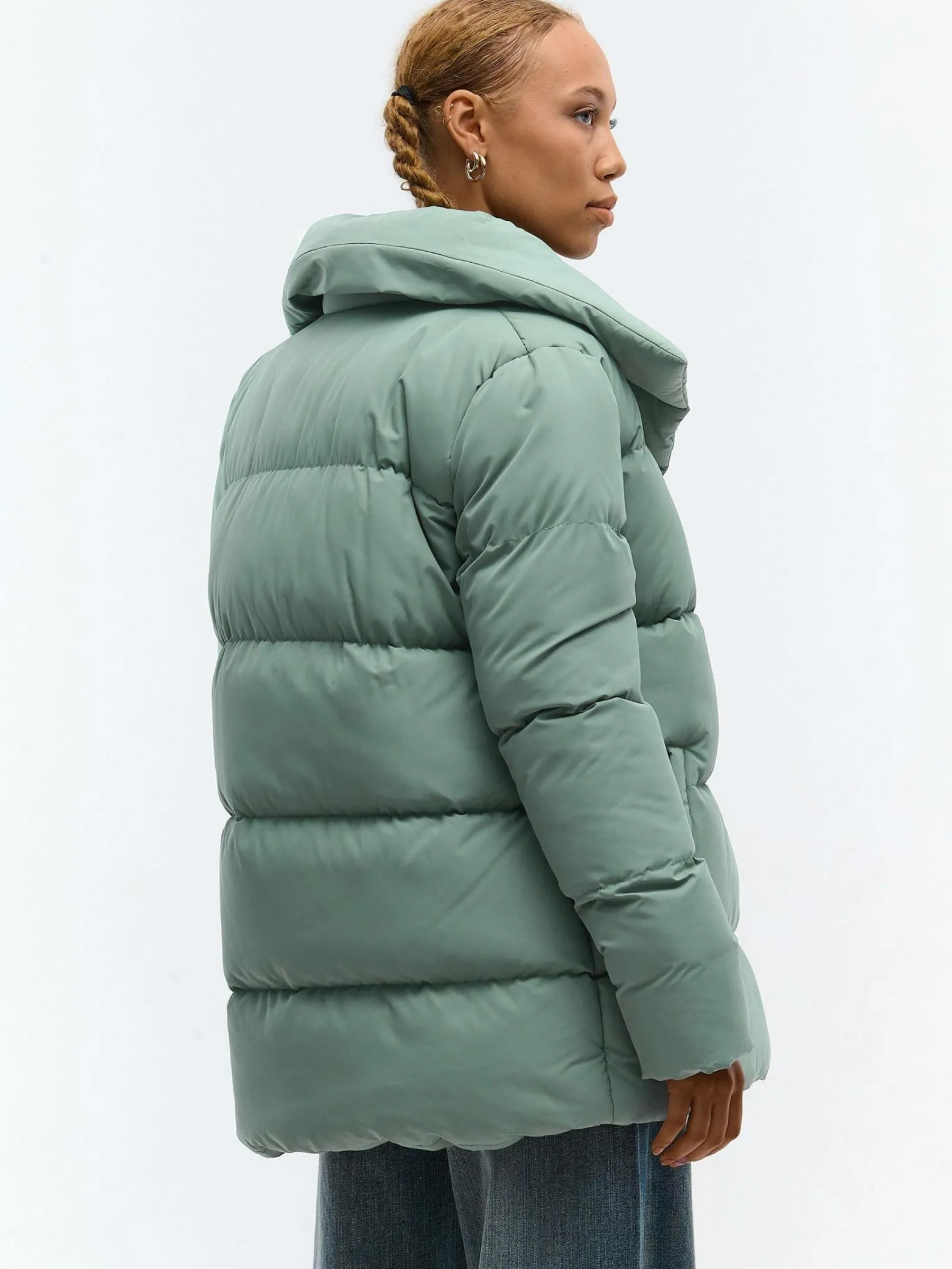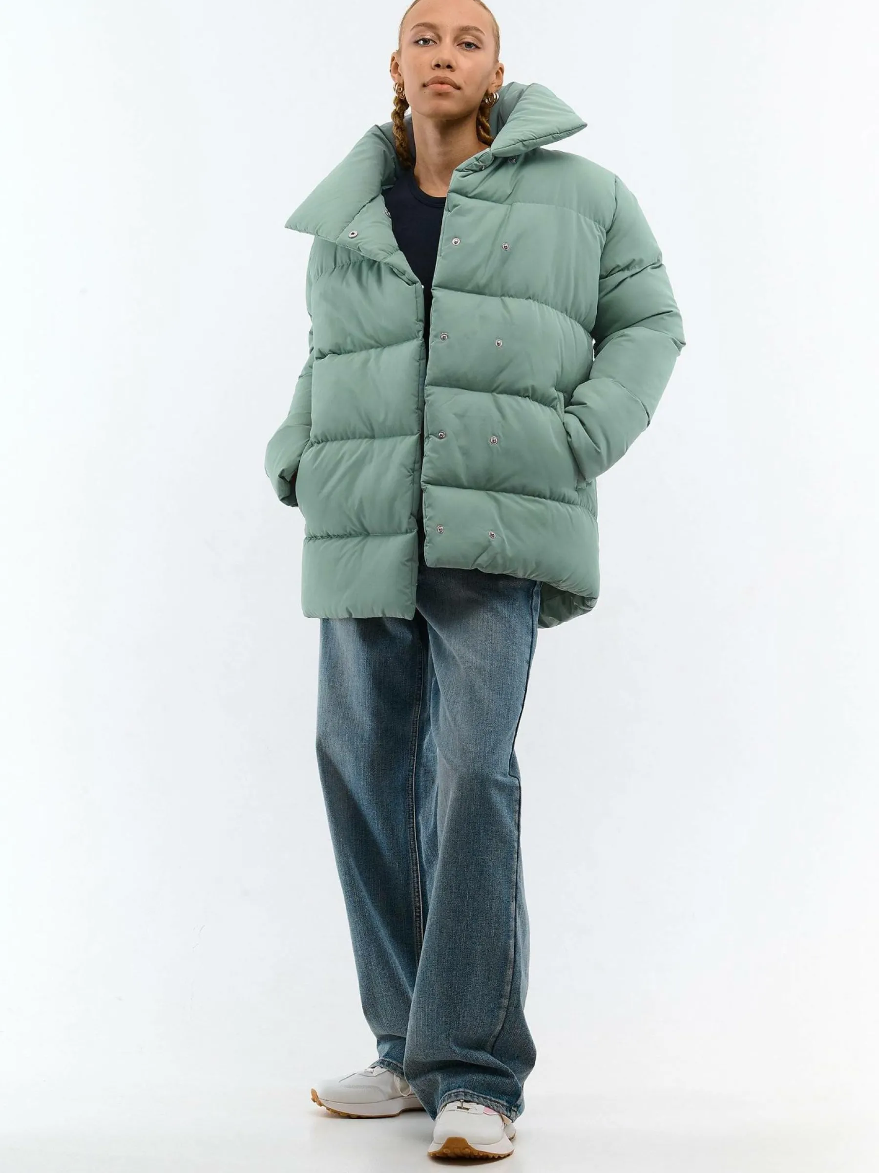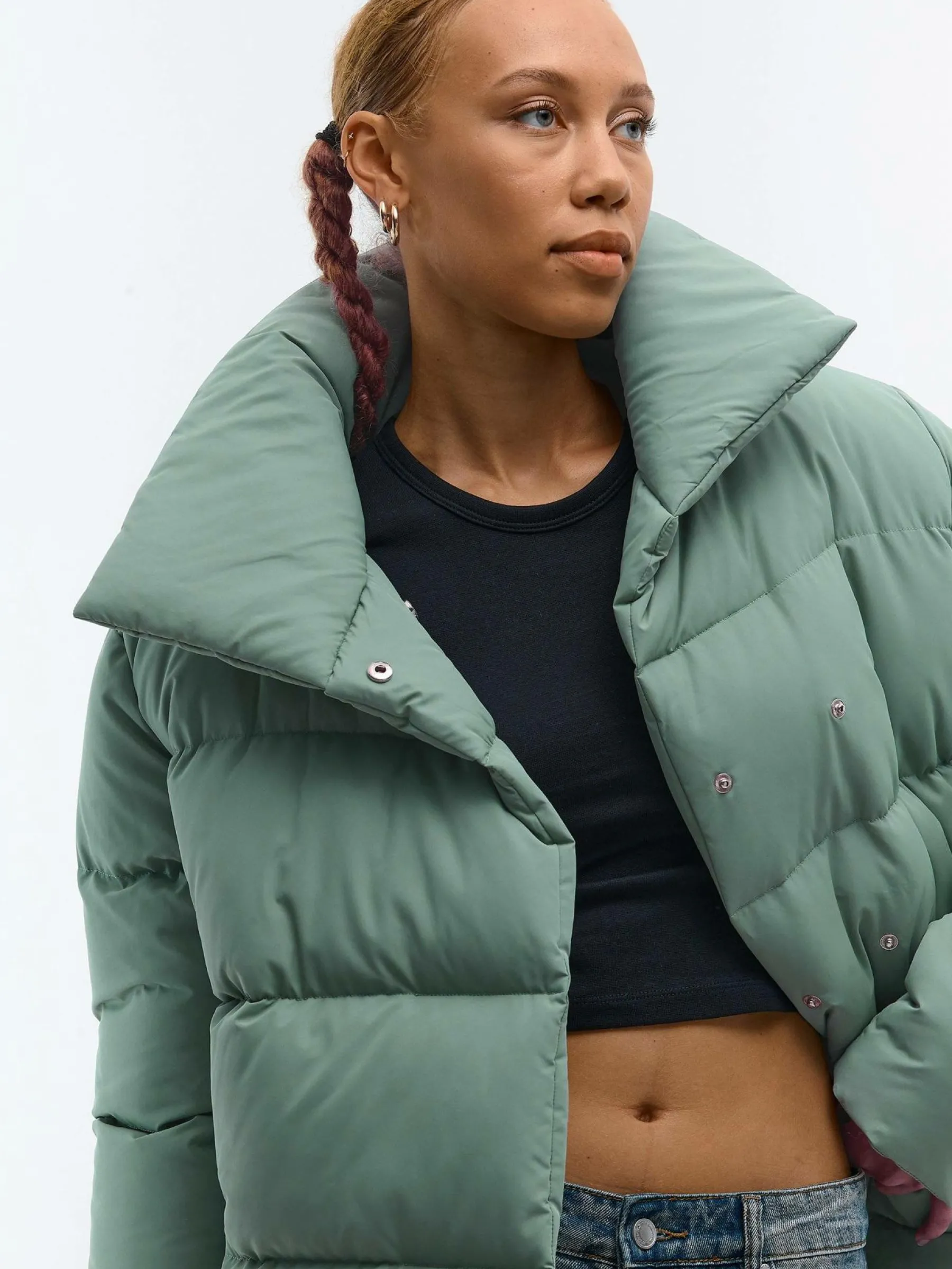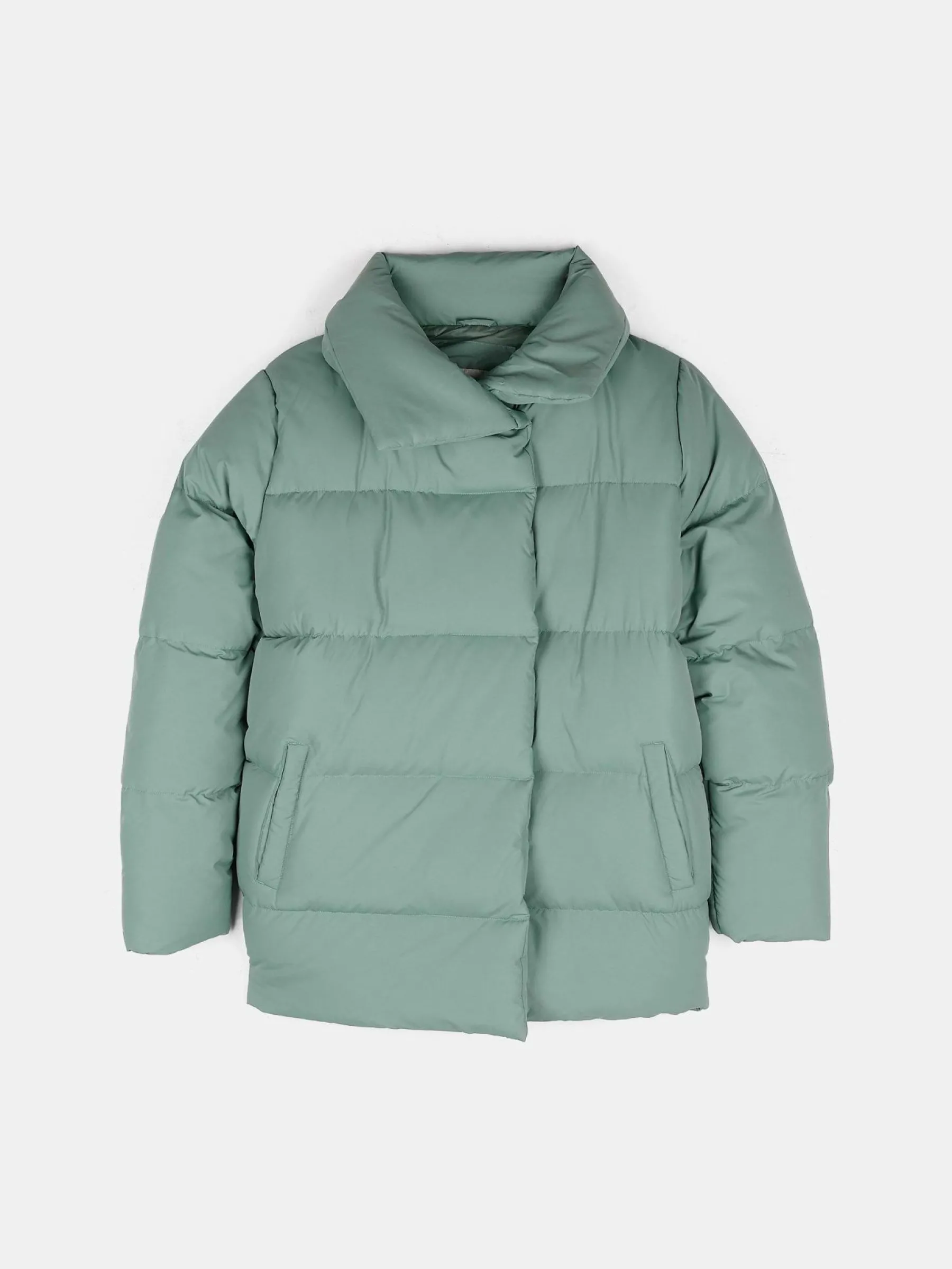 Kolor: zielonyKrój: pikowaneTyp: kurtka zimowaRekaw: długi rękawDługość: krótkiPattern style: pojedynczy kolorDet…