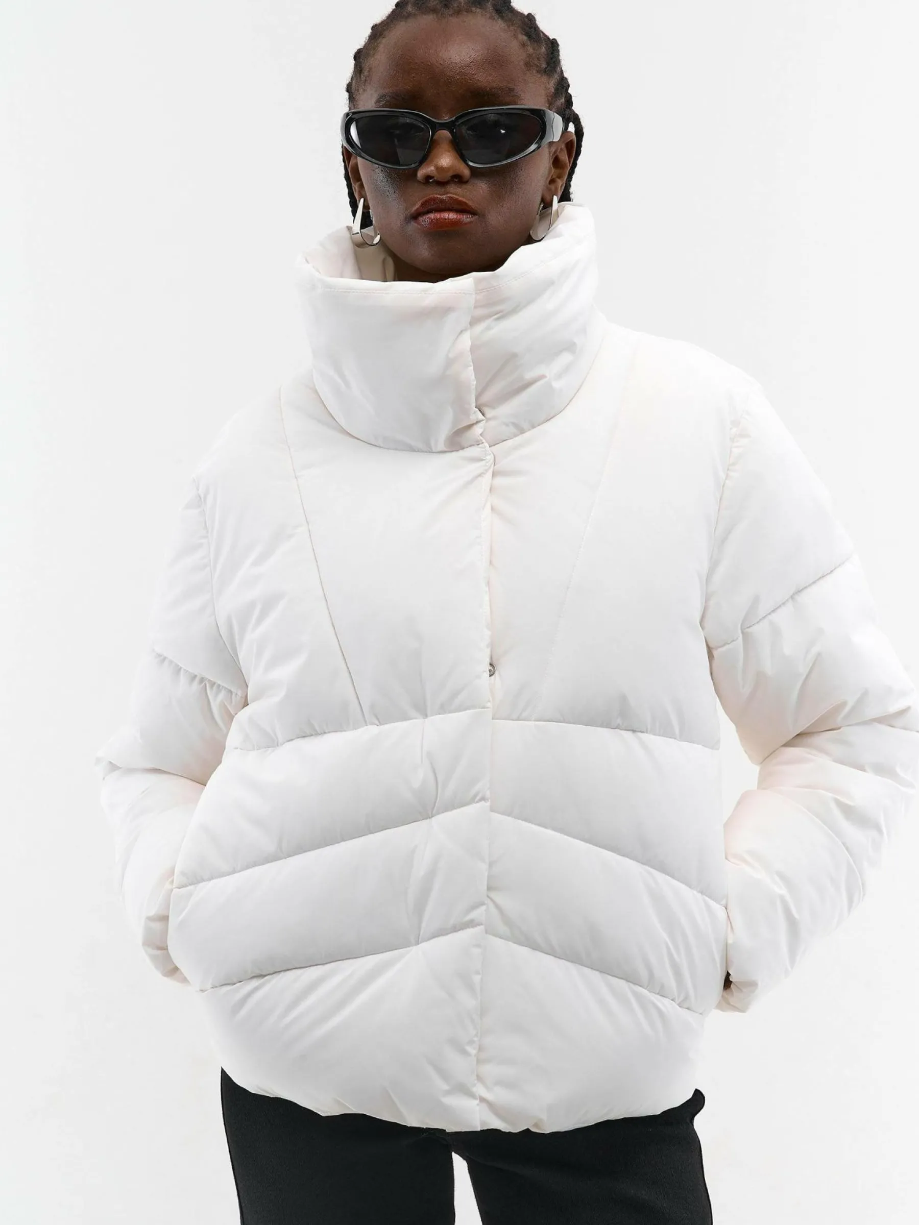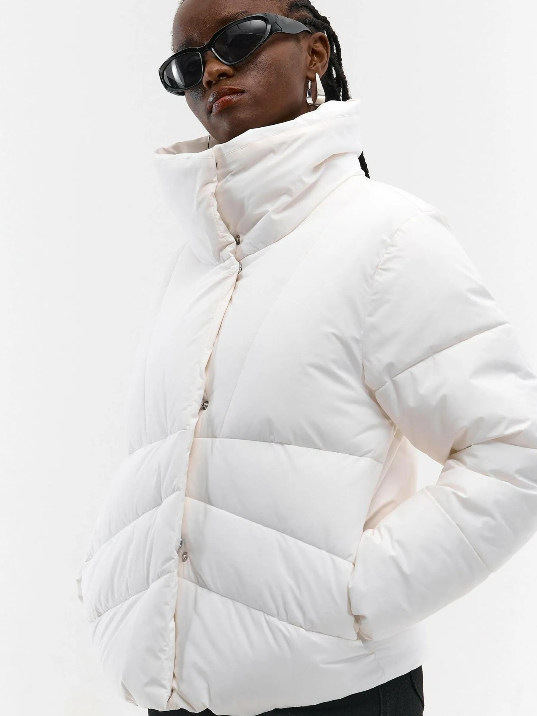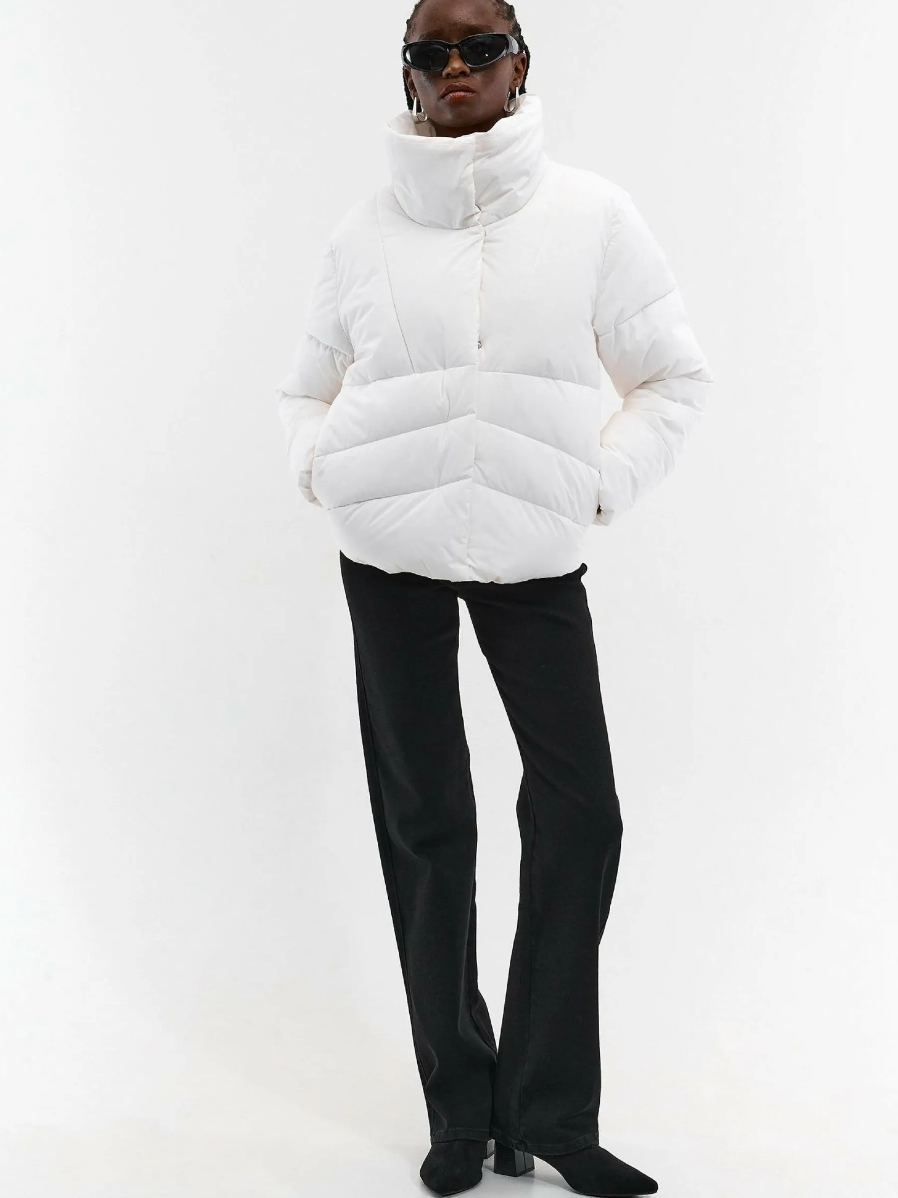 Kolor: białyKrój: bomber, pikowaneTyp: kurtka zimowaRekaw: długi rękawDługość: krótkiPattern style: pojedynczy k…