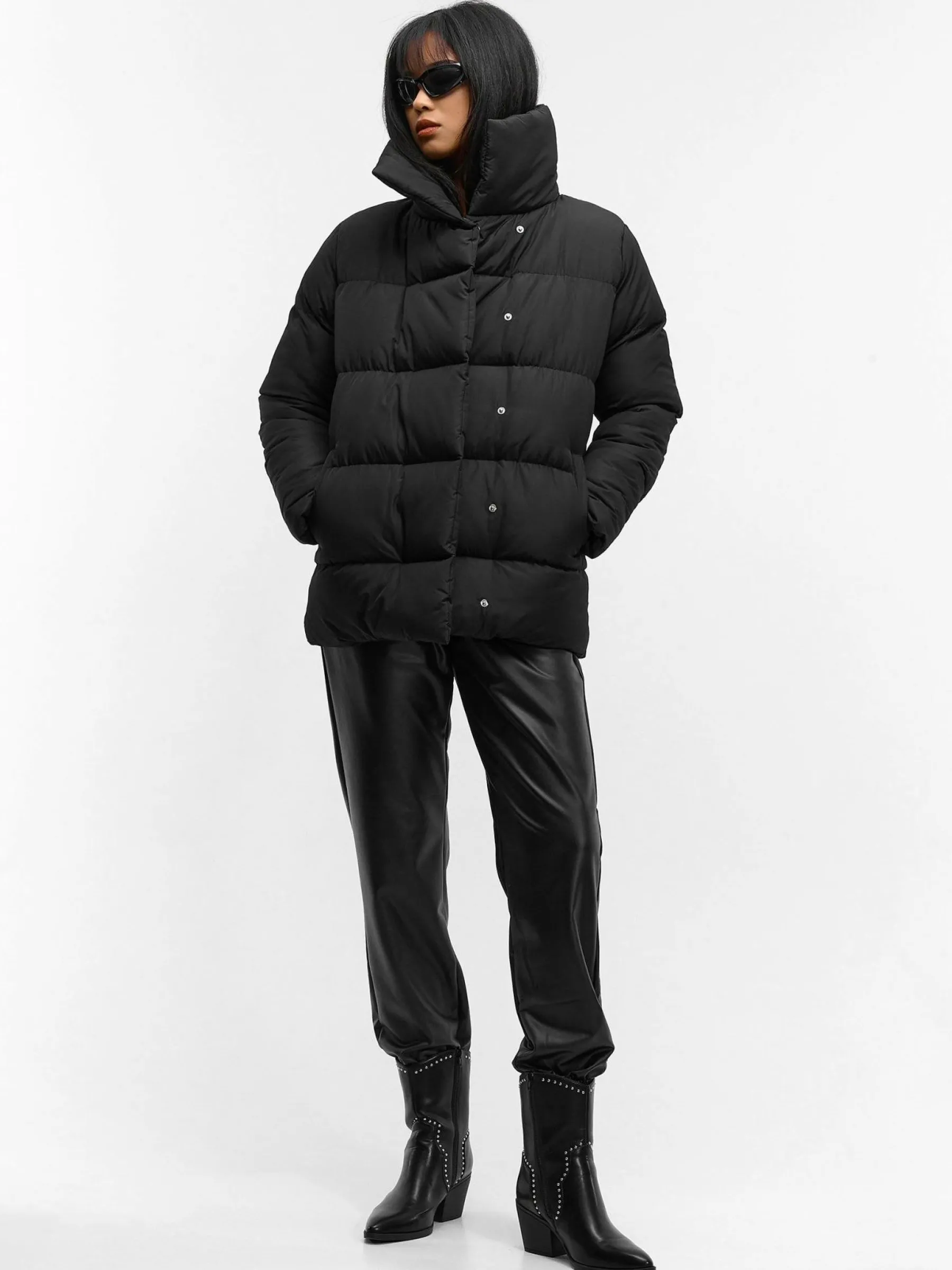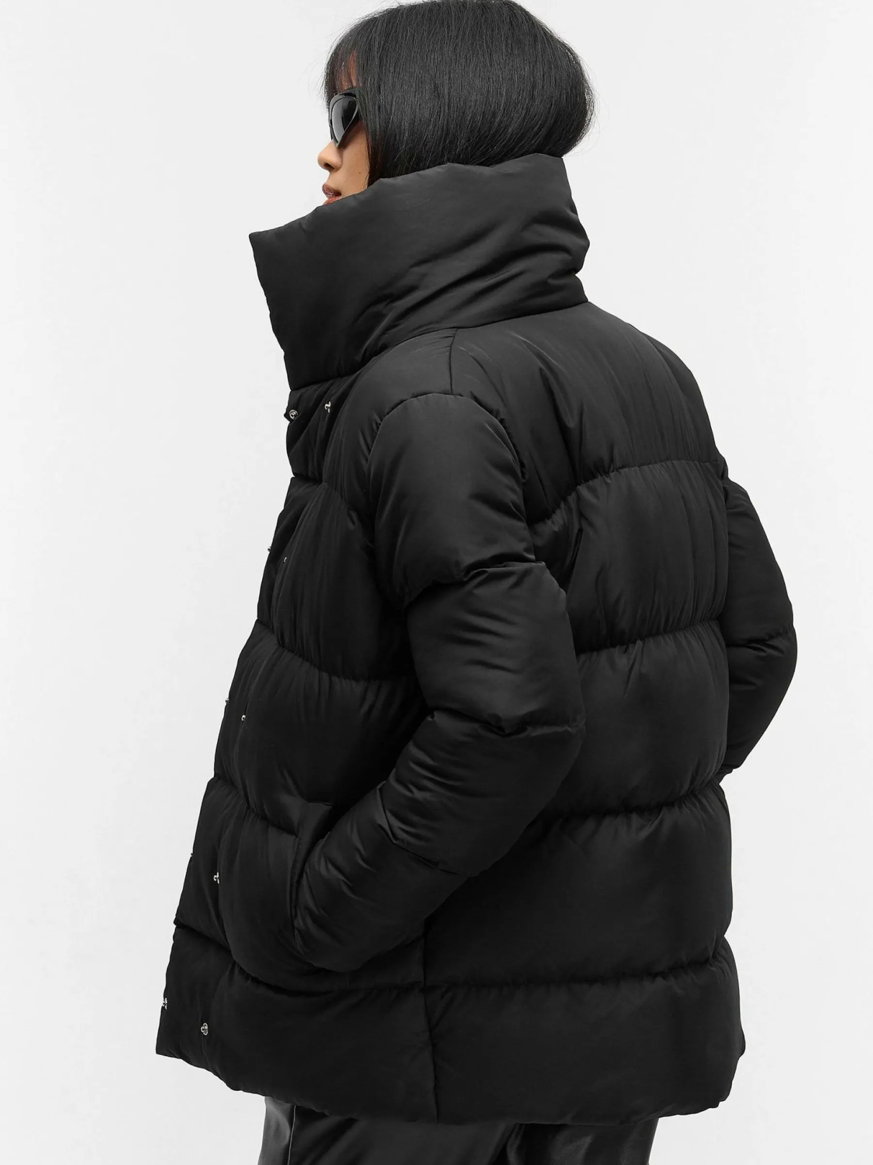 Kolor: czarnyKrój: pikowaneTyp: kurtka zimowaRekaw: długi rękawDługość: krótkiPattern style: pojedynczy kolorDeta…