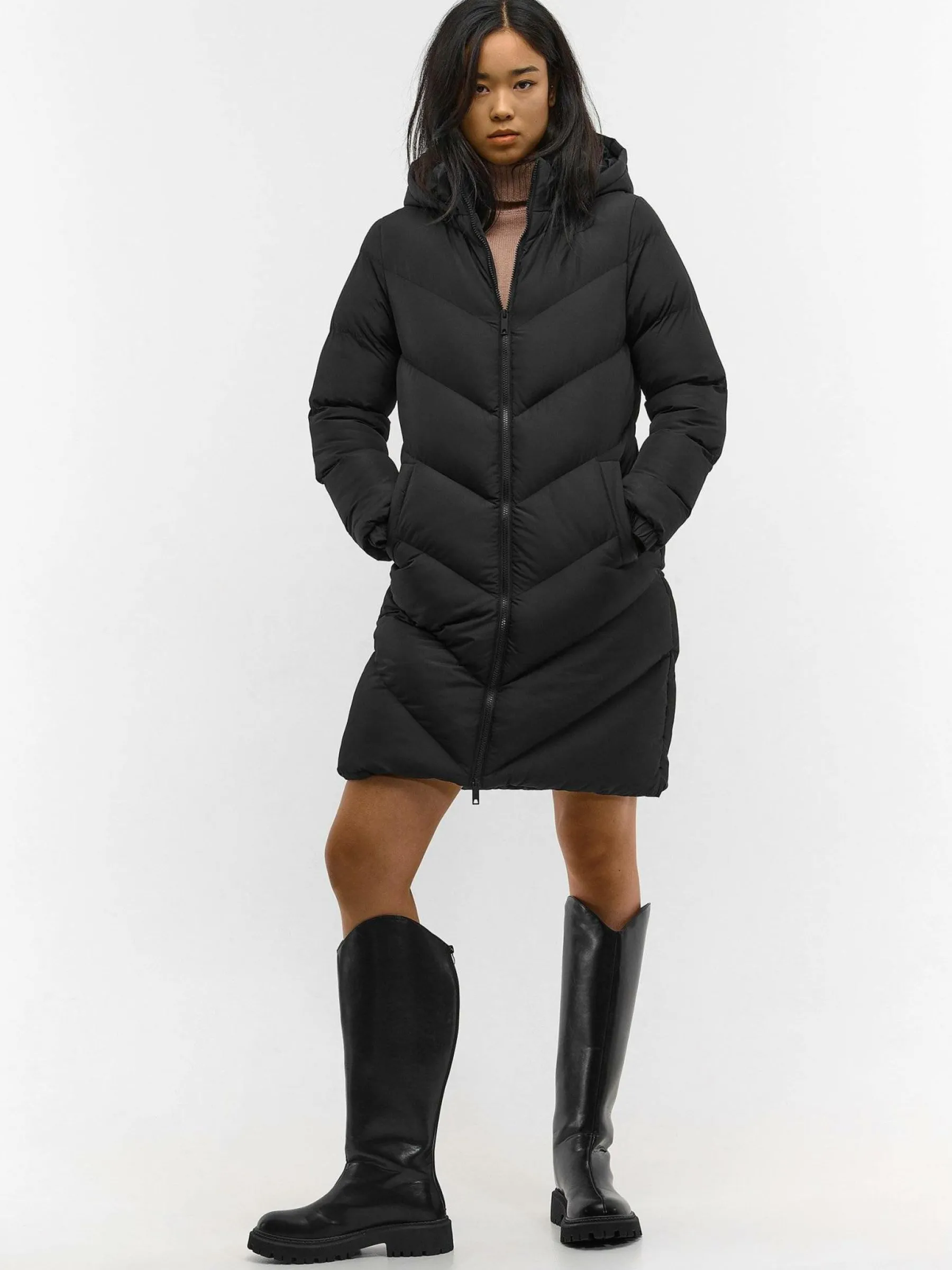 Kolor: czarnyKrój: pikowaneTyp: kurtka zimowaRekaw: długi rękawDługość: dlugiePattern style: pojedynczy kolorDetal…