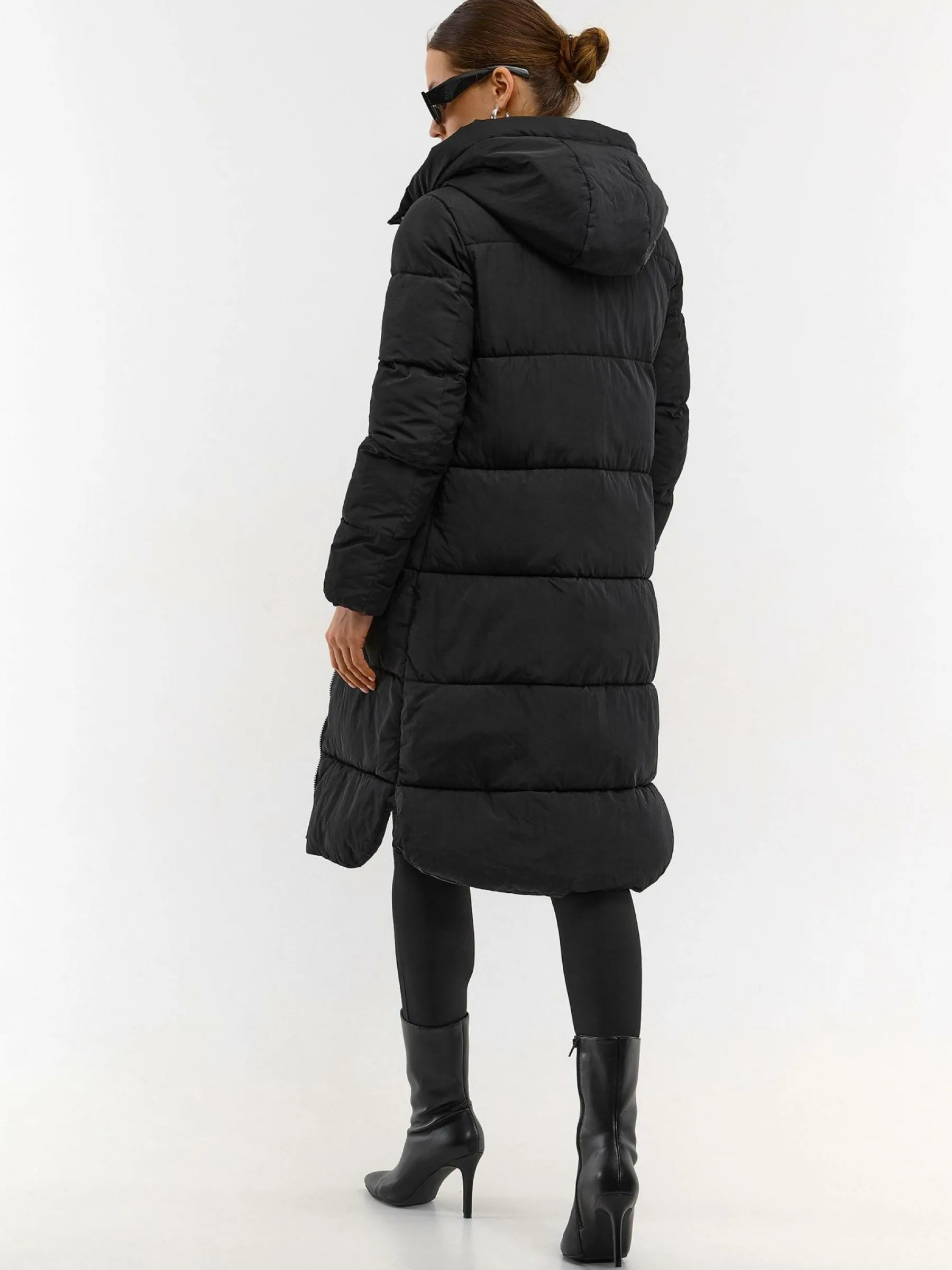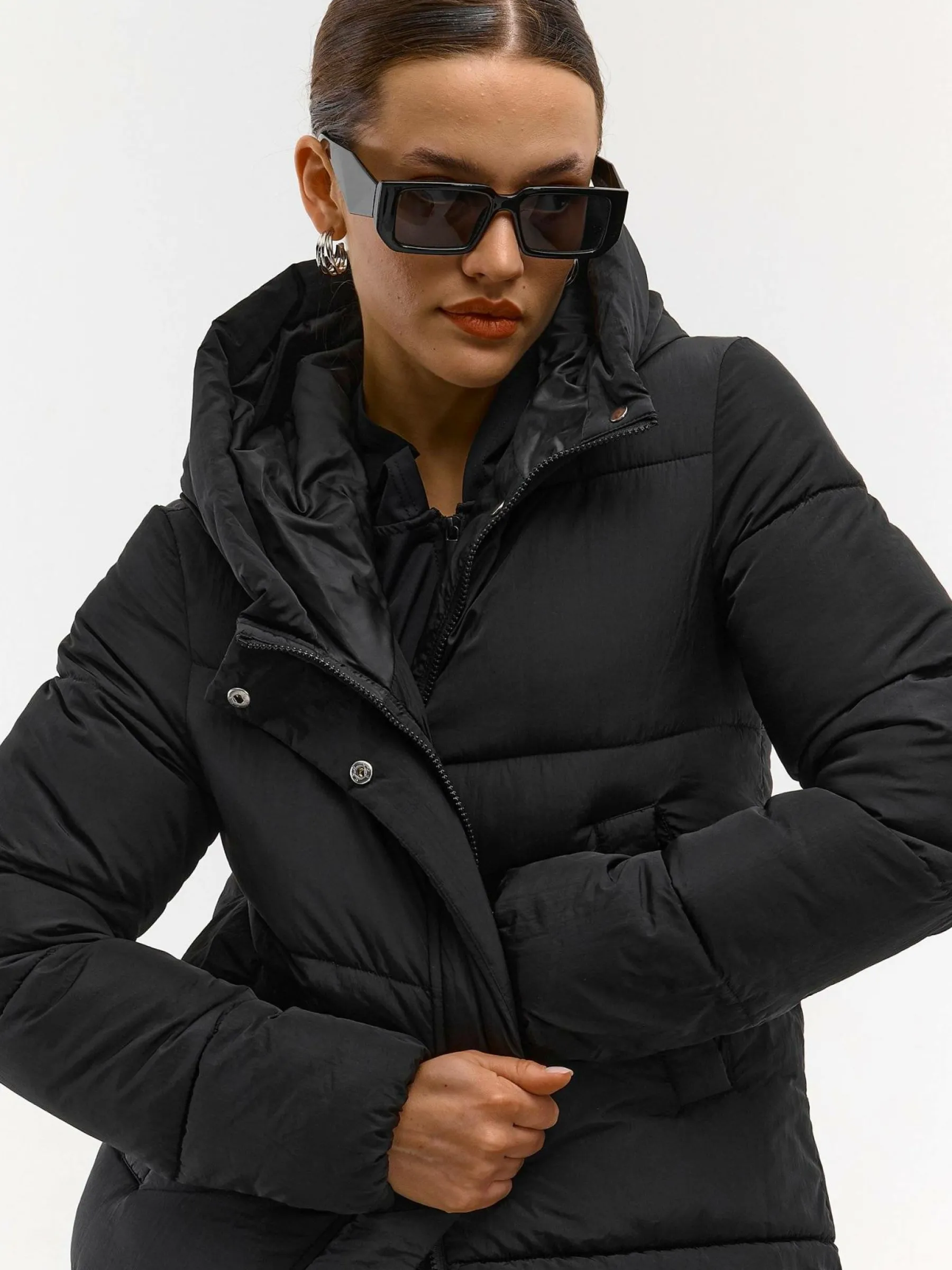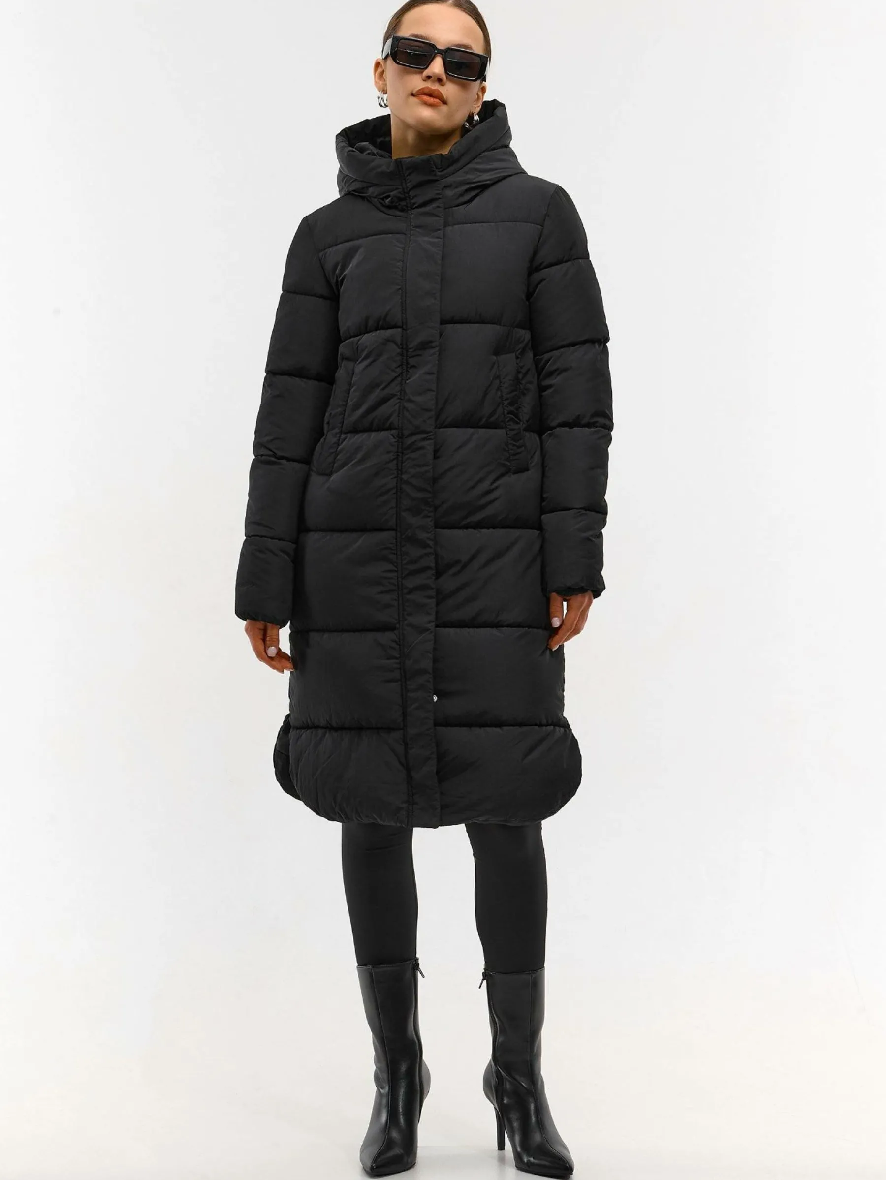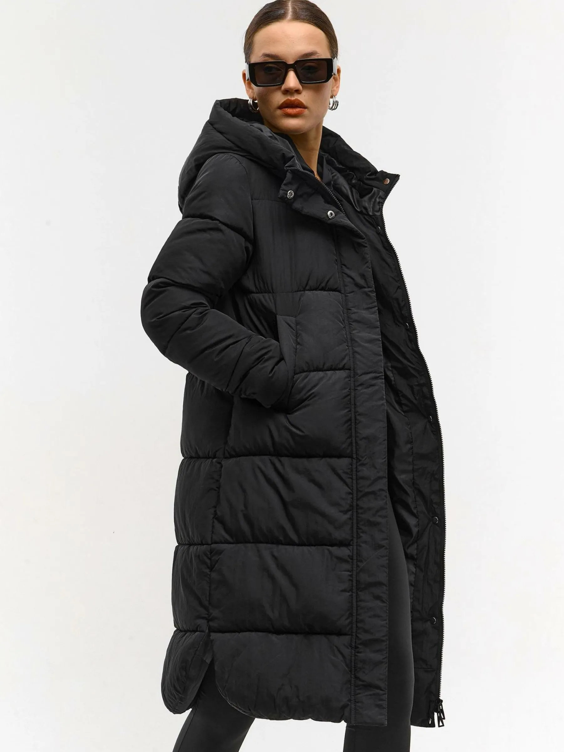 Kolor: czarnyKrój: pikowaneTyp: kurtka zimowaRekaw: długi rękawDługość: dlugiePattern style: pojedynczy kolorDetal…