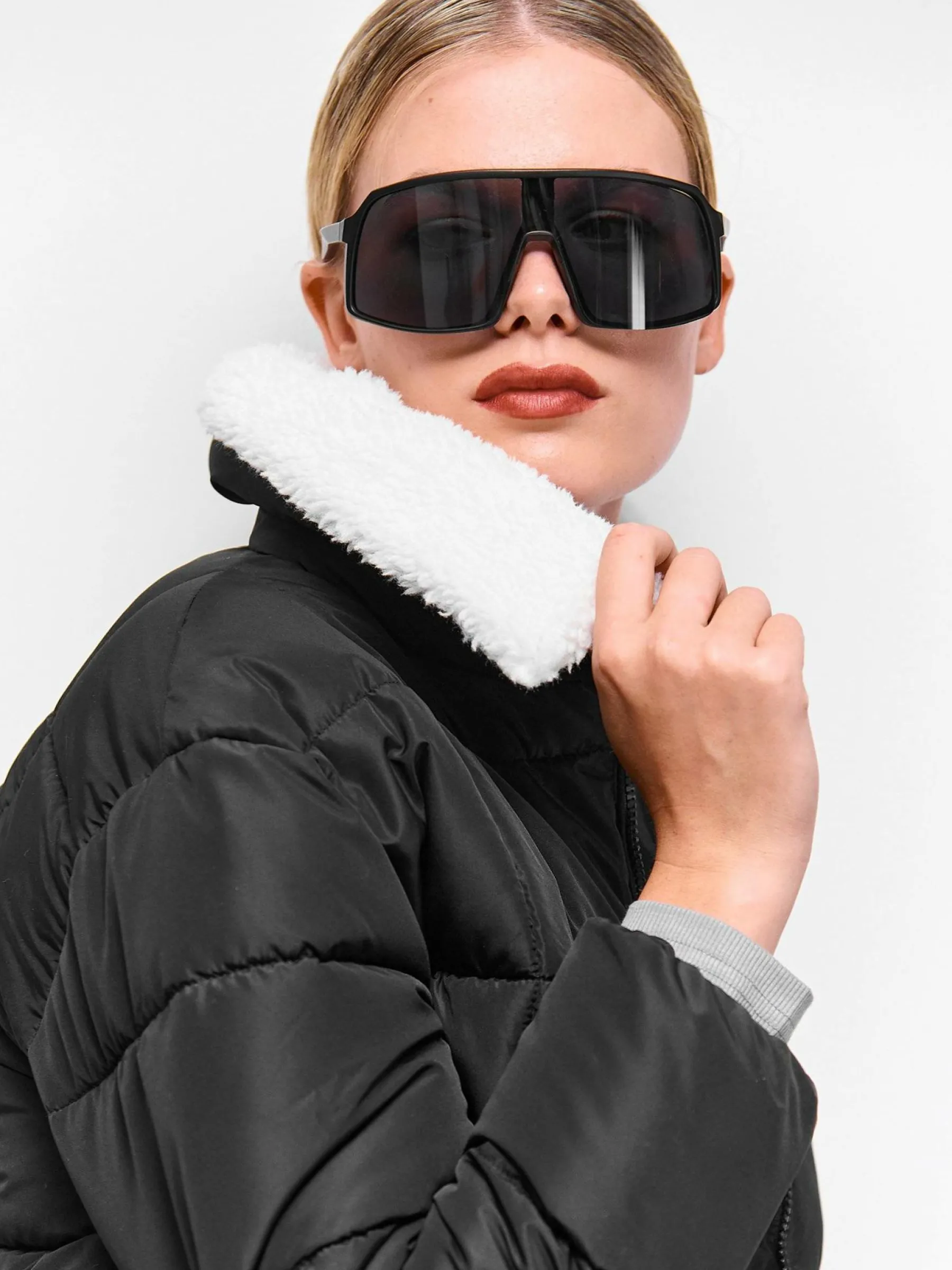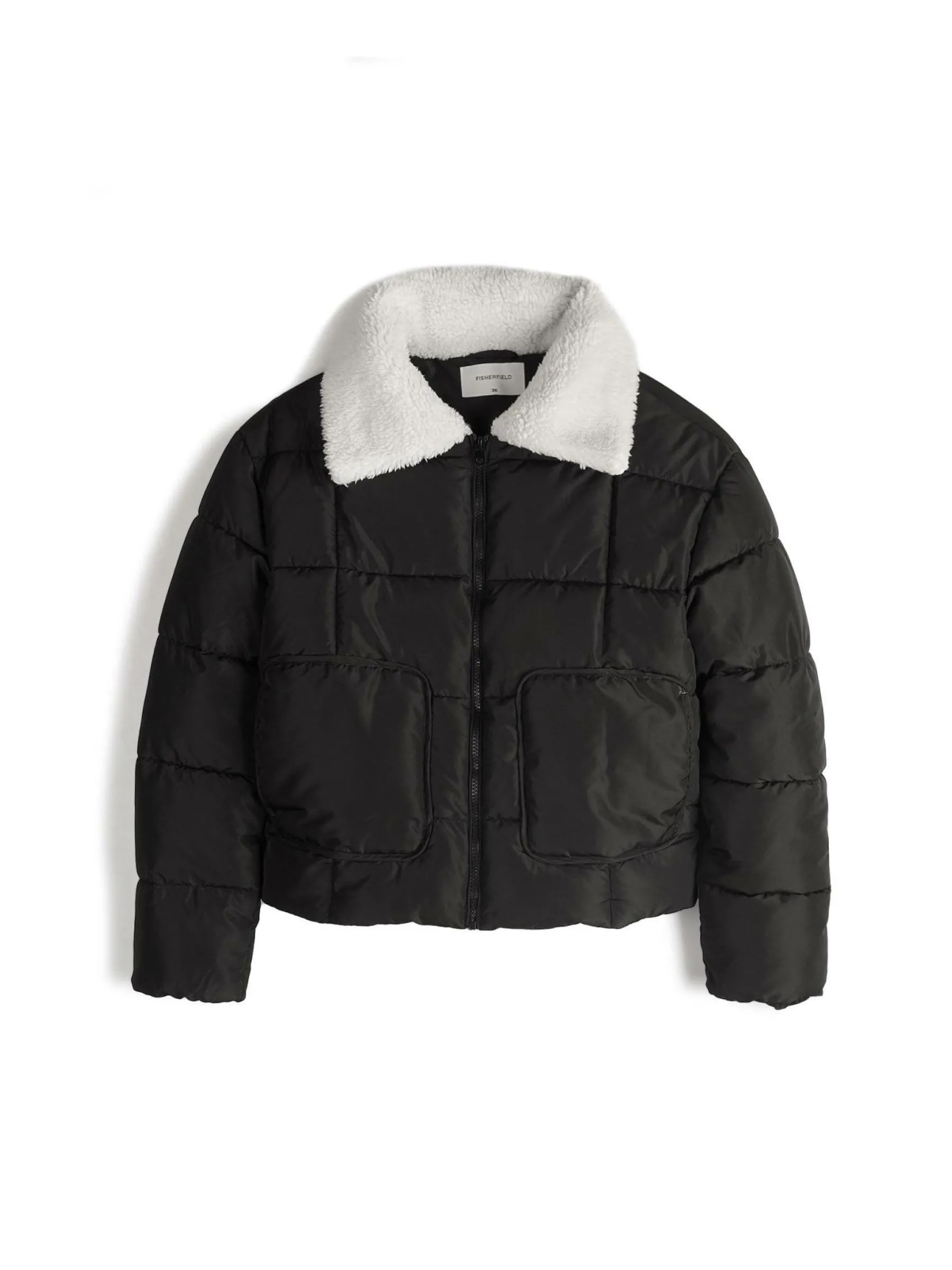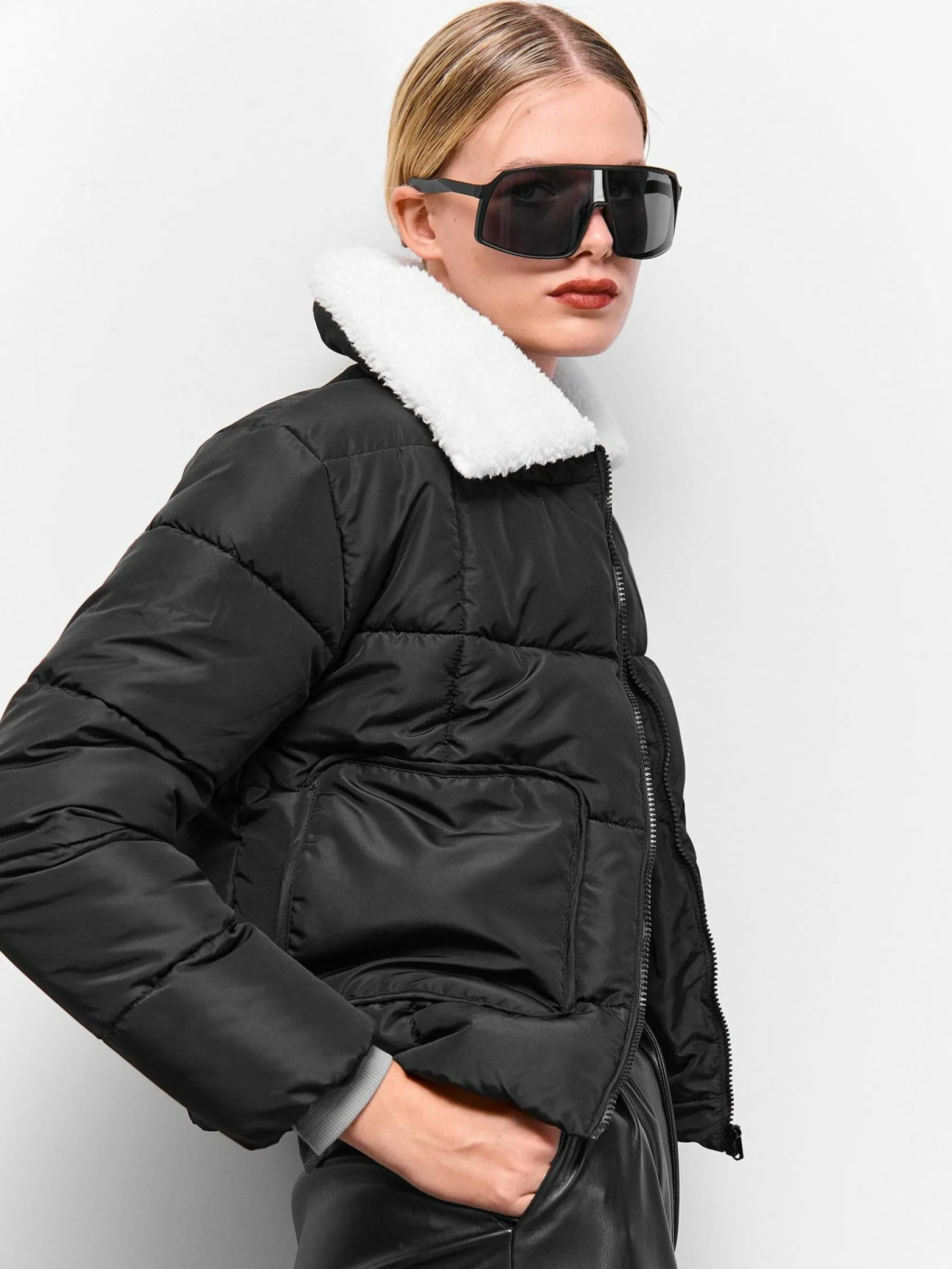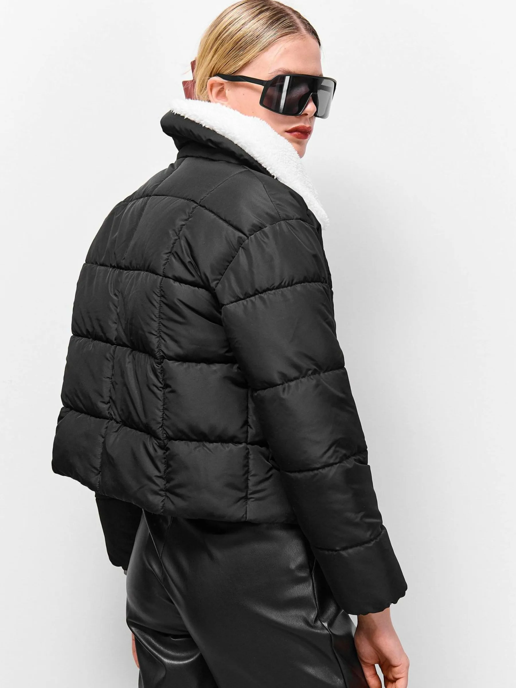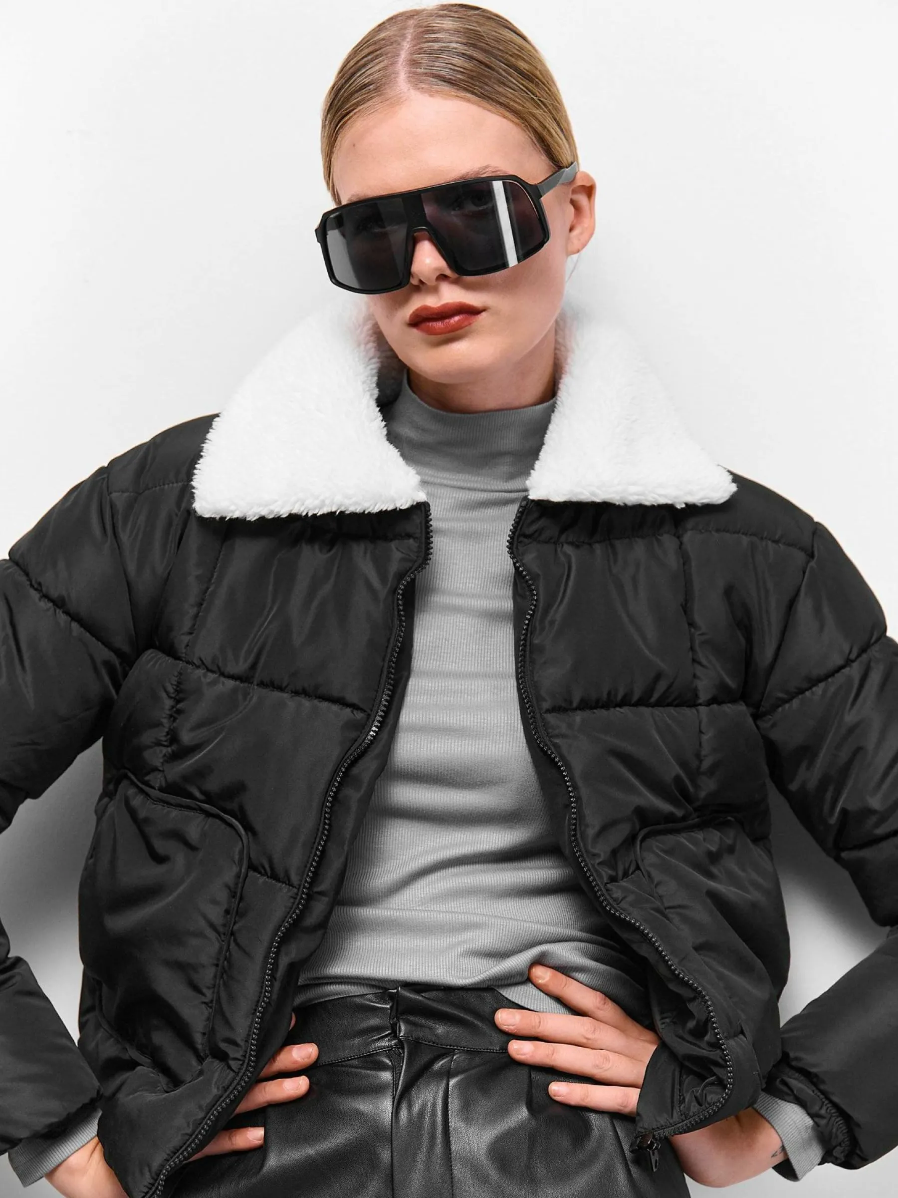 Kolor: czarnyKrój: pikowaneTyp: kurtka zimowaRekaw: długi rękawDługość: krótkiPattern style: pojedynczy kolorDeta…