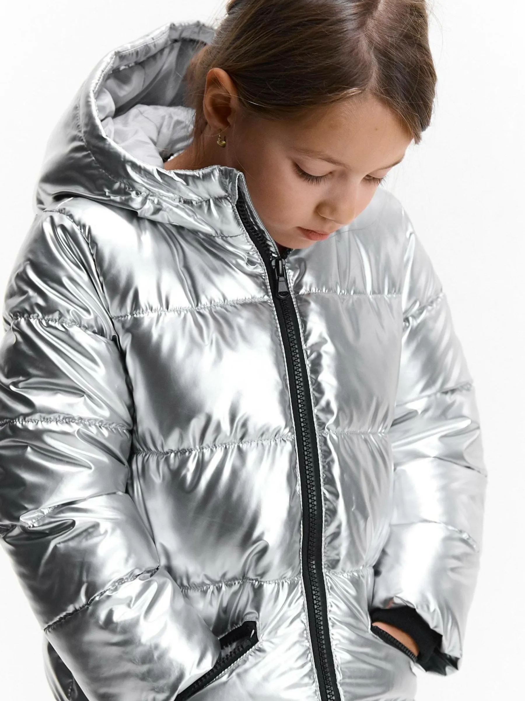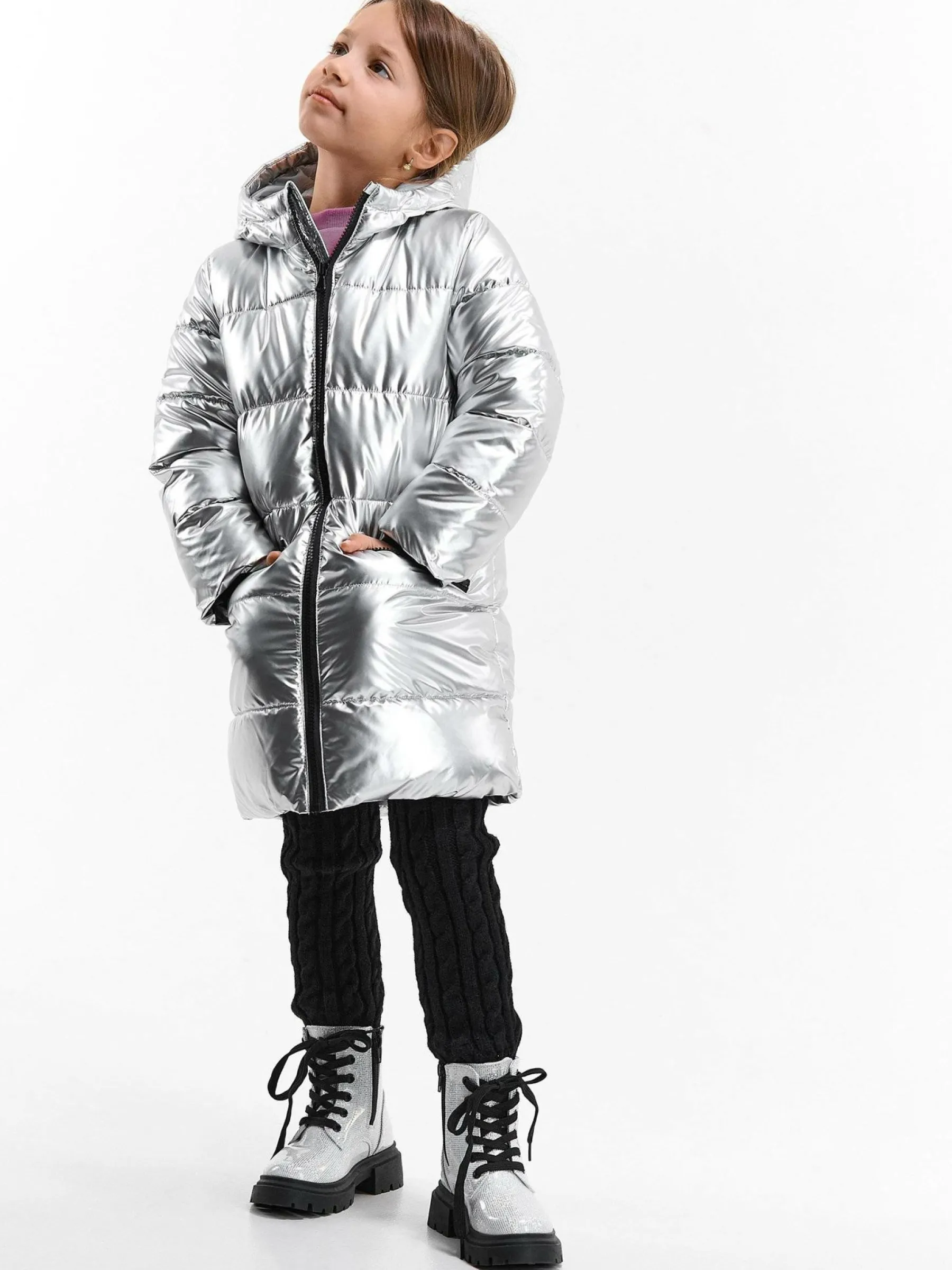 Kolor: metalicznyKrój: pikowaneTyp: kurtka zimowaRekaw: długi rękawDługość: dlugiePattern style: pojedynczy kolorD…