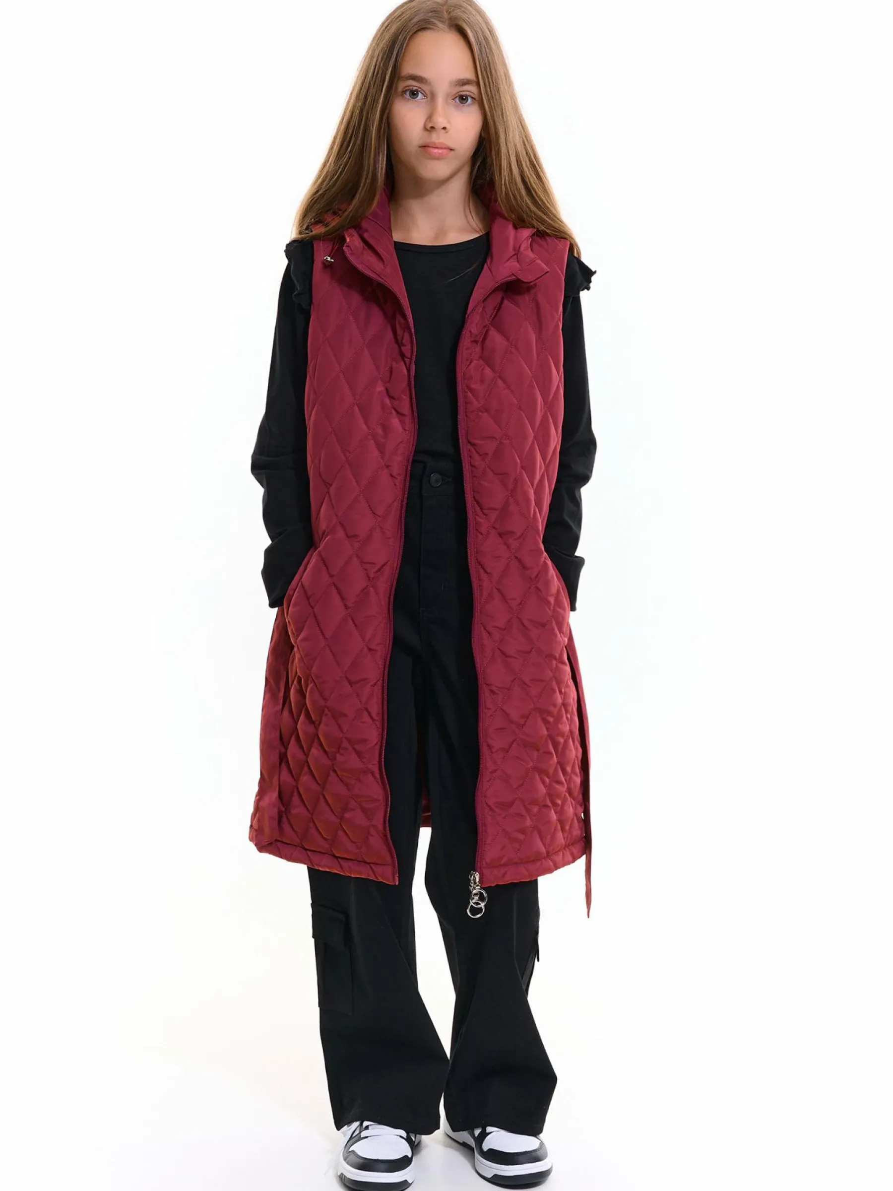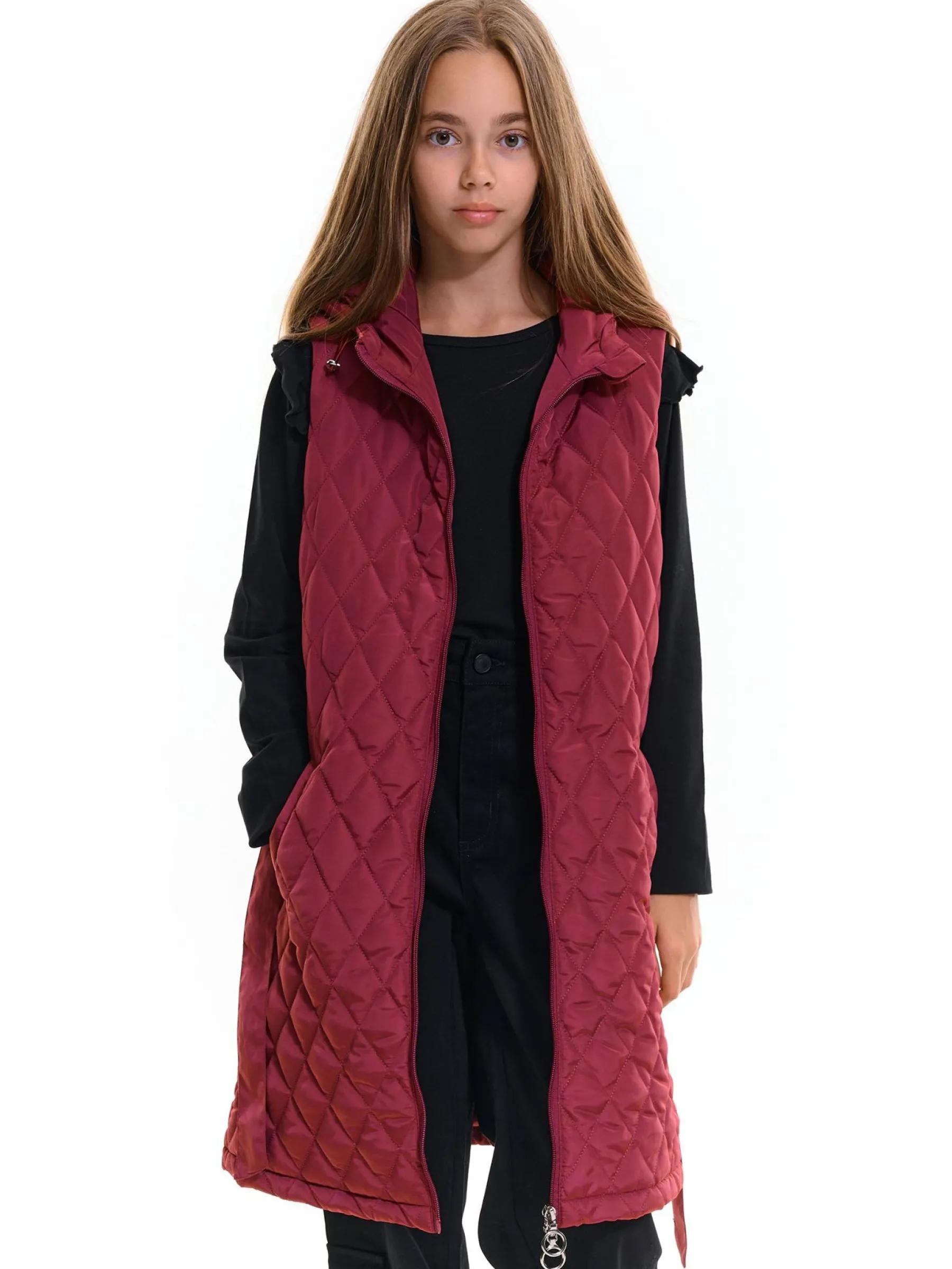 Kolor: czerwonyKrój: pikowaneTyp: kamizelkaRekaw: bez rękawówDługość: dlugiePattern style: pojedynczy kolorDetal: …