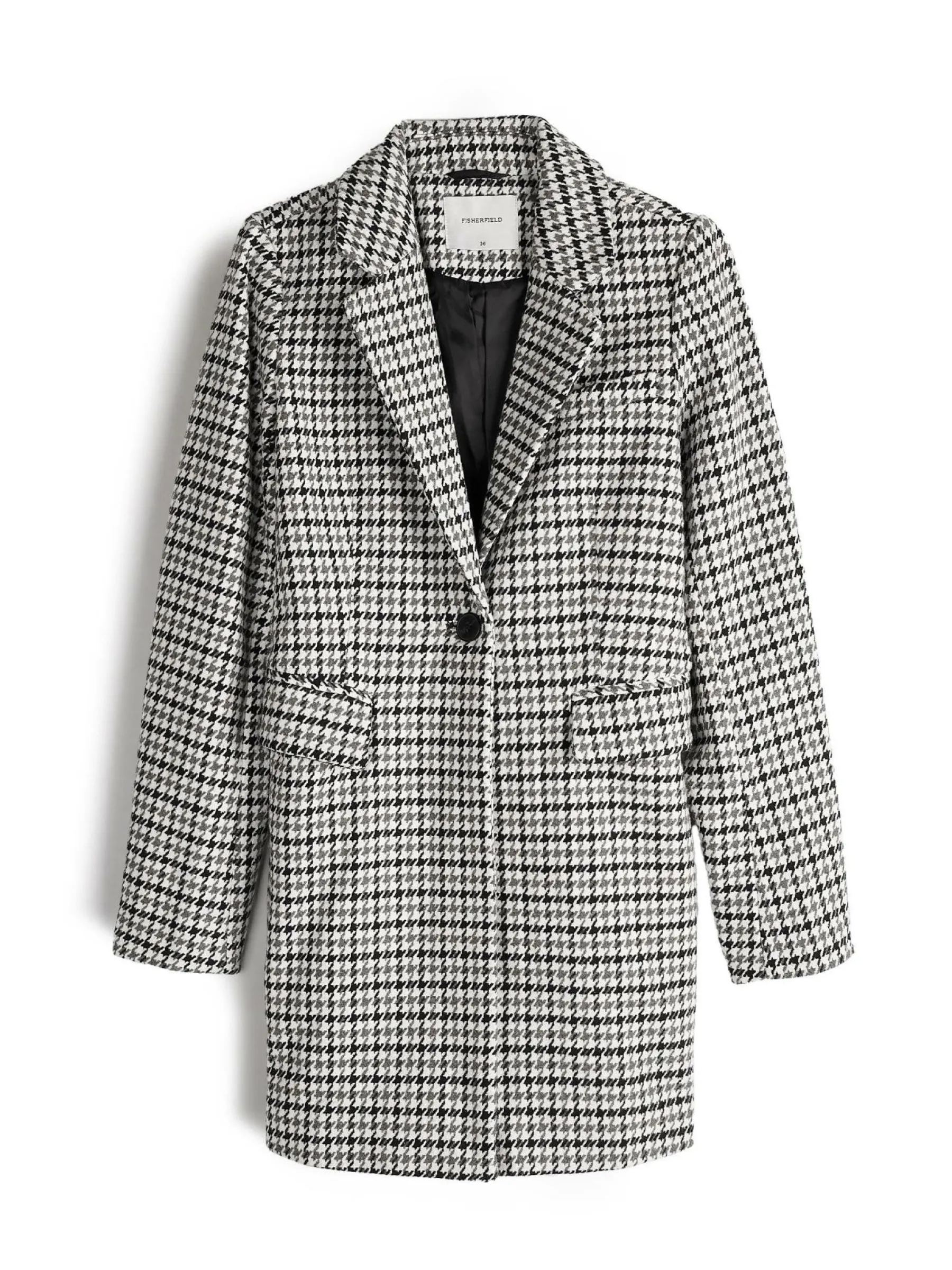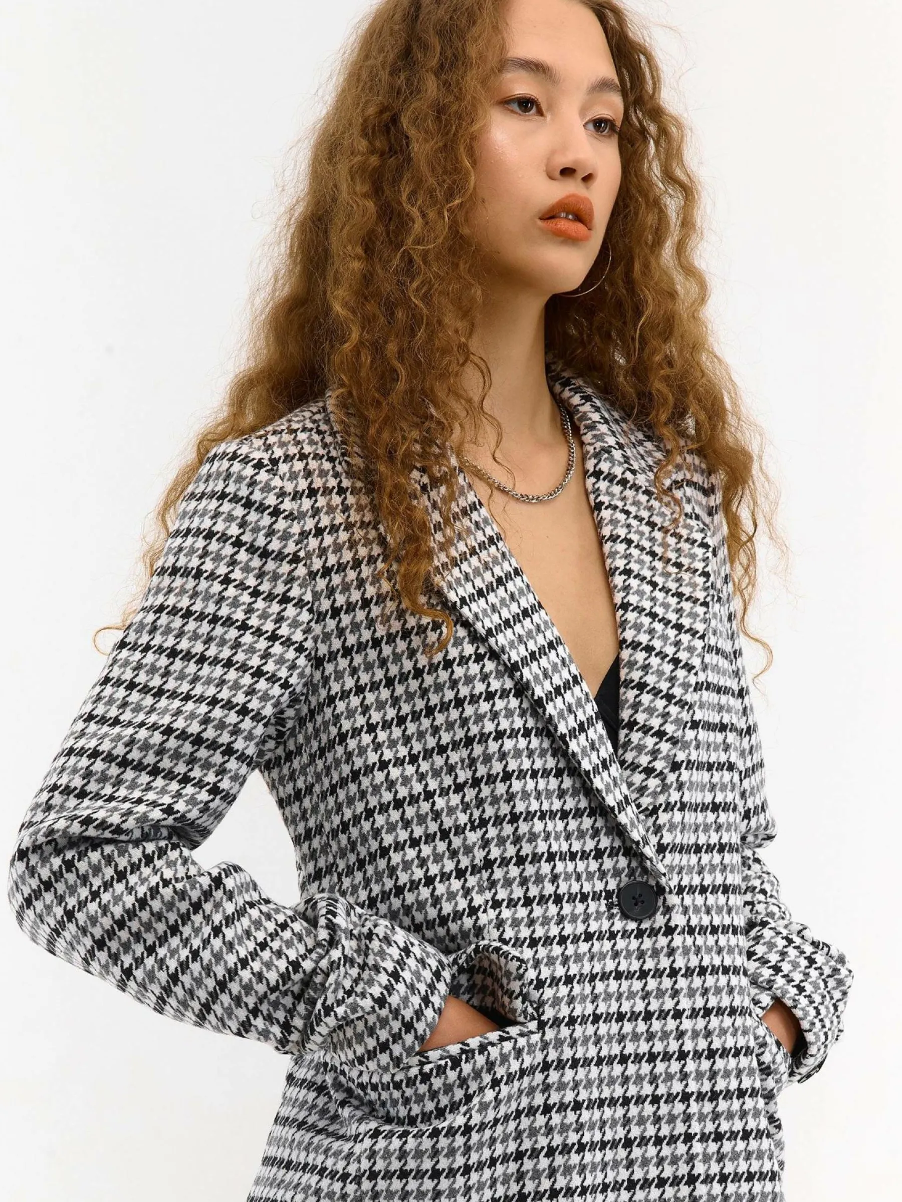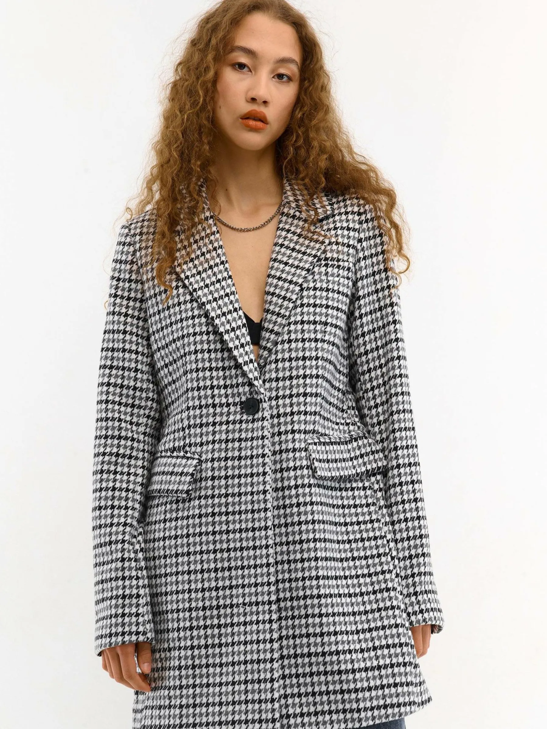 Kolor: czarnyKrój: podstawowyTyp: płaszczRekaw: długi rękawDługość: dlugiePattern style: houndstoothDetal: na guz…