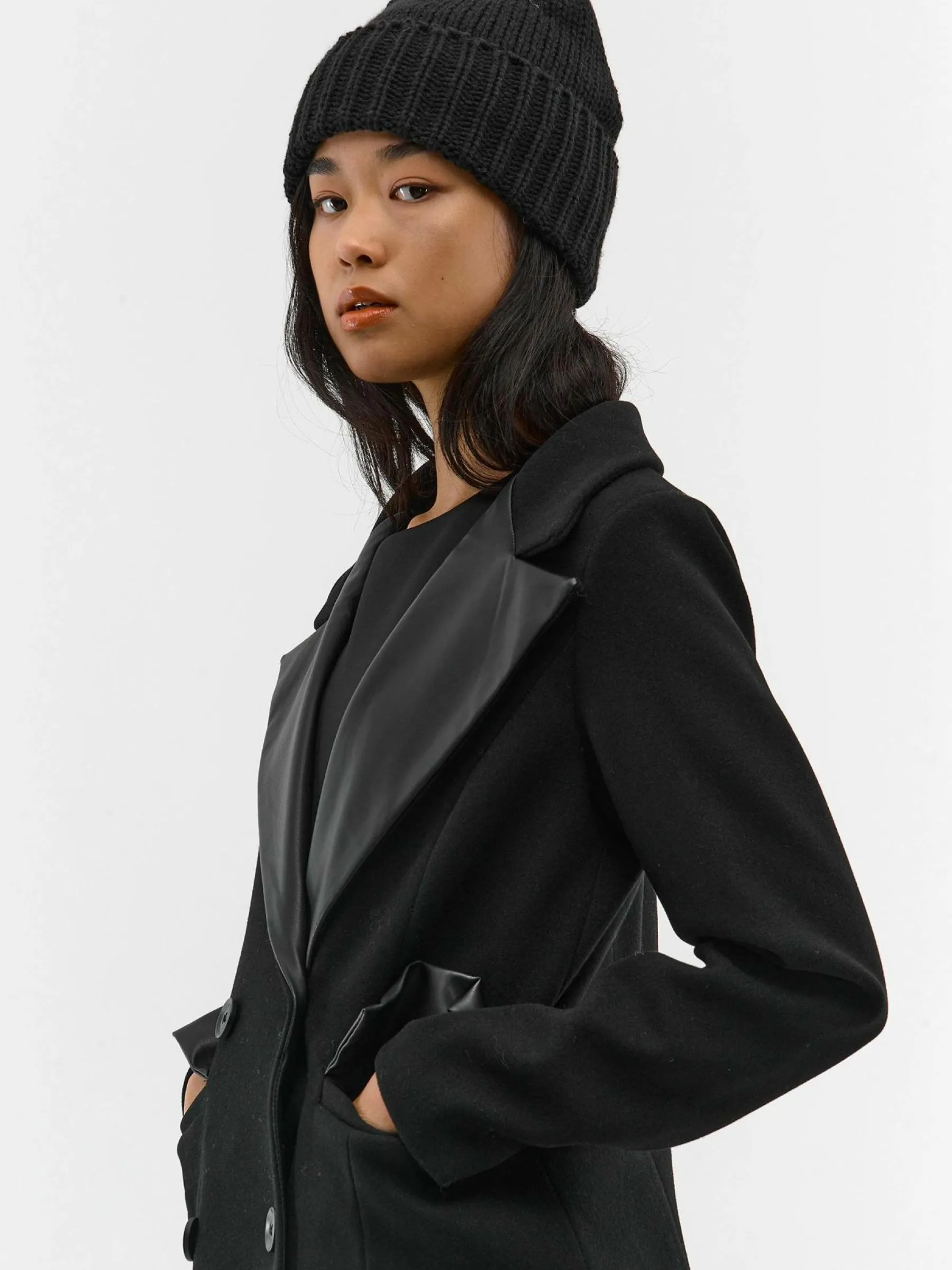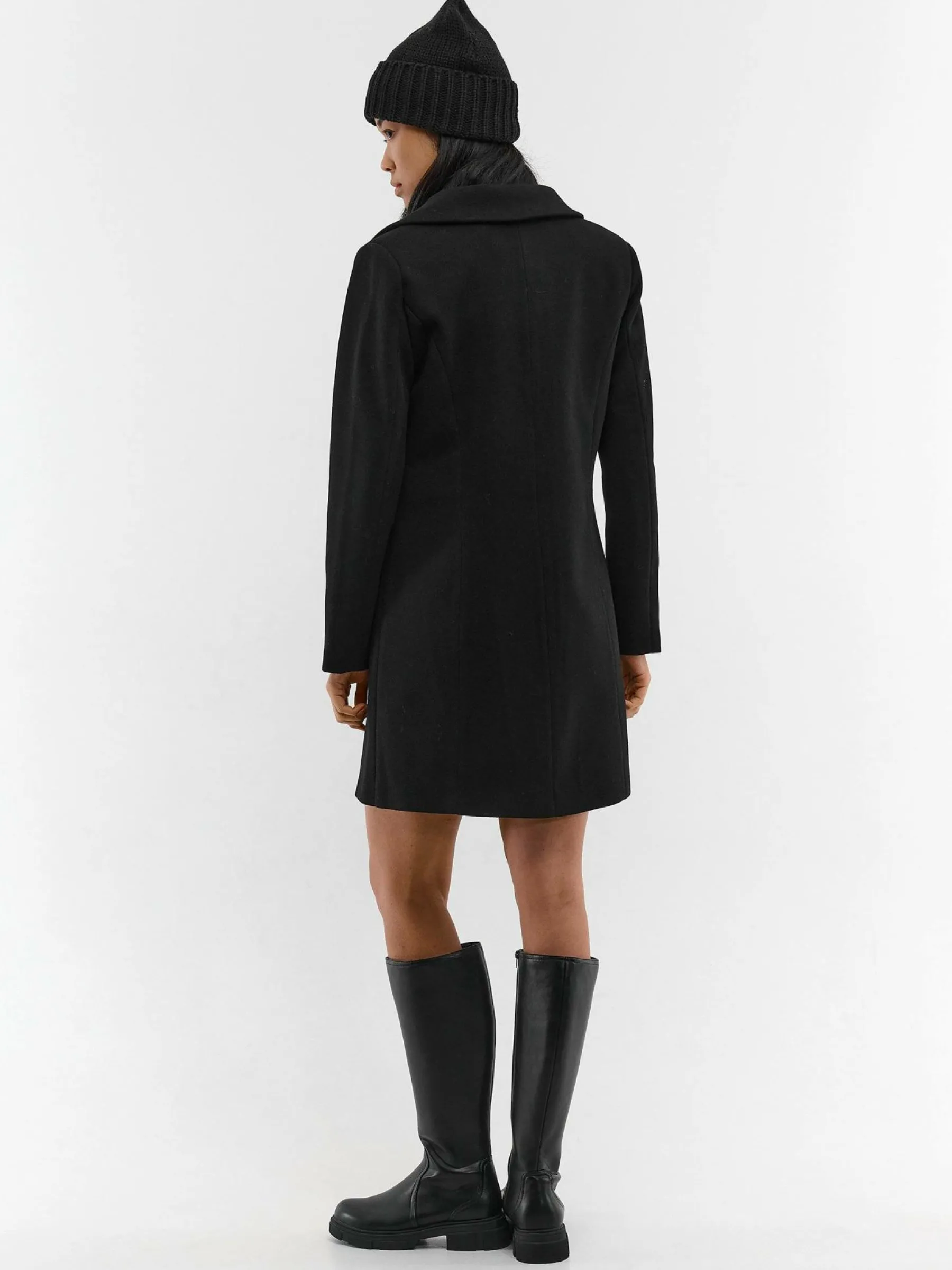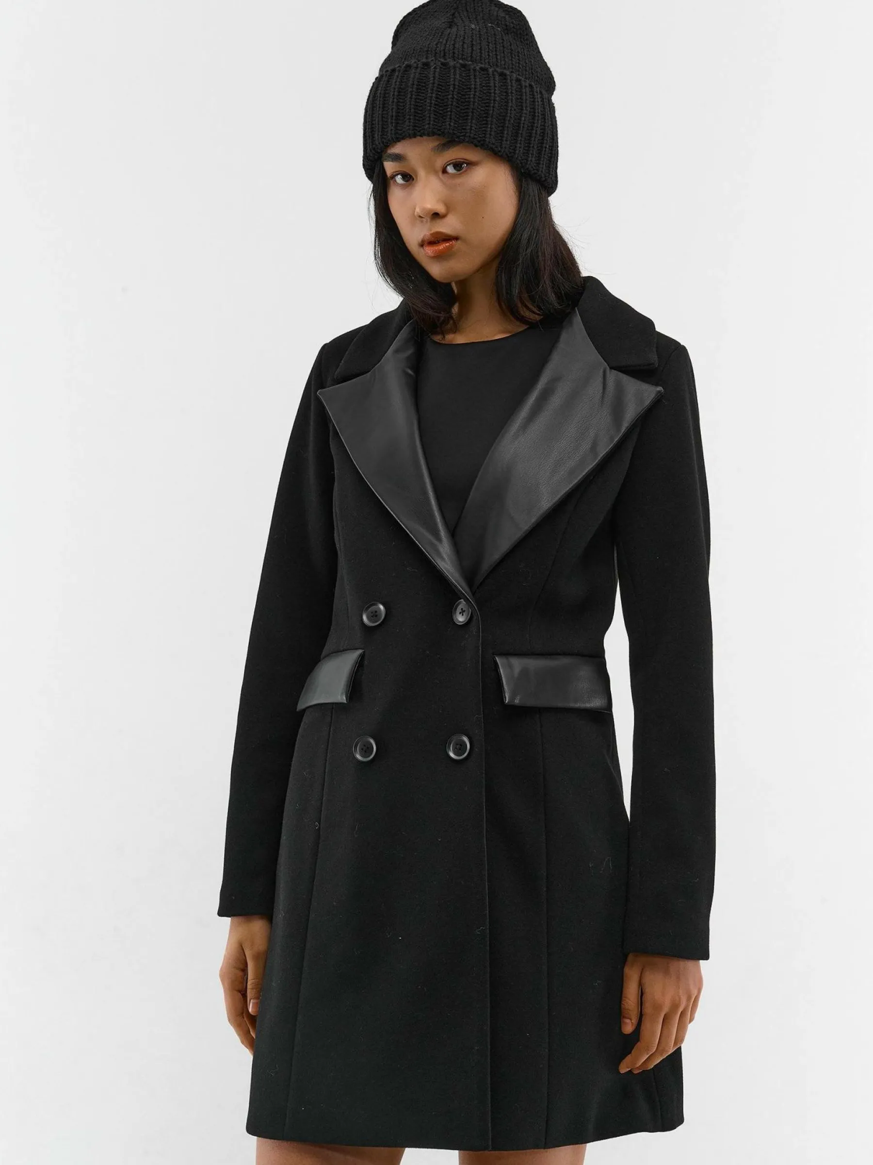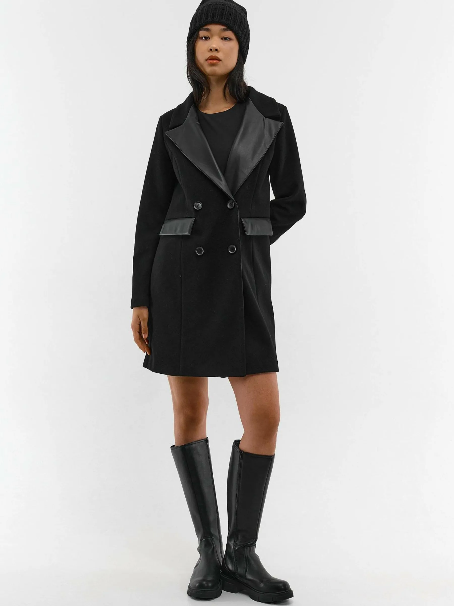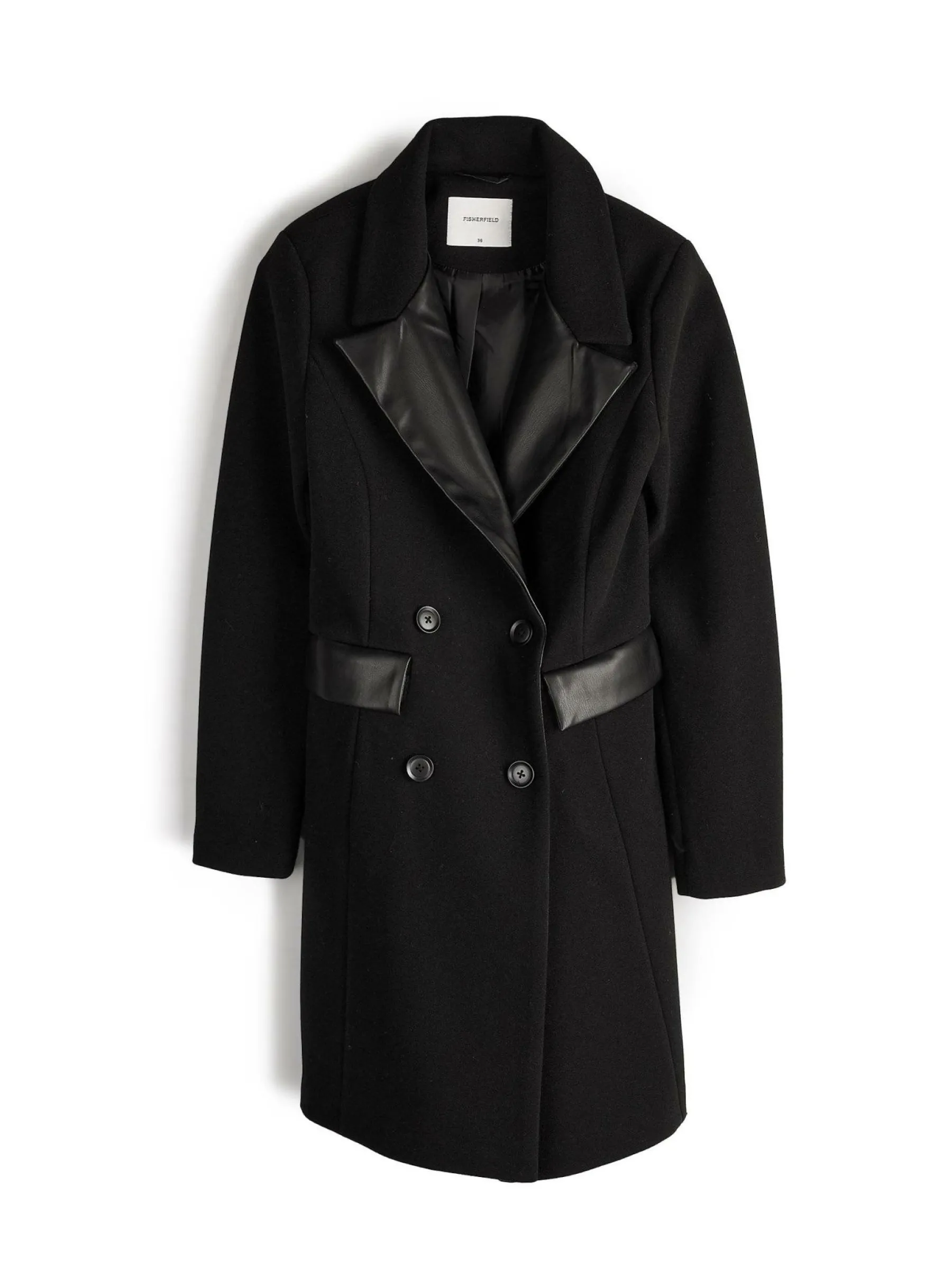 Kolor: czarnyKrój: regularTyp: płaszczRekaw: długi rękawDługość: dlugiePattern style: pojedynczy kolorDetal: na g…