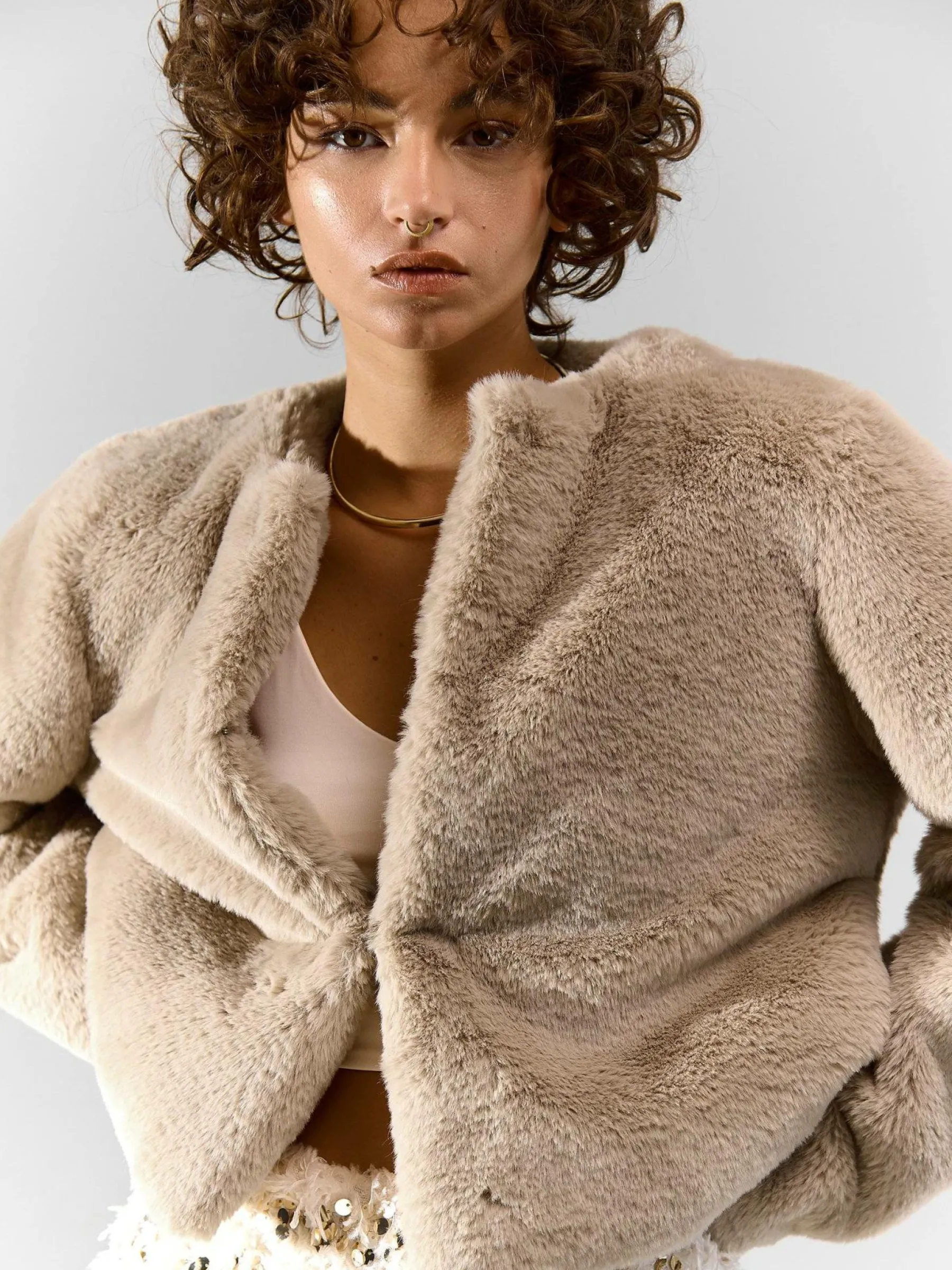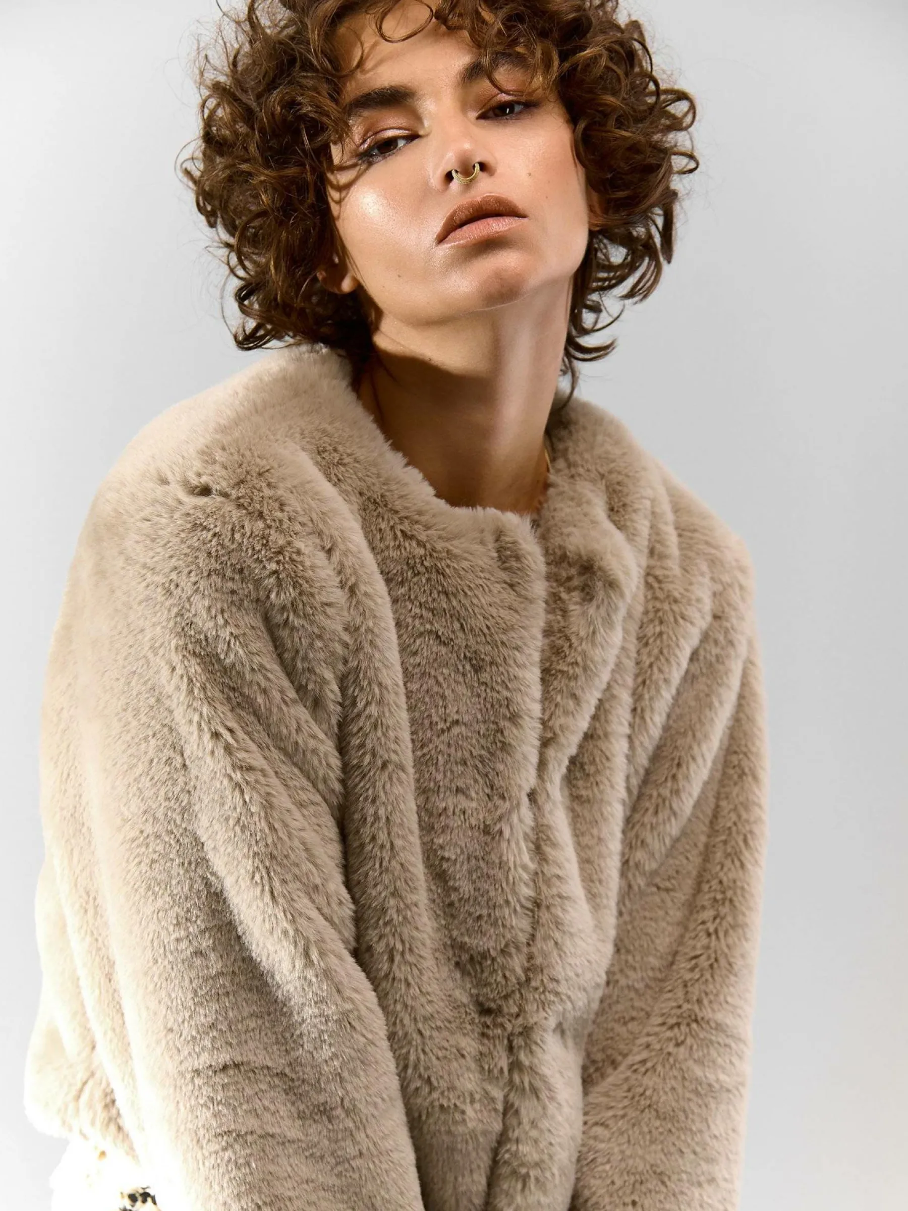 Kolor: beżowyKrój: regularTyp: płaszczRekaw: długi rękawDługość: krótkiPattern style: pojedynczy kolorDetal: na…