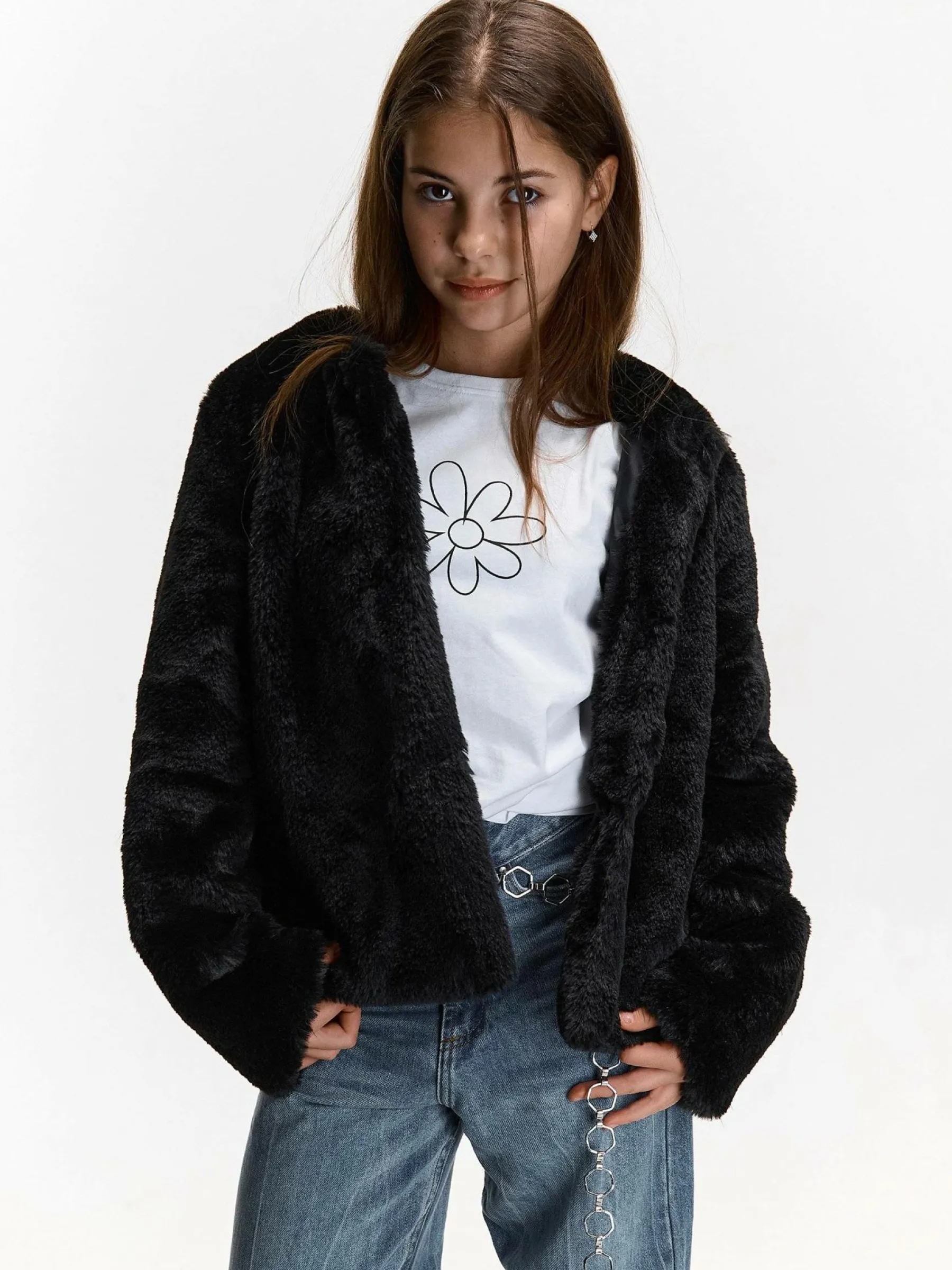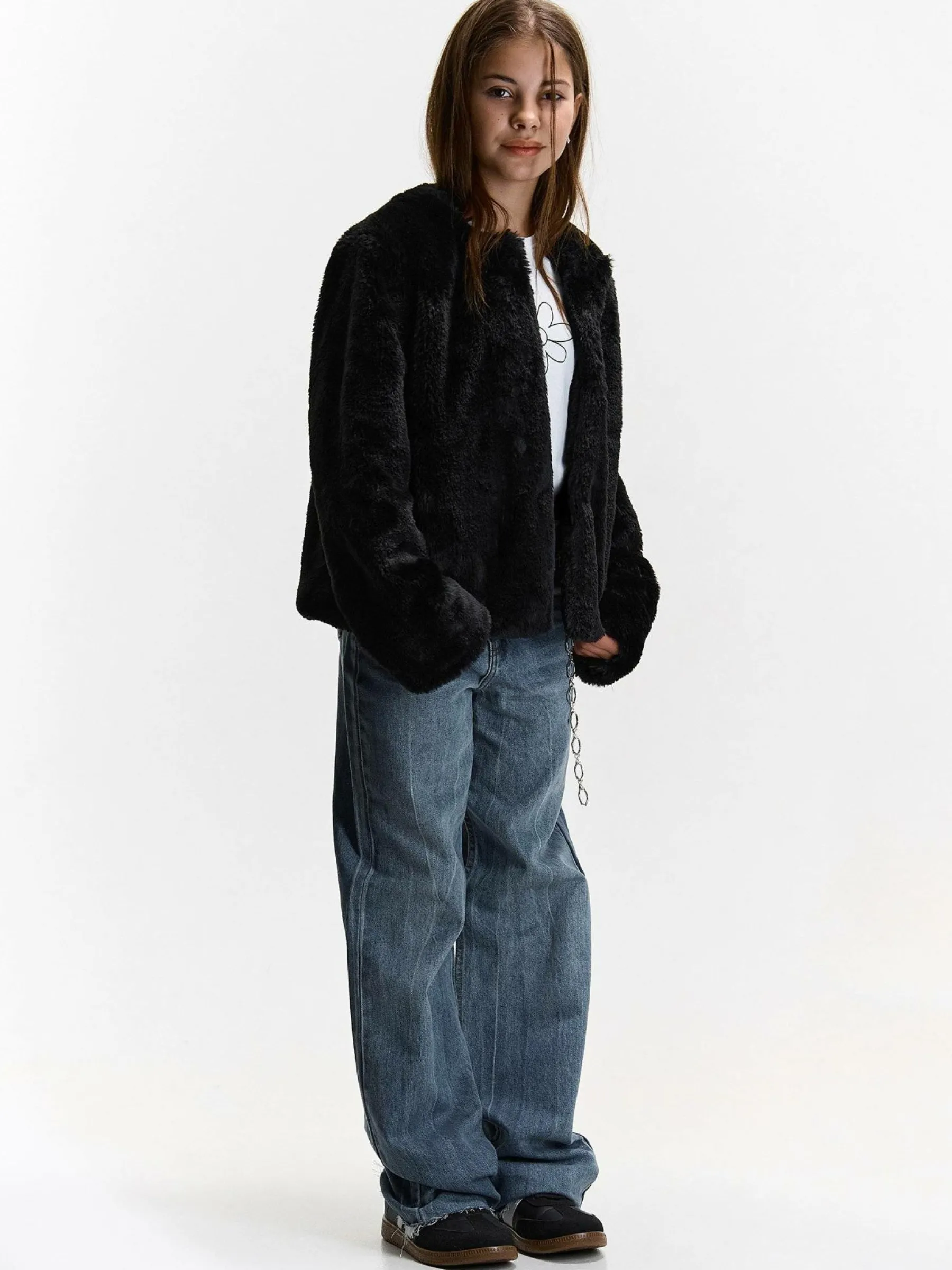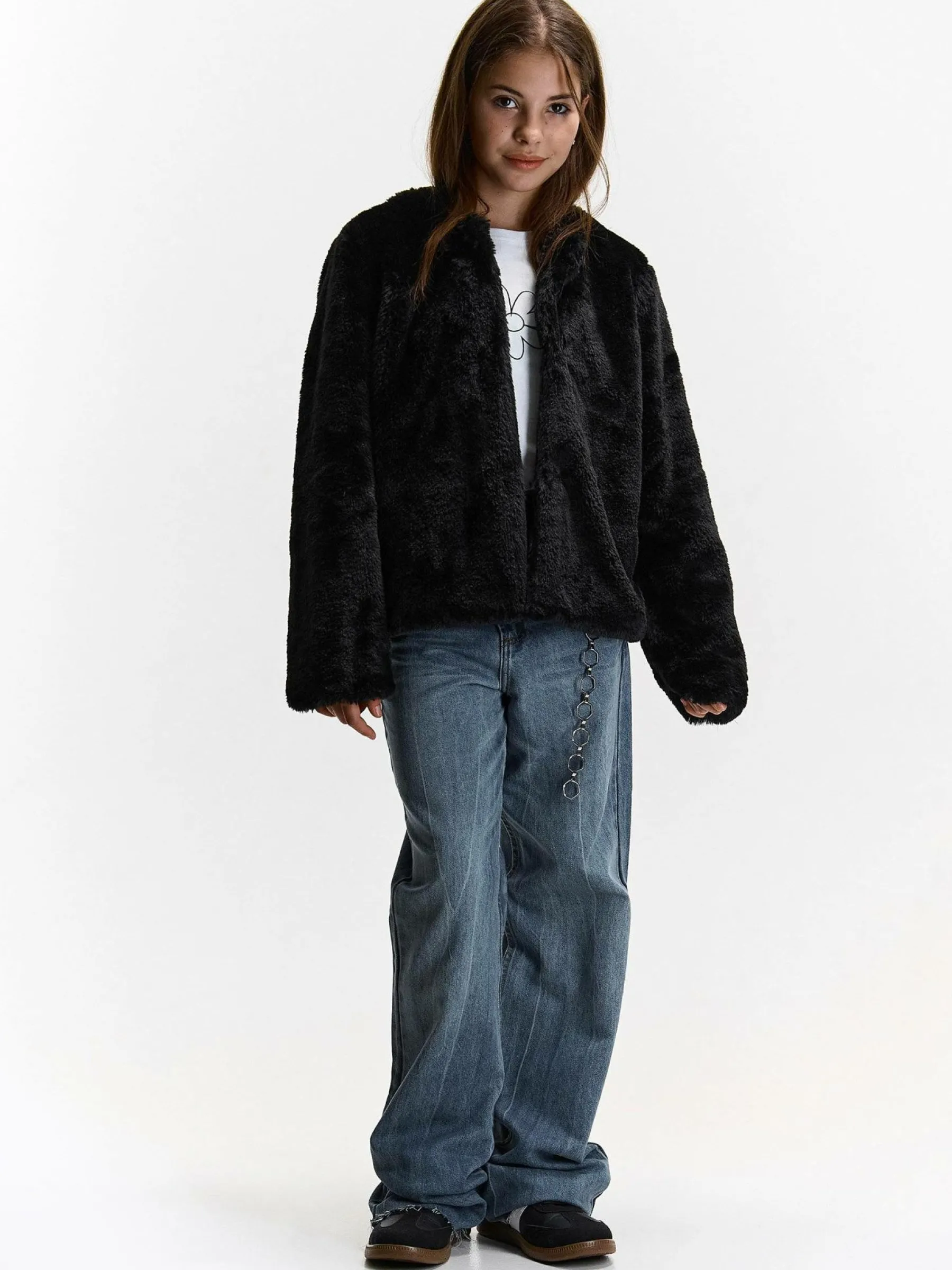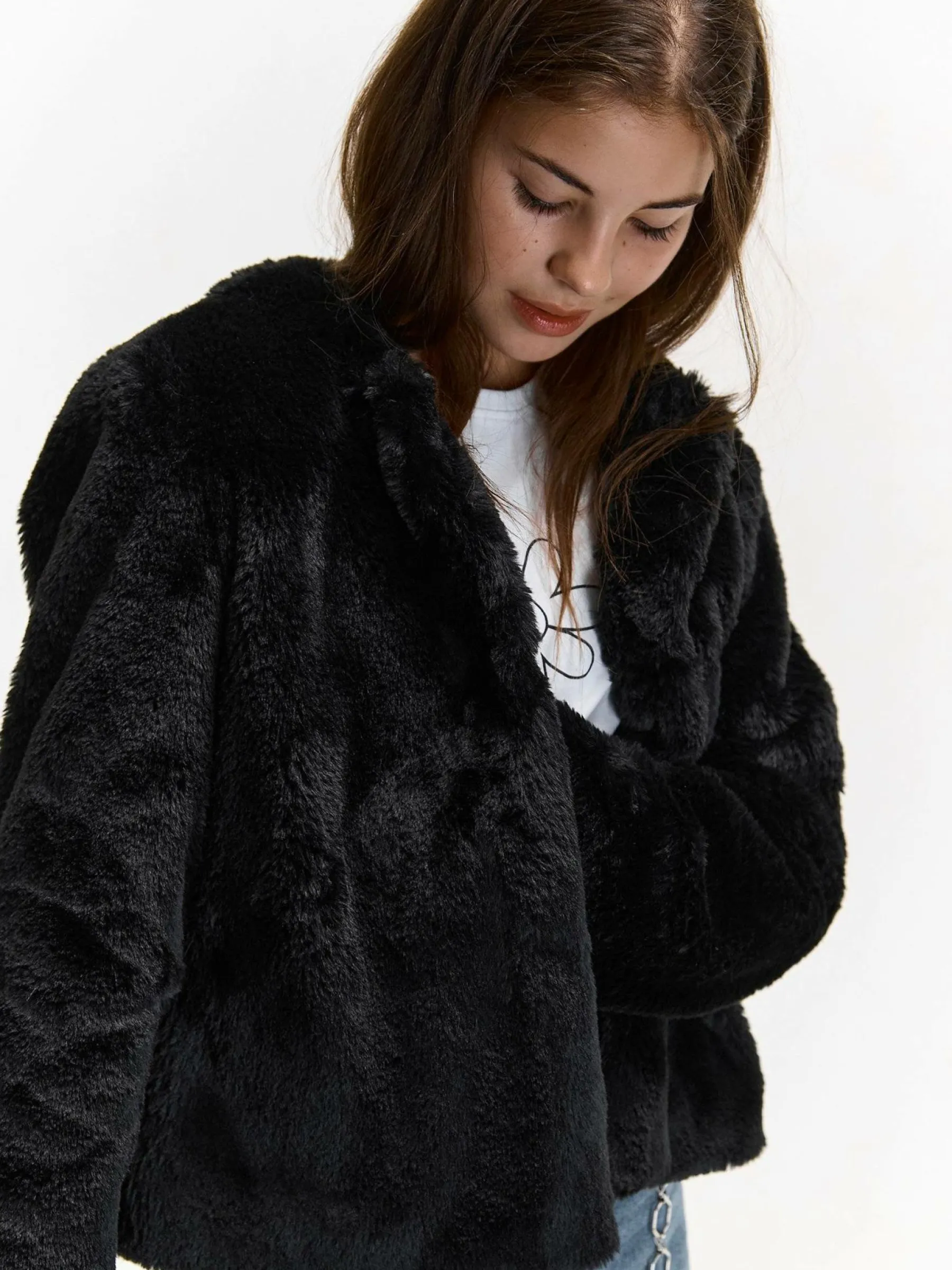 Kolor: czarnyKrój: regularTyp: płaszczRekaw: długi rękawDługość: krótkiPattern style: pojedynczy kolorDetal: na …