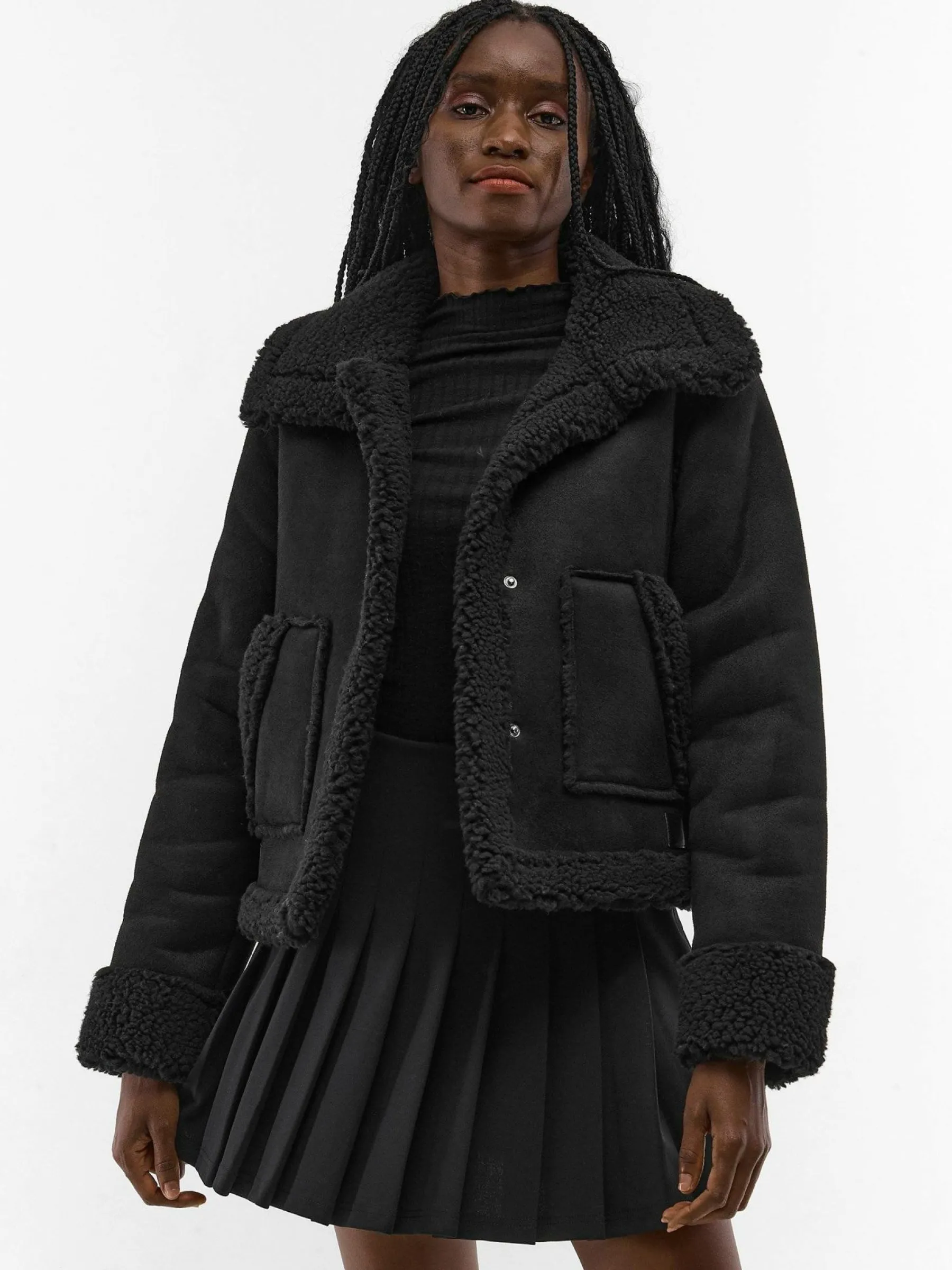 Kolor: czarnyKrój: motocykloweTyp: płaszczRekaw: długi rękawDługość: krótkiPattern style: pojedynczy kolorDetal:…